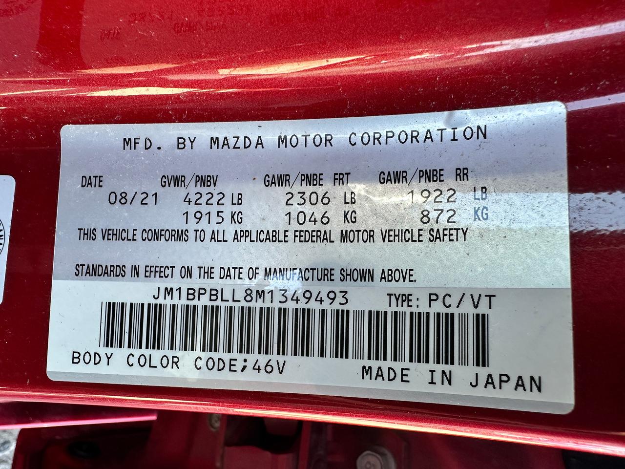 - VIN: JM1BPBLL8M1349493