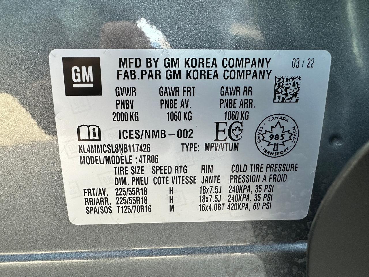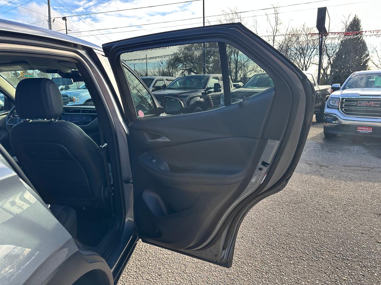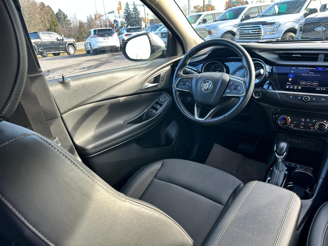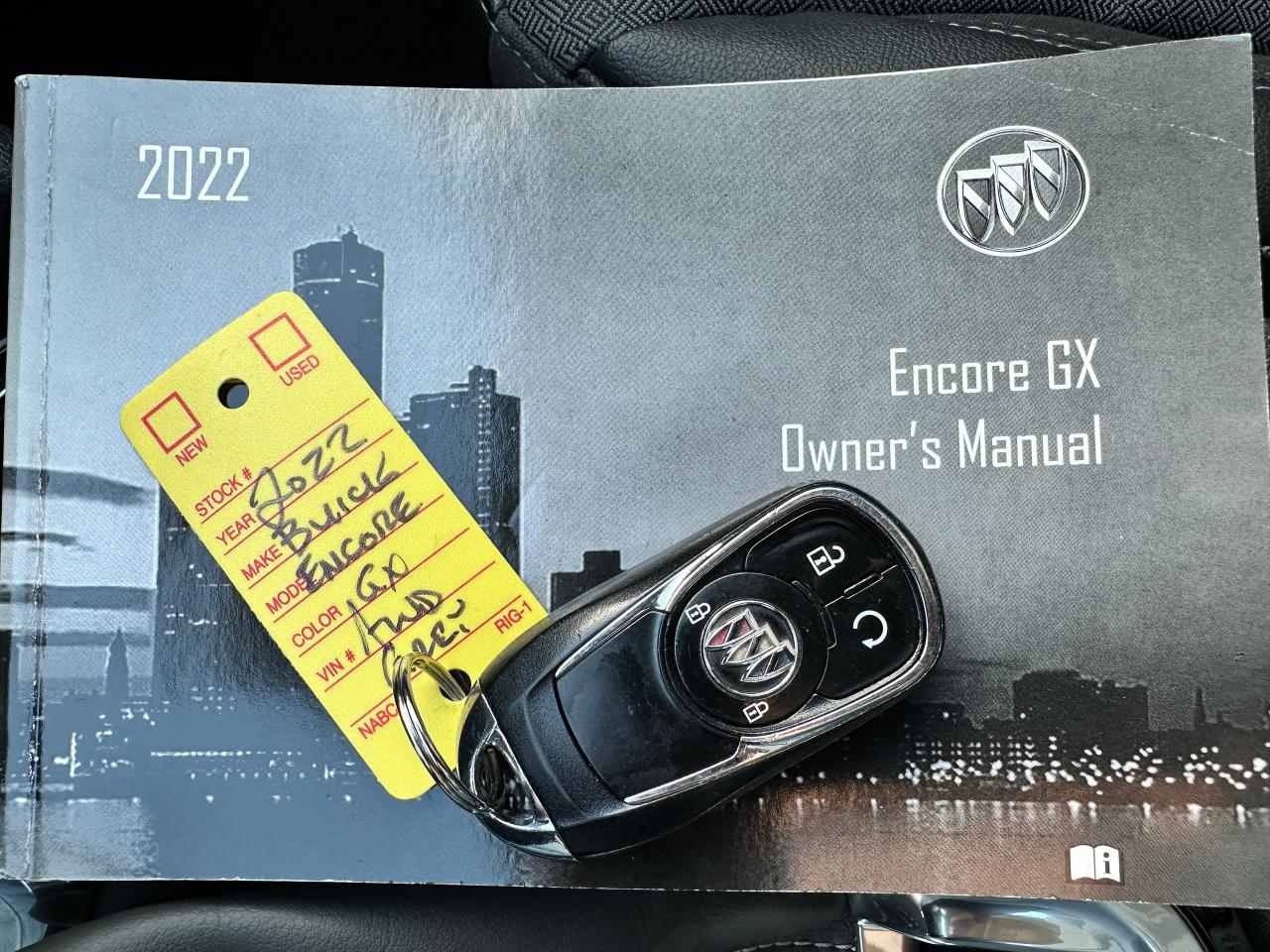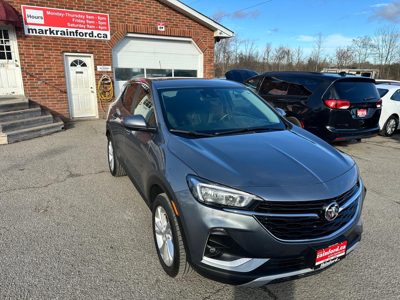 Super-Clean Buick Encore GX from Uxbridge, ON! This Preferred AWD model looks sharp in its Grey paint and factory alloy wheels, with nice options inside and out! The exterior features keyless entry with remote start and proximity key, automatic headlights, foglights, automatic highbeams, colour-matched side mirrors, lane departure assist, forward collision warning, tinted privacy glass, a sleek rear spoiler, a peppy fuel-efficient 1.3L 3-Cylinder Engine and an Automatic transmission powering the All-Wheel-Drive system! The interior is clean and comfortable with heated cloth front seats with driver's power adjustment and lumbar control, power door locks, windows and mirrors, a leather wrapped steering wheel with Audio and Cruise controls, an easy to read and use gauge cluster, push button start, a large central touch screen AM/FM/XM Satellite Radio with Bluetooth, Apple CarPlay, Android Auto and OnStar turn-by-turn capability, WiFi Settings and Backup Camera, A/C climate control with front and rear window defrost settings, USB/AUX/12V accessory ports, Auto-Stop/Start override button and more!