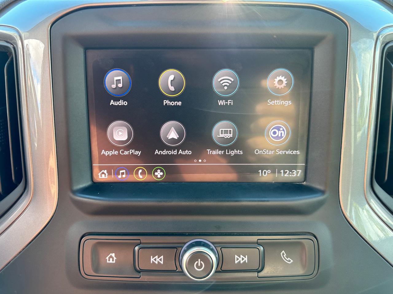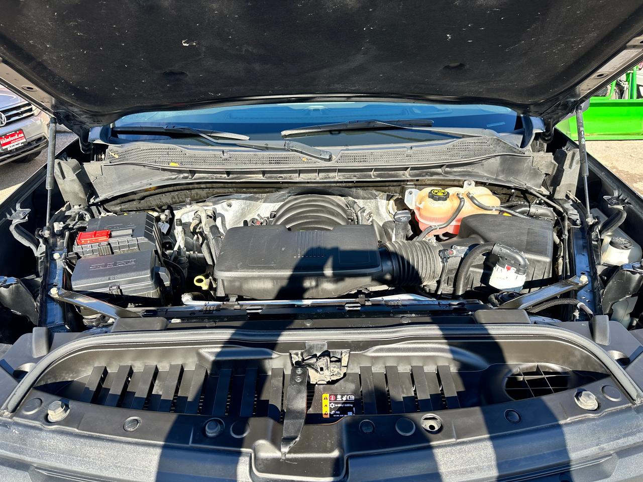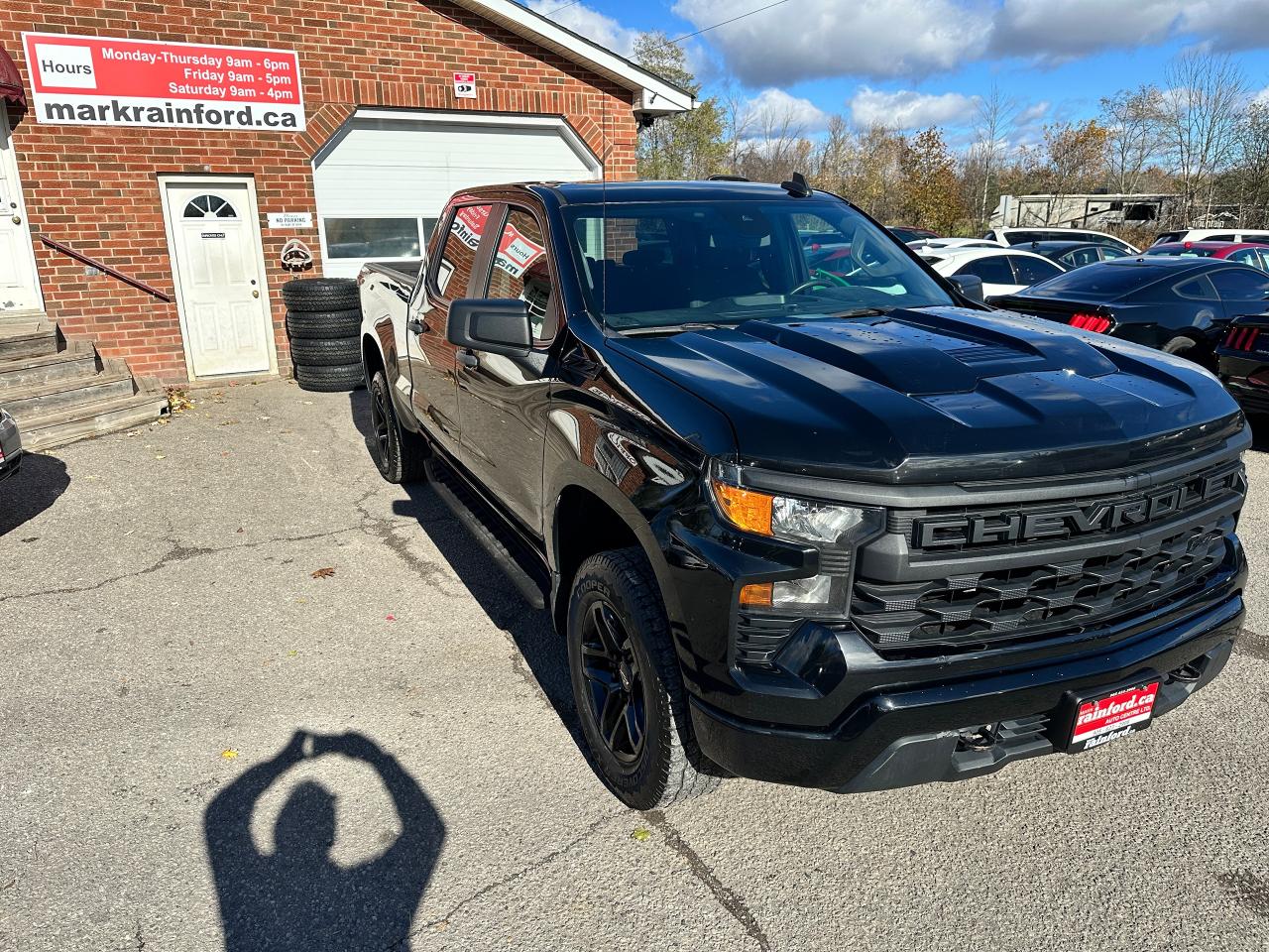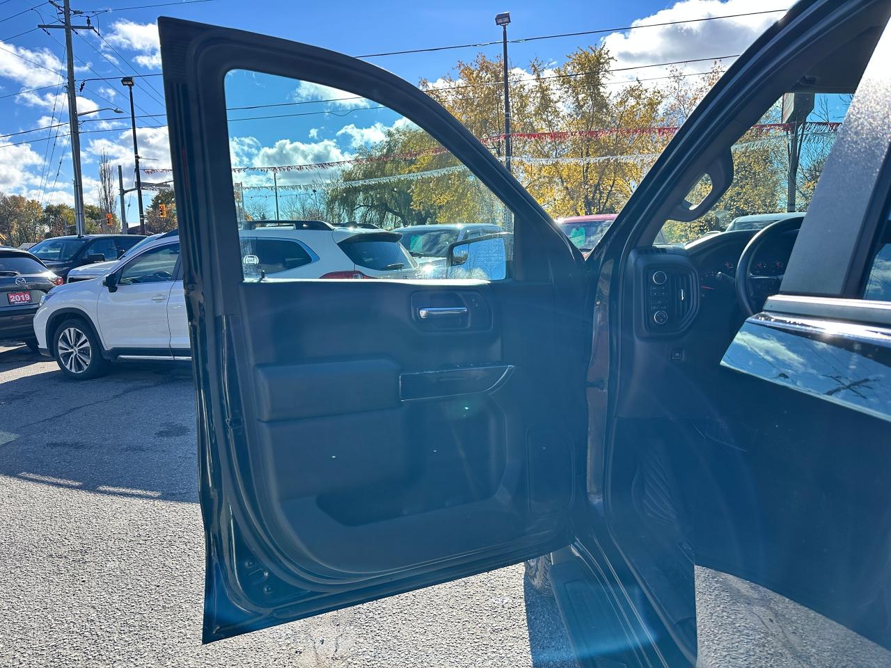 Super-Clean, sharp-looking Chevrolet Silverado from Kingston, ON! This Trail-Boss Custom 4x4 Crew Cab looks clean and mean in its classic Black-on-Black colour scheme, with convenient options inside and out! The exterior features keyless entry with a remote start and remote power tailgate release, automatic headlights, automatic highbeams, front tow hooks, a trailer hitch, tinted privacy glass, rear bumper steps, spray in bedliner, a sporty dual-rear exhaust, black step sides, Trail Boss and Z71 Badges/Decals, forward collision warning, lane departure warning, gorgeous Black factory Alloy wheels with NEW All-Season Tires freshly installed, a powerful 5.3L V8 Engine and Automatic transmission powering the 4x4 system! The interior is clean and comfortable with cloth seating for all 6 occupants through its fold-up centre console, power driver adjustments with lumbar control, power door locks, mirrors and windows, all-weather floor mats, electronic 4x4 selection, trailer assist knob, steering wheel-mounted Cruise controls, an easy-to-read and use gauge cluster, push button start, a large central touch screen AM/FM/XM Satellite Radio with Bluetooth, Apple CarPlay, Android Auto, OnStar Turn by Turn Capability, and Backup Camera, A/C Climate controls with front and rear window defrost settings, Auto-Stop/Start override, tailgate release button, Hill descent assist, USB/USB-C/12V accessory ports, and more!