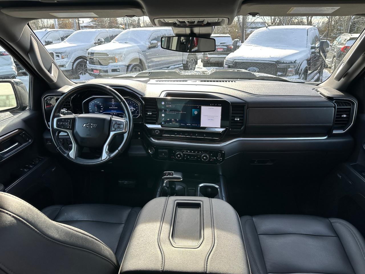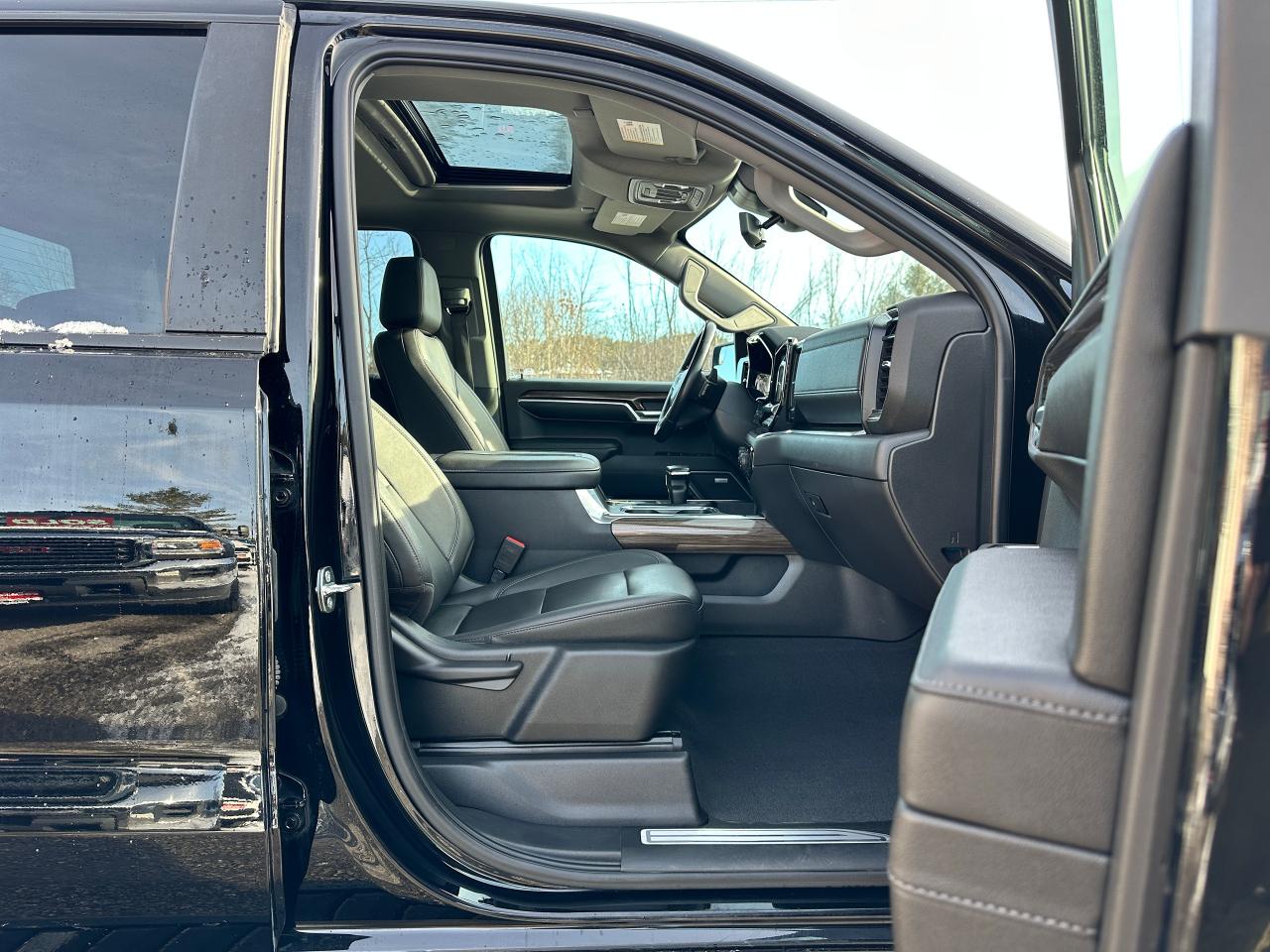 Super-Clean, Sharp-looking Chevrolet Silverado 1500 from Kingston, ON! This LT Trail Boss Crew Cab 4x4 model looks incredible in its Black/Black colour scheme, with nice upgrades and options inside and out! The exterior features keyless entry with remote start and proximity keys, remote trunk release, a large factory power sunroof, automatic headlights, foglights and automatic highbeams, front tow hooks, a trailer hitch, spray-in Chevrolet bedliner, tinted privacy glass, a sliding rear window, rear bumper steps, lane departure warning, forward collision warning, black side mirrors and running boards, gorgoeus Black factory alloy wheels, a powerful 6.2L V8 Engine, and Automatic transmission driving the 4x4 system! The interior is clean and comfortable with heated leather front seats with driver's power adjustment and lumbar control, power door locks, windows and mirrors, a spacious rear seating area with a folding bench, electronic 4x4 selection buttons, a drive mode selection knob with trailer mode, an integrated electronic trailer brake controller, a heated leather wrapped steering wheel with Audio and Cruise controls, paddle shifters, customizable gauge cluster, push button start, a HUGE central touch screen AM/FM/XM Satellite Radio with BOSE Premium Audio, Bluetooth, Apple CarPlay, Android Auto, WiFi settings, Google Apps and Backup Camera, hill descent assist, Auto-Stop/Start override button, Dual-Zone A/C climate controls with front and rear window defrost settings, universal garage door openers, wireless charging pad, USB/USB-C/12V accessory ports and more!