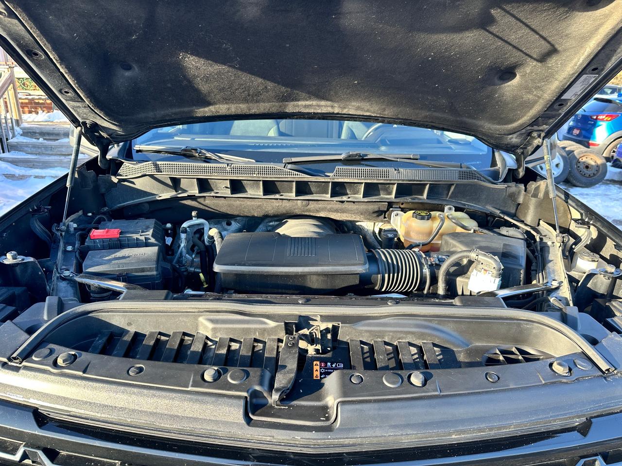 Clean and Mean, Sharp-looking Chevrolet Silverado 1500 from Kingston, ON! This RST Z71 4x4 Crew Cab looks incredible in its Black/Black colour scheme, with great styling and nice options inside and out! The exterior features keyless entry with remote start and proximity keys, remote trunk release, automatic headlights, foglights, front tow hooks, a trailer hitch, spray-in Chevrolet bedliner, tinted privacy glass, a sliding rear window, rear bumper steps, lane departure warning, forward collision warning, colour matched side mirrors and running boards, gorgoeus Black factory alloy wheels, a powerful 5.3L V8 Engine, and Automatic transmission driving the 4x4 system! The interior is clean and comfortable with Heated Cloth front seats with driver's power adjustment and lumbar control, power door locks, windows and mirrors, a spacious rear seating area with a foldup bench, All-Weather Floor Mats, electronic 4x4 selection buttons, a drive mode selection knob with trailer mode, integrated electronic trailer brake controller, a heated leather wrapped steering wheel with Audio and Cruise controls, paddle shifters, custom gauge cluster, push button start, a GIANT central touch screen AM/FM/XM Satellite Radio with BOSE Premium Audio, Navigation, Bluetooth, Apple CarPlay, Android Auto, WiFi settings, Google Apps and Backup Camera, Auto-Stop/Start override button, hill descent assist, Dual-Zone A/C climate controls with front and rear window defrost settings, universal garage door openers, wireless device charging pad, USB/USB-C/12V accessory ports and more!