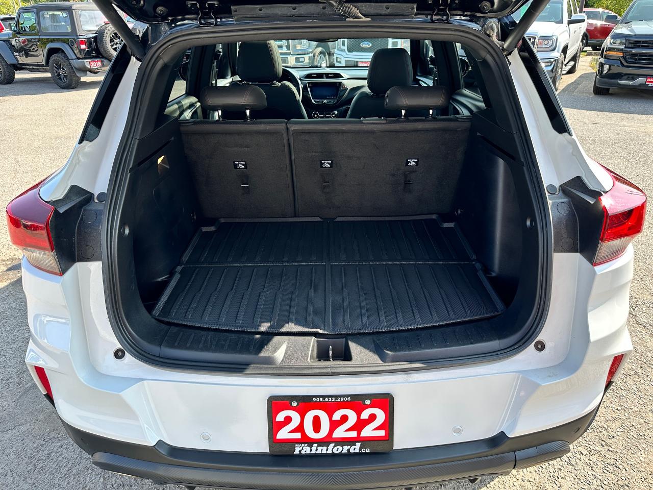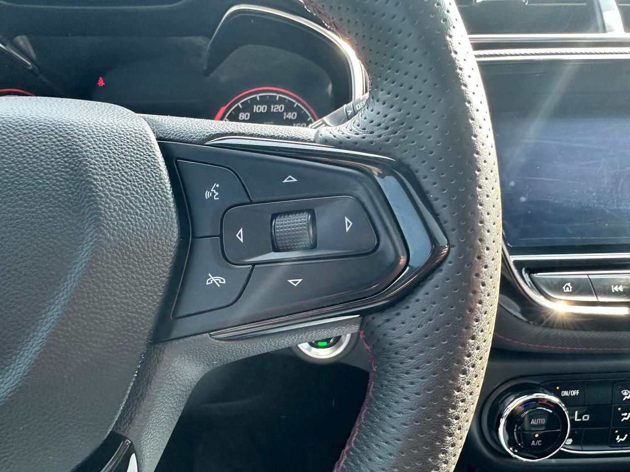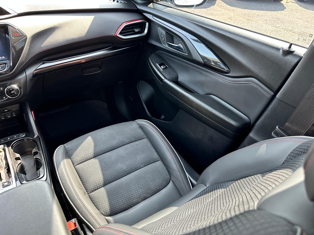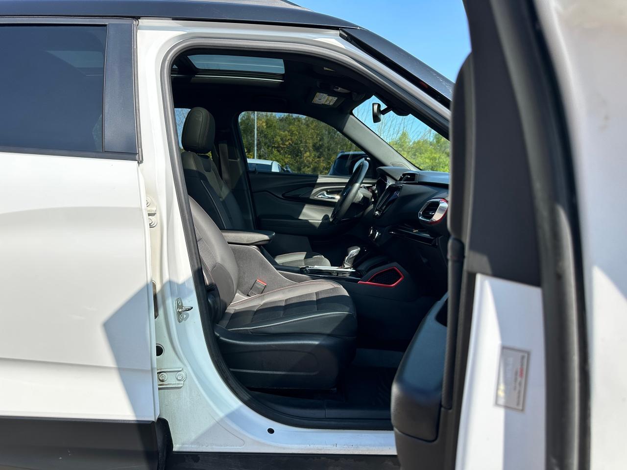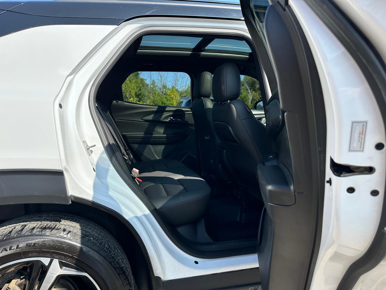 WOW! Super-Clean and exceptionally well optioned Chevrolet TrailBlazer from Brockville, ON! This RS AWD model looks awesome in its White paint and factory machine-finished alloy wheels with fantastic options inside and out! The exterior features keyless entry with remote start and proximity keys, a large Panoramic Sunroof, automatic headlights, foglights, automatic high beams, tinted privacy glass, blind spot monitors, forward collision warning, parking sensors, lane departure warning, roof rack rails, RS badging, and gorgeous factory split spoke alloy wheels, power rear liftgate, a peppy fuel efficient 1.3L 3-Cylinder Turbocharged Engine and Automatic transmission powering the All-Wheel-Drive system! The interior is clean and comfortable with heated cloth front seats with driver's power adjustment and lumbar controls, stylish interior accenting, power door locks, windows and mirrors, customizable rear gate opening height, a heated leather wrapped steering wheel with red accent stitching, Audio and Cruise controls, push button start, an easy to read and use gauge cluster, a large central touch screen AM/FM/XM Satellite HD Radio with BOSE Premium Audio, Bluetooth, Apple CarPlay, Android Auto, WiFi Settings, Backup Camera and OnStar Turn-By-Turn, A/C Climate control with front and rear window defrost settings, Auto-Stop/Start Override, Sport/AWD selection modes, Multiple USB/AUX/12V accessory ports, wireless device charger and more!