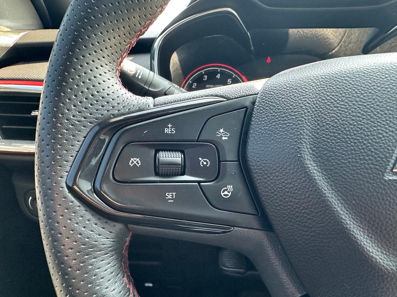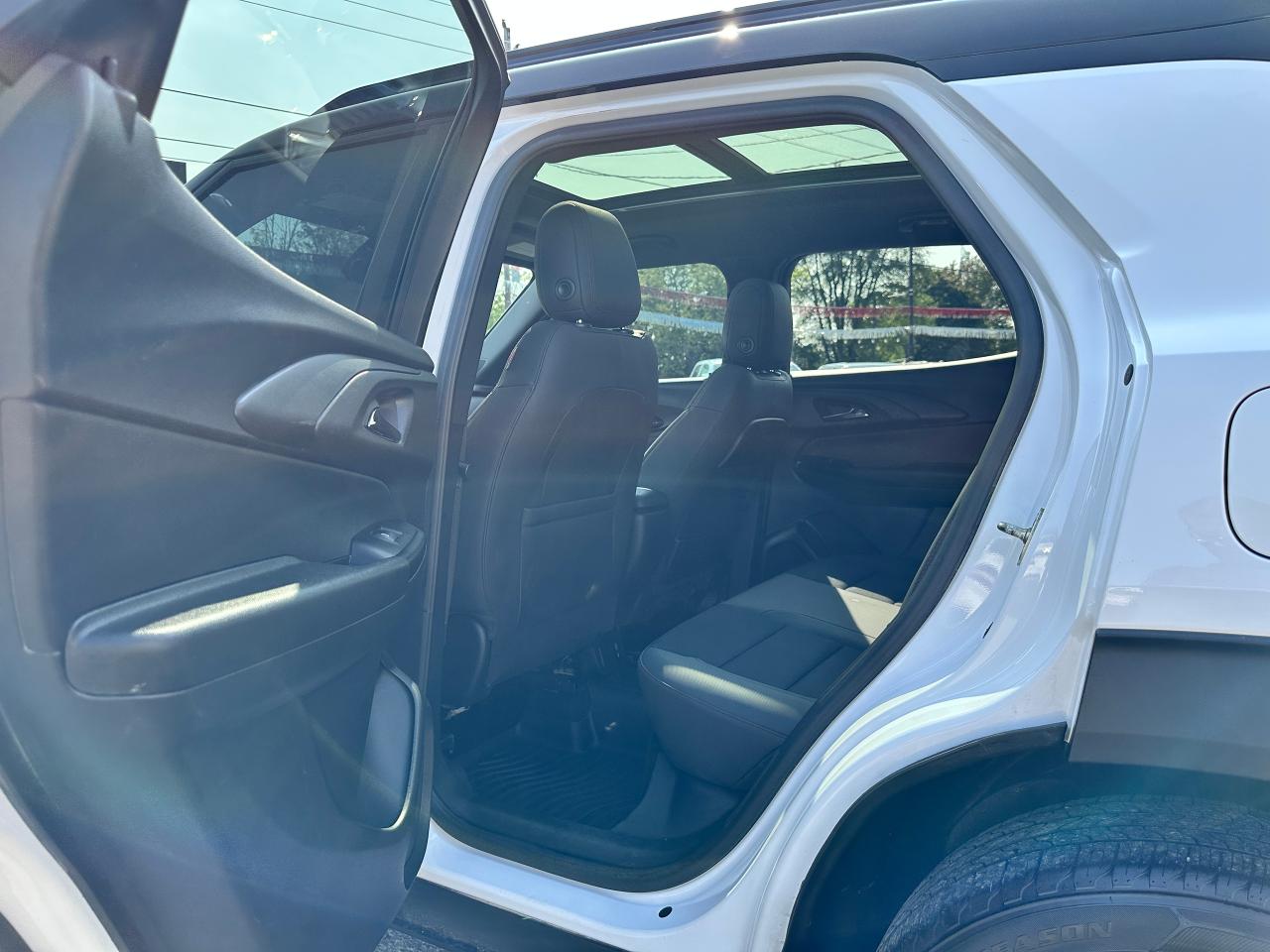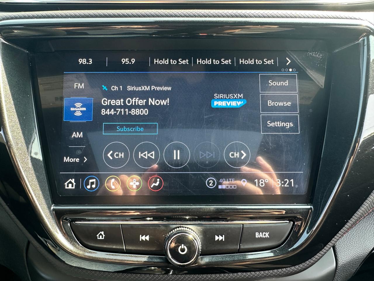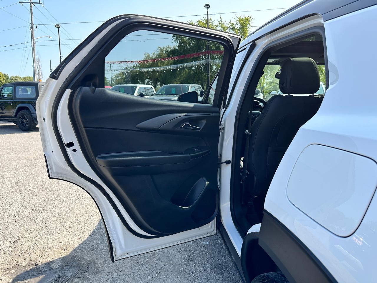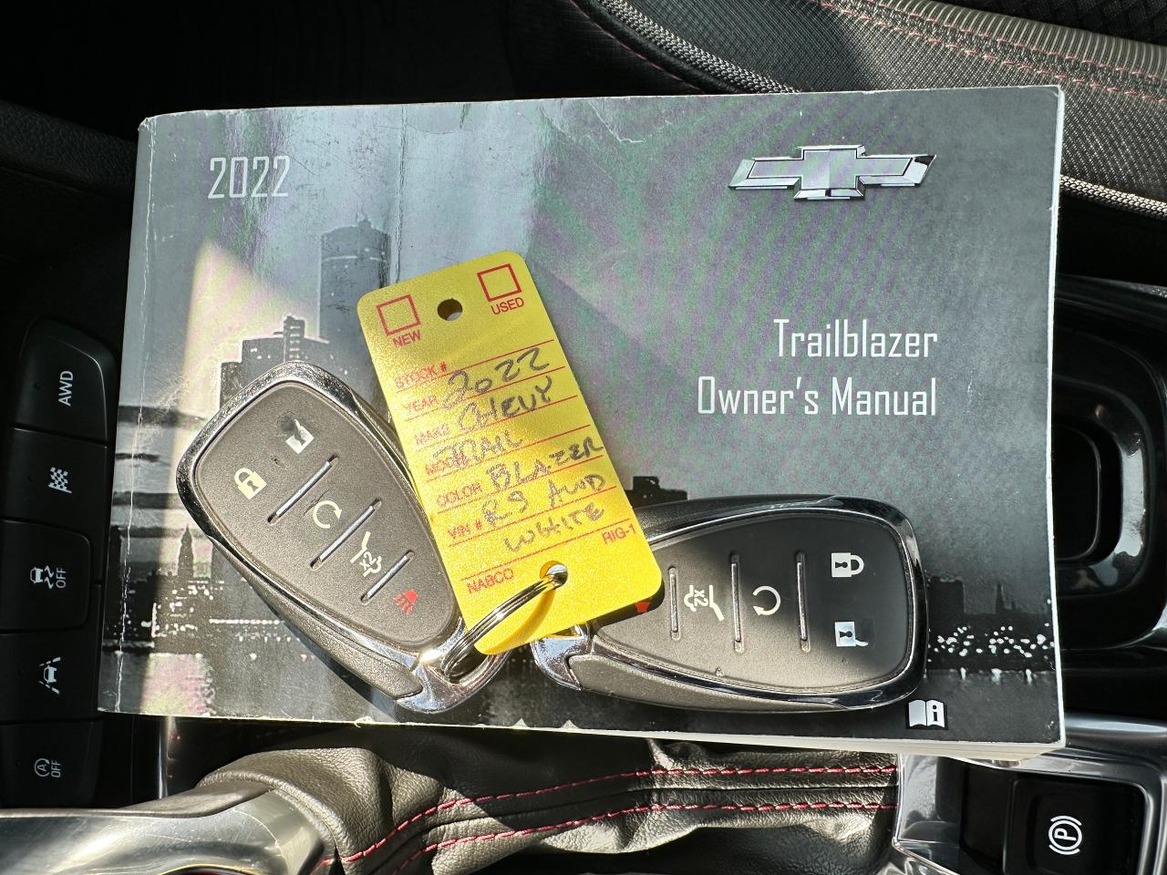 WOW! Super-Clean and exceptionally well optioned Chevrolet TrailBlazer from Brockville, ON! This RS AWD model looks awesome in its White paint and factory machine-finished alloy wheels with fantastic options inside and out! The exterior features keyless entry with remote start and proximity keys, a large Panoramic Sunroof, automatic headlights, foglights, automatic high beams, tinted privacy glass, blind spot monitors, forward collision warning, parking sensors, lane departure warning, roof rack rails, RS badging, and gorgeous factory split spoke alloy wheels, power rear liftgate, a peppy fuel efficient 1.3L 3-Cylinder Turbocharged Engine and Automatic transmission powering the All-Wheel-Drive system! The interior is clean and comfortable with heated cloth front seats with driver's power adjustment and lumbar controls, stylish interior accenting, power door locks, windows and mirrors, customizable rear gate opening height, a heated leather wrapped steering wheel with red accent stitching, Audio and Cruise controls, push button start, an easy to read and use gauge cluster, a large central touch screen AM/FM/XM Satellite HD Radio with BOSE Premium Audio, Bluetooth, Apple CarPlay, Android Auto, WiFi Settings, Backup Camera and OnStar Turn-By-Turn, A/C Climate control with front and rear window defrost settings, Auto-Stop/Start Override, Sport/AWD selection modes, Multiple USB/AUX/12V accessory ports, wireless device charger and more!