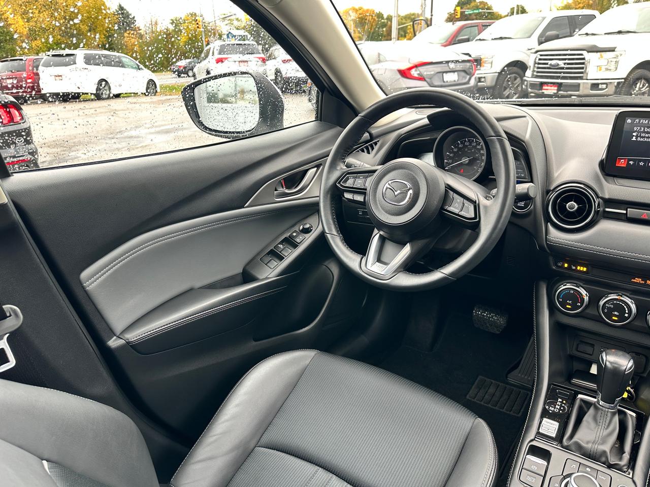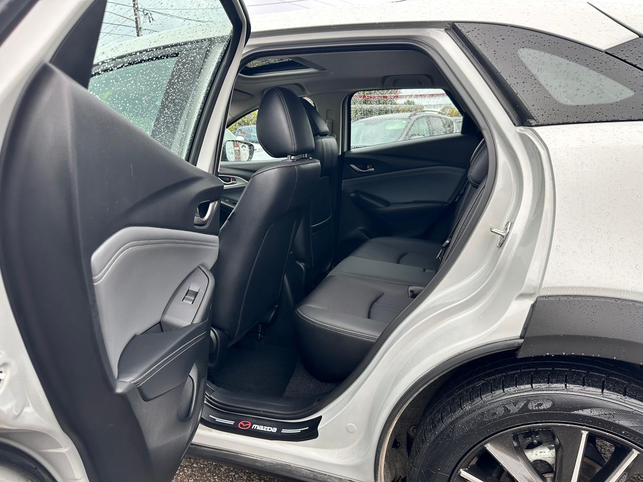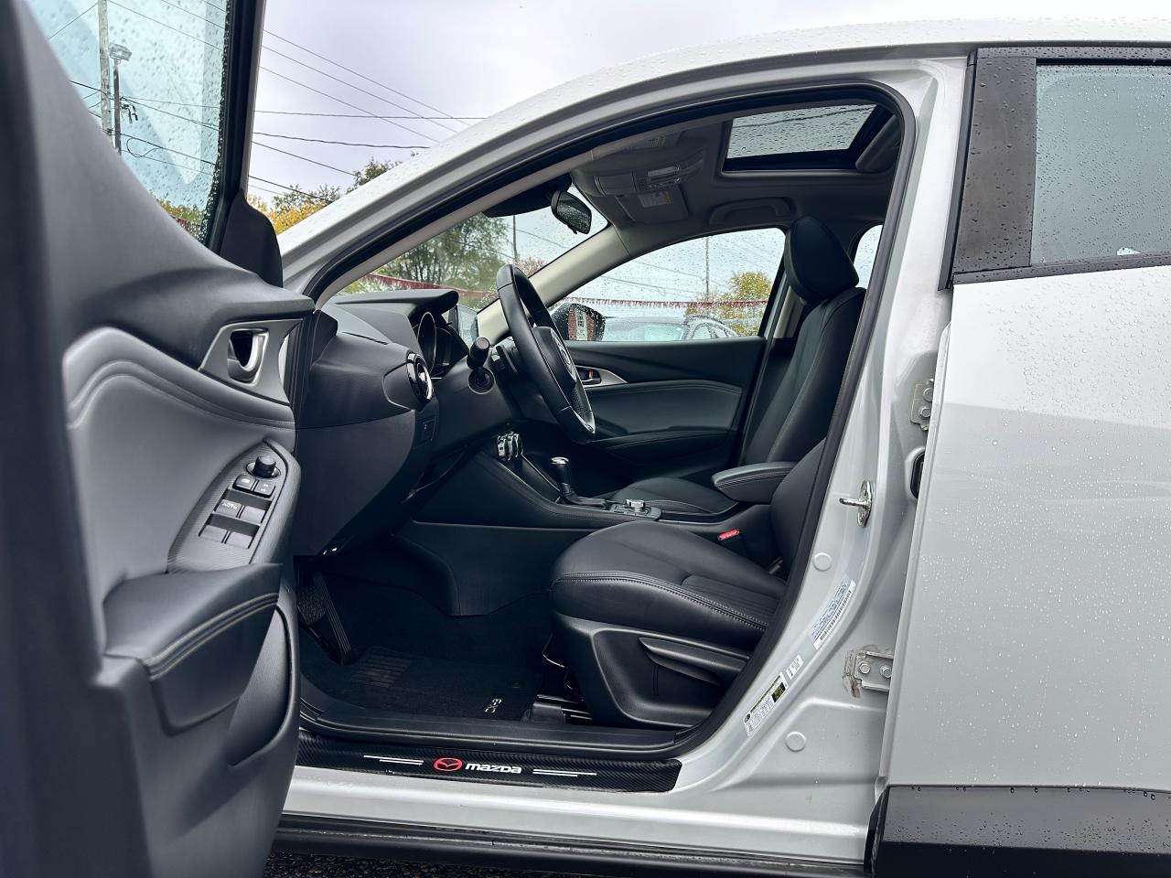 WOW! Ultra-Clean, LOW LOW KM, One-Owner Mazda CX-3 from Belleville, ON! This GS AWD model looks stunning in its White paint and factory alloy wheels, with nice options inside and out! The exterior features keyless entry with proxy keys, automatic headlights, blind spot monitors, lane departure warning, a factory power sunroof, colour-matched side mirrors with integrated turn signals, a sleek rear spoiler, sporty dual rear exhaust, gorgeous factory alloy wheels, a peppy fuel-efficient 2.0L 4-cylinder Engine and Automatic transmission driving the All-Wheel-Drive system! The interior is clean and comfortable with heated cloth-centred front seats with nice bolstering, power door locks, windows and mirrors, a rear privacy shade, and comfortable rear seating, a heated leather wrapped steering wheel with Audio and Cruise controls, paddle shifters, push button start, an easy to read and use gauge cluster, a central touch screen AM/FM HD Radio with Bluetooth, Apple CarPlay, Android Auto, and Backup Camera, A/C Climate control with front and rear window defrost settings, USB/AUX/12V accessory ports, SPORT Driving mode, Auto Hold Brake and more!
