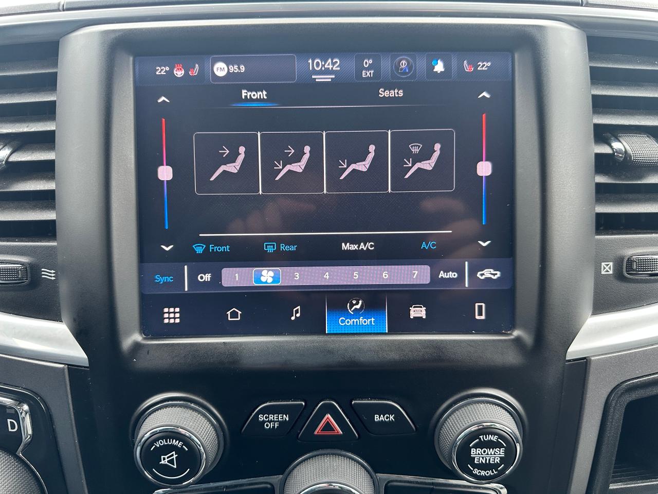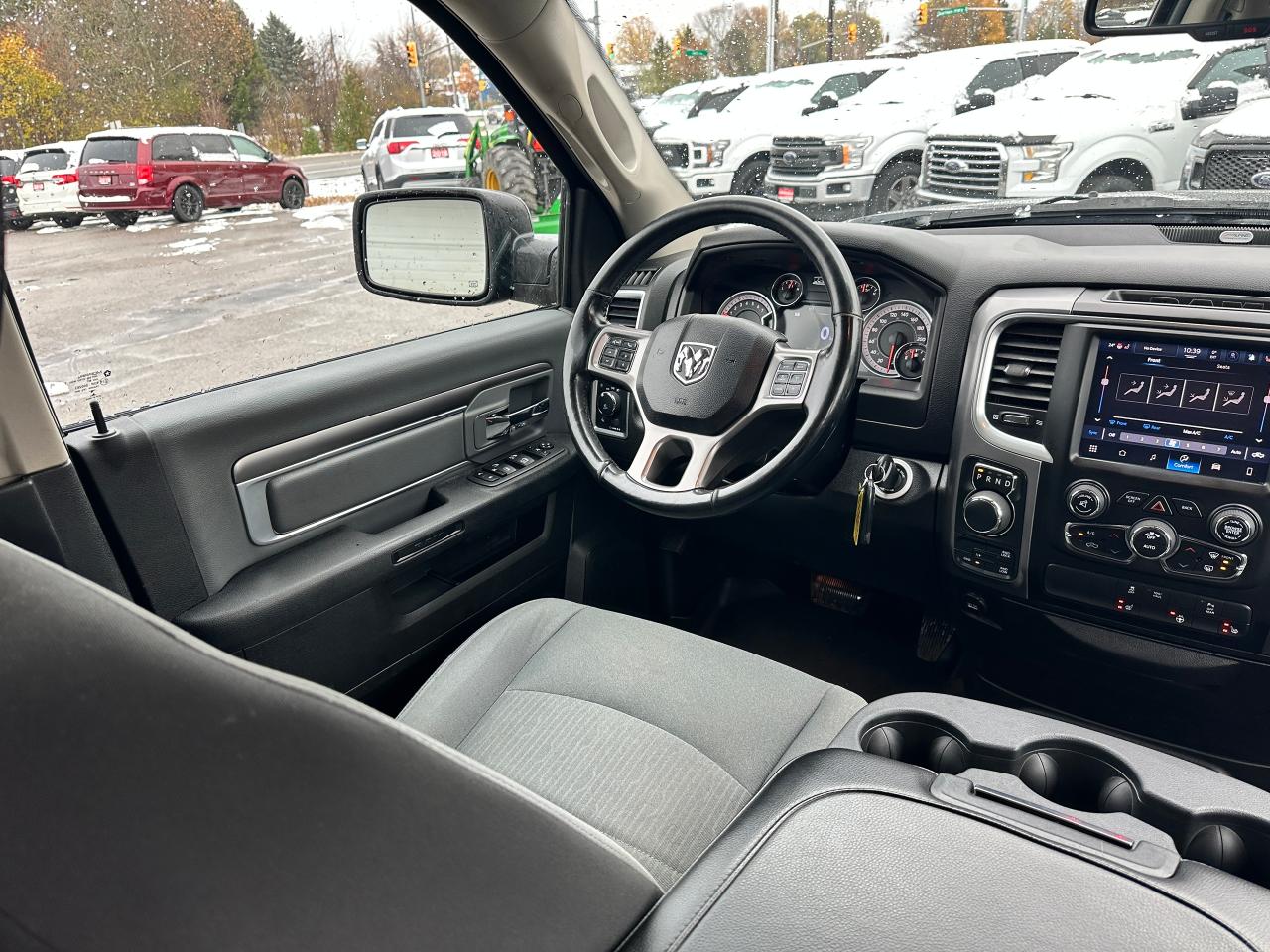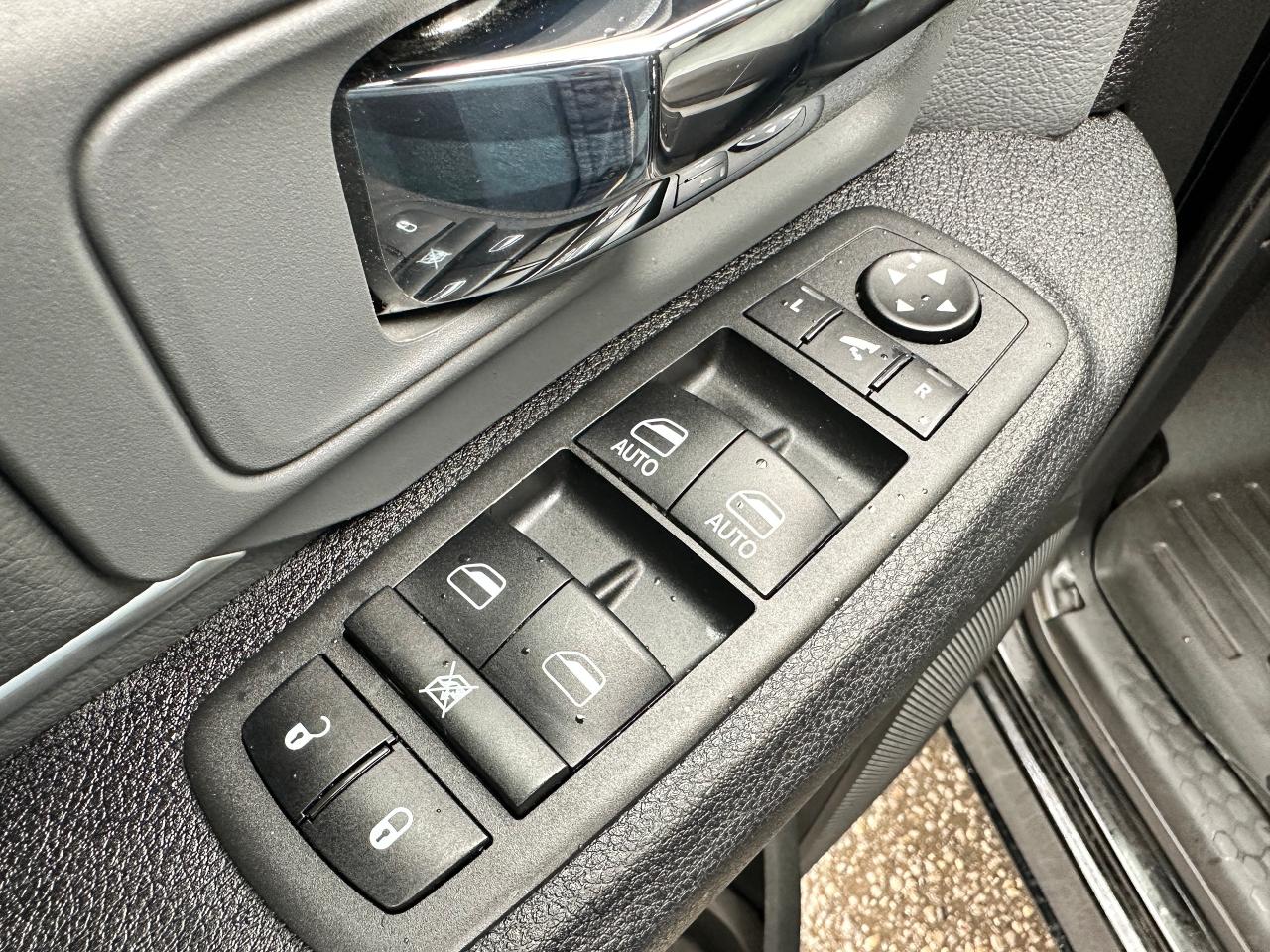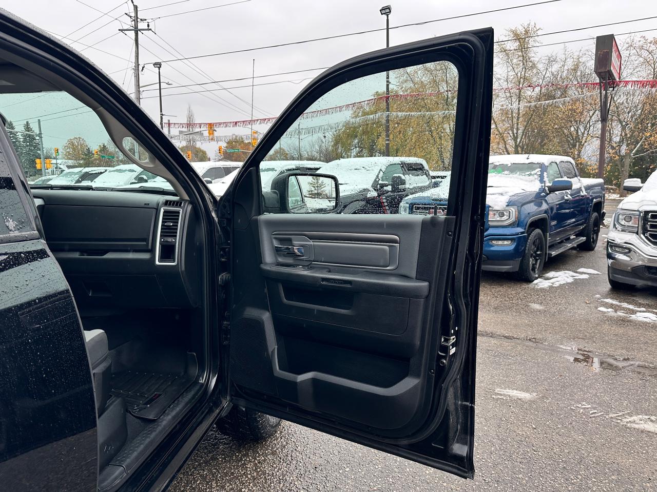 Super-Clean, One-Owner RAM 1500 from North York, ON! This Classic SLT 4x4 Crew Cab looks sharp in its timeless Black/Black colour scheme, with great convenience options inside and out! The exterior features keyless entry with remote start, automatic headlights, foglights, power folding heated side mirrors with integrated turn signals, tinted rear privacy glass and a power sliding rear window, a trailer hitch, parking sensors, a hard folding tonneau cover, gorgeous Black factory alloy wheels, a powerful 3.6L V6 Engine and an Automatic transmission driving the 4x4 system! The interior is clean and comfortable with seating for 6 through its heated front seats with driver's power adjustment and lumbar controls, fold-up centre console, and comfortable and spacious rear seating, all-weather floor mats front and rear, power door locks, mirrors and windows, a heated leather wrapped steering wheel with Audio and Cruise controls, an easy to read and use gauge cluster, gear selection knob and electronic 4x4 selection buttons, a large central touch screen AM/FM/XM Satellite Radio with Bluetooth, Apple CarPlay, Android Auto, Climate Creen and Backup Camera, Dual-Zone A/C climate controls with front and rear window defrost settings, Tow/Haul mode, USB/AUX/12V accessory ports, Universal Garage Door openers, and more!
