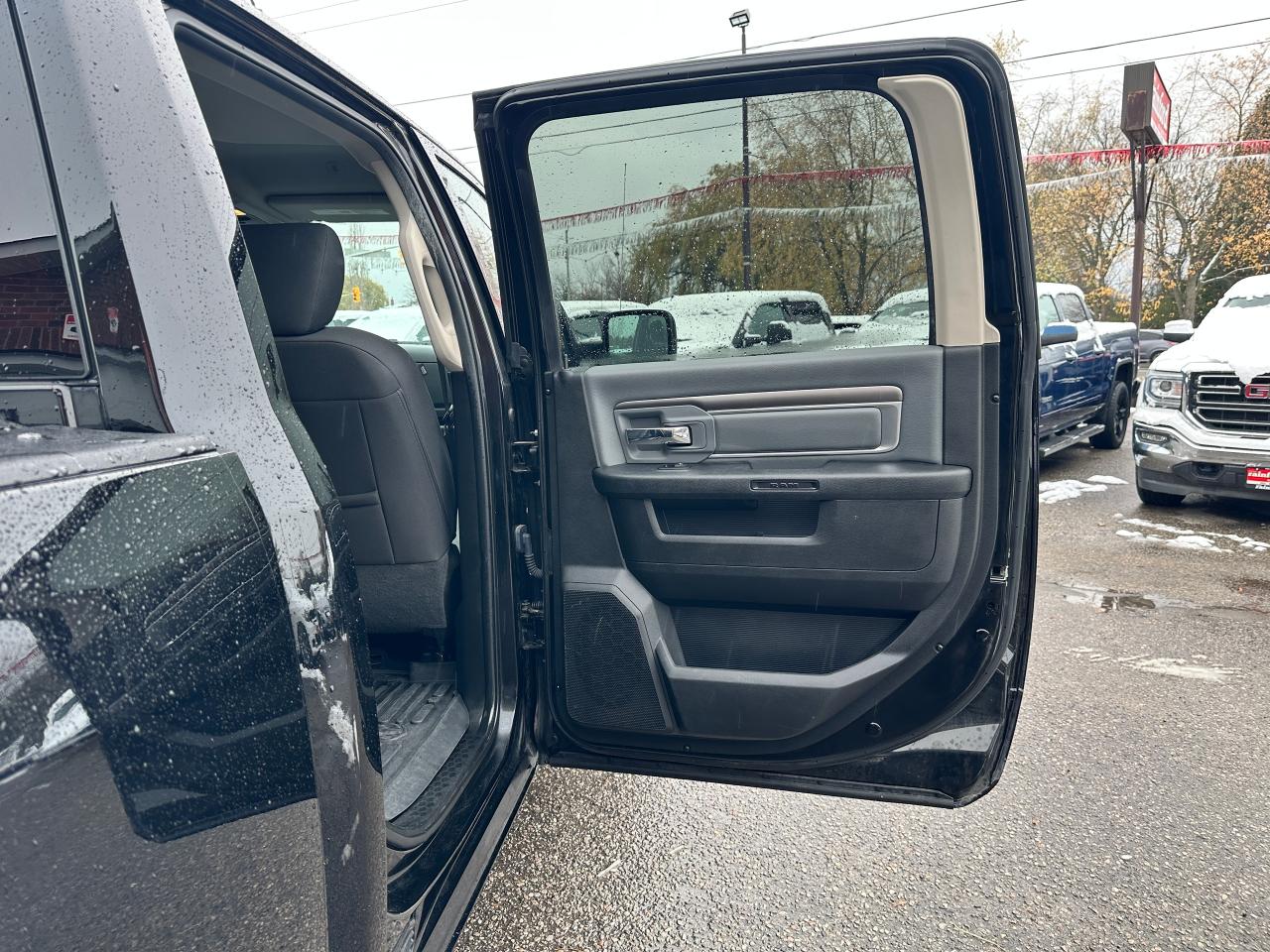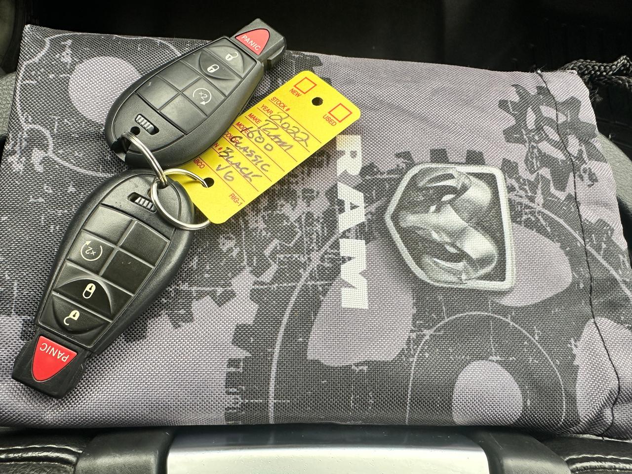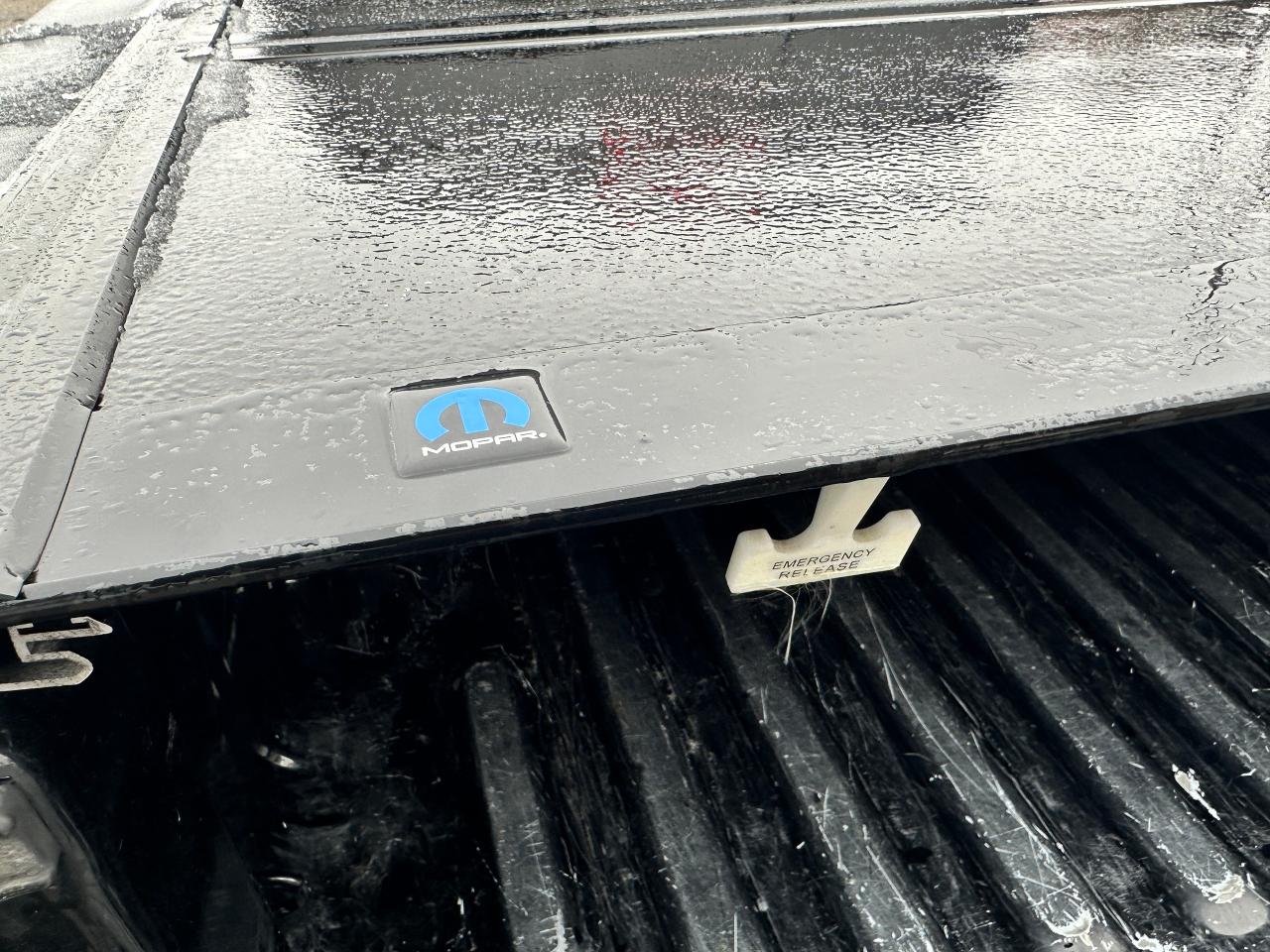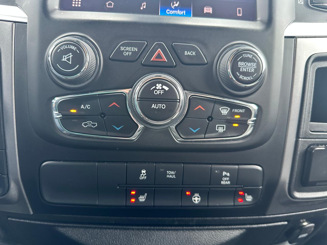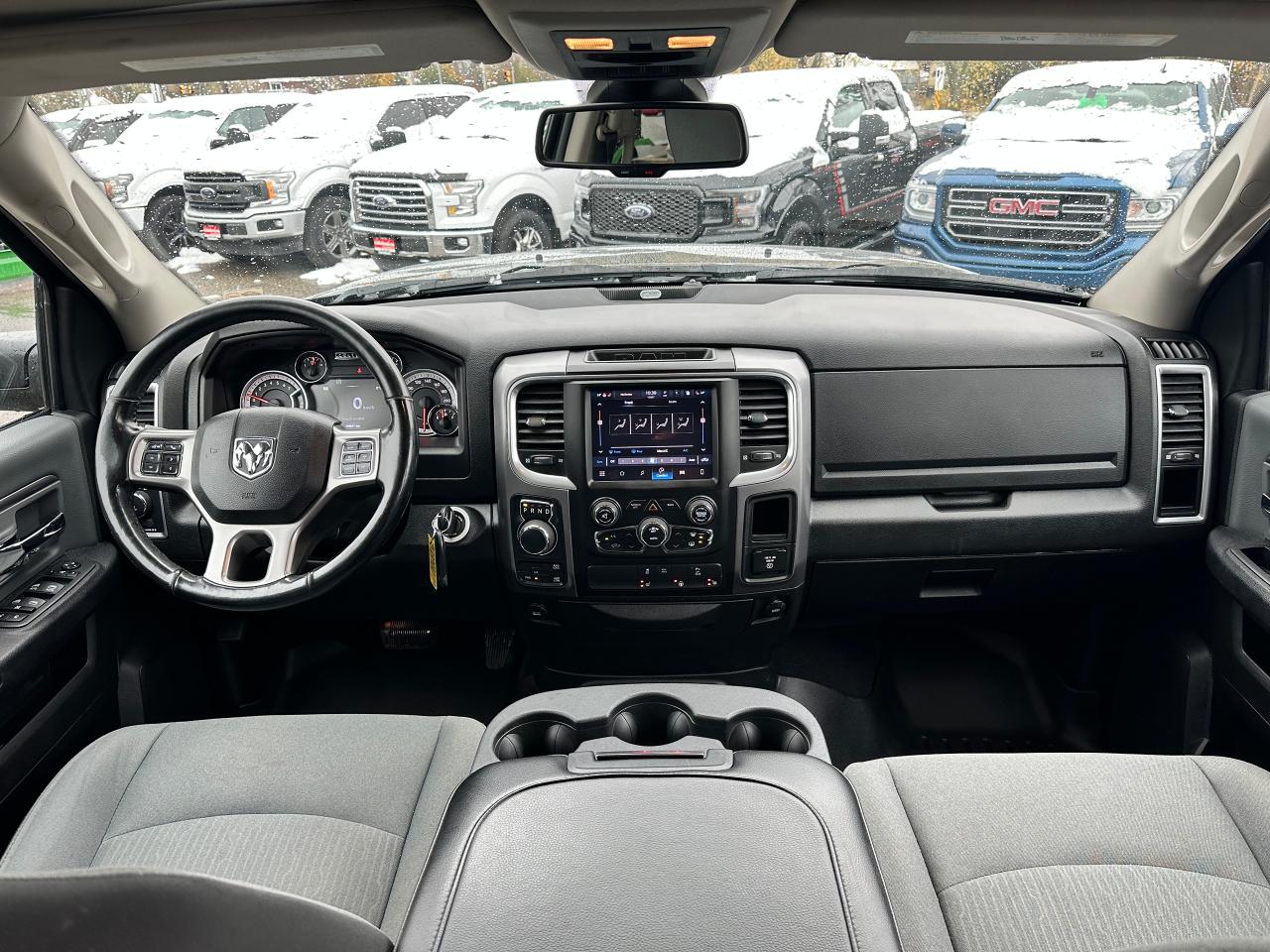 Super-Clean, One-Owner RAM 1500 from North York, ON! This Classic SLT 4x4 Crew Cab looks sharp in its timeless Black/Black colour scheme, with great convenience options inside and out! The exterior features keyless entry with remote start, automatic headlights, foglights, power folding heated side mirrors with integrated turn signals, tinted rear privacy glass and a power sliding rear window, a trailer hitch, parking sensors, a hard folding tonneau cover, gorgeous Black factory alloy wheels, a powerful 3.6L V6 Engine and an Automatic transmission driving the 4x4 system! The interior is clean and comfortable with seating for 6 through its heated front seats with driver's power adjustment and lumbar controls, fold-up centre console, and comfortable and spacious rear seating, all-weather floor mats front and rear, power door locks, mirrors and windows, a heated leather wrapped steering wheel with Audio and Cruise controls, an easy to read and use gauge cluster, gear selection knob and electronic 4x4 selection buttons, a large central touch screen AM/FM/XM Satellite Radio with Bluetooth, Apple CarPlay, Android Auto, Climate Creen and Backup Camera, Dual-Zone A/C climate controls with front and rear window defrost settings, Tow/Haul mode, USB/AUX/12V accessory ports, Universal Garage Door openers, and more!