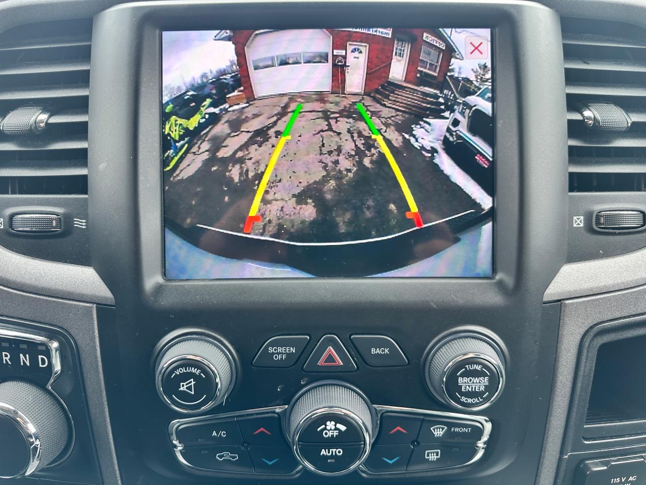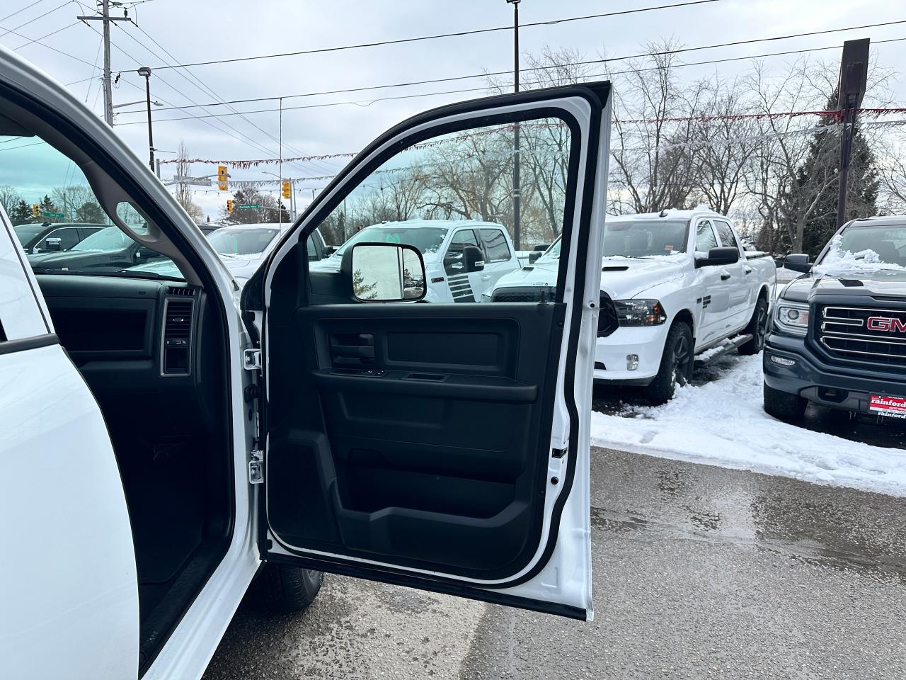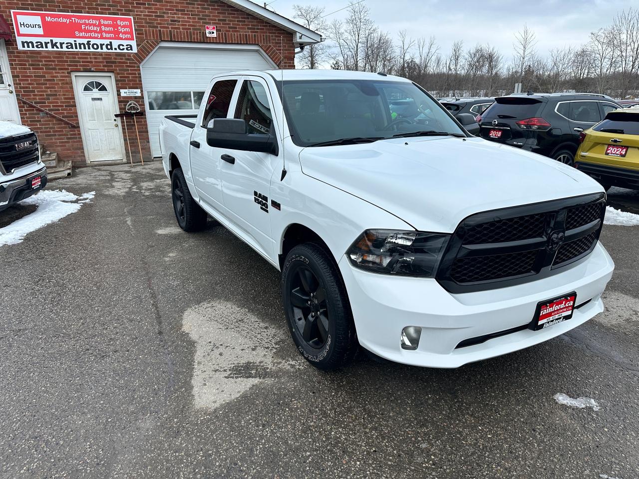 Super-Clean, One-Owner RAM 1500 Classic from North York, ON! This Express Crew Cab 4x4 model looks awesome in its White paint and factory alloy wheels, with nice options inside and out! The exterior features keyless entry with remote start, automatic headlights, foglights, tinted privacy glass, tow-style mirrors with integrated lamps, sporty dual-exit exhaust, rear parking sensors, gorgeous Black factory Alloy wheels, a powerful 5.7L V8 Engine and Automatic transmission driving the 4x4 System! The interior is clean and comfortable with heated cloth front seats with driver's power adjustment and lumbar controls, power door locks, windows and mirrors, spacious seating for up to 5 occupants, a heated leather wrapped steering wheel with Audio and Cruise controls, an easy to read and use gauge cluster, electronic gear and 4x4 selection, an intergrated electronic trailer brake controller, large central touch screen AM/FM/XM Satellite Radio with Bluetooth, Apple CarPlay, Android Auto, and Backup Camera, Dual-Zone A/C climate controls with front and rear window defrost settings, TOW/Haul mode, USB/AUX/12V accessory ports and more!
