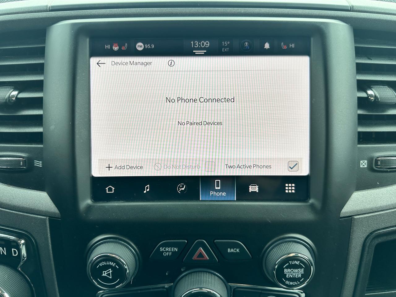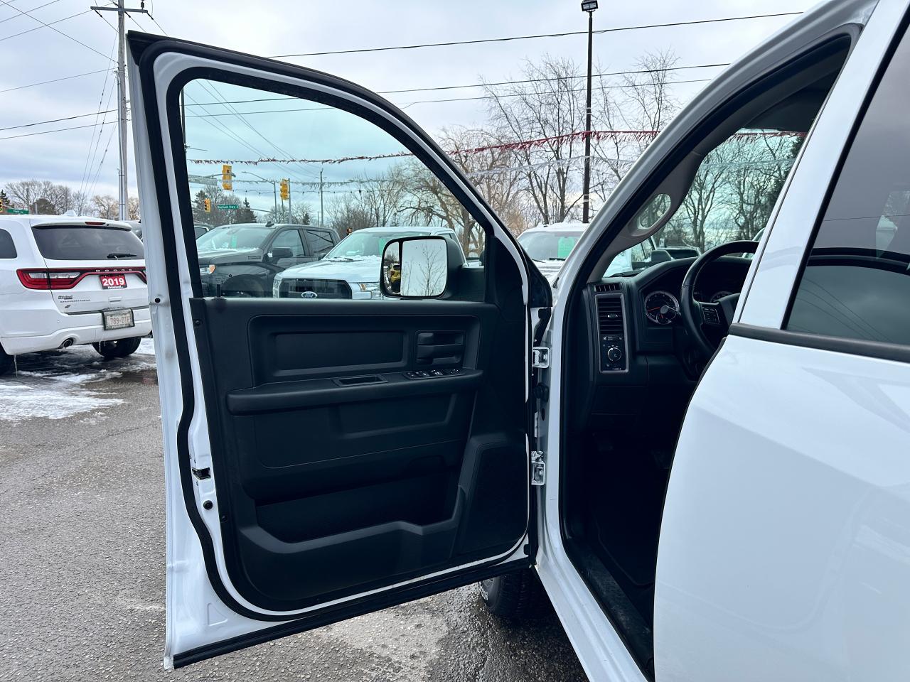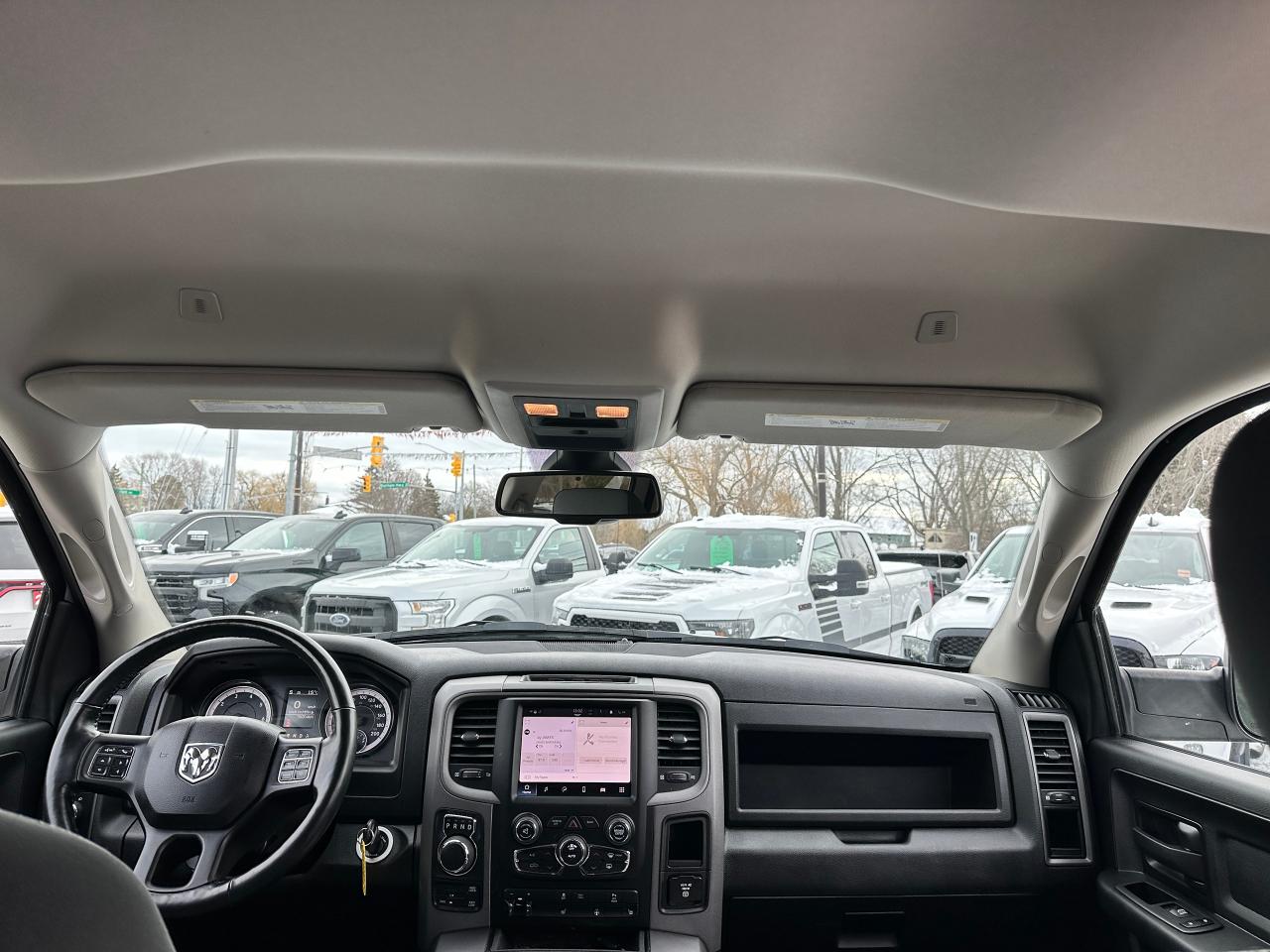 Super-Clean, One-Owner RAM 1500 Classic from North York, ON! This Express Crew Cab 4x4 model looks awesome in its White paint and factory alloy wheels, with nice options inside and out! The exterior features keyless entry with remote start, automatic headlights, foglights, tinted privacy glass, tow-style mirrors with integrated lamps, sporty dual-exit exhaust, rear parking sensors, gorgeous Black factory Alloy wheels, a powerful 5.7L V8 Engine and Automatic transmission driving the 4x4 System! The interior is clean and comfortable with heated cloth front seats with driver's power adjustment and lumbar controls, power door locks, windows and mirrors, spacious seating for up to 5 occupants, a heated leather wrapped steering wheel with Audio and Cruise controls, an easy to read and use gauge cluster, electronic gear and 4x4 selection, an intergrated electronic trailer brake controller, large central touch screen AM/FM/XM Satellite Radio with Bluetooth, Apple CarPlay, Android Auto, and Backup Camera, Dual-Zone A/C climate controls with front and rear window defrost settings, TOW/Haul mode, USB/AUX/12V accessory ports and more!