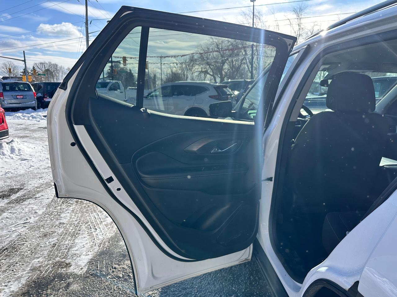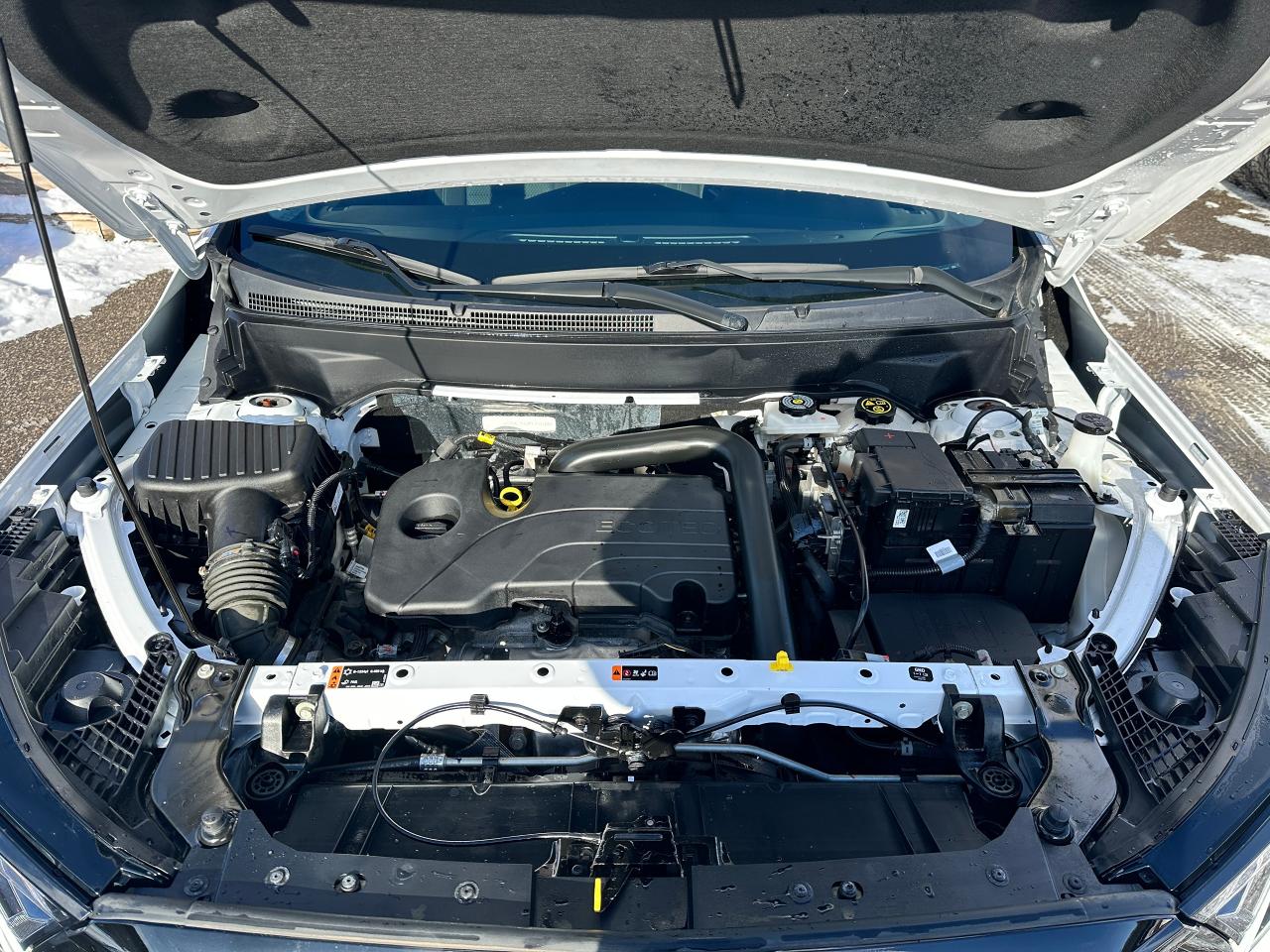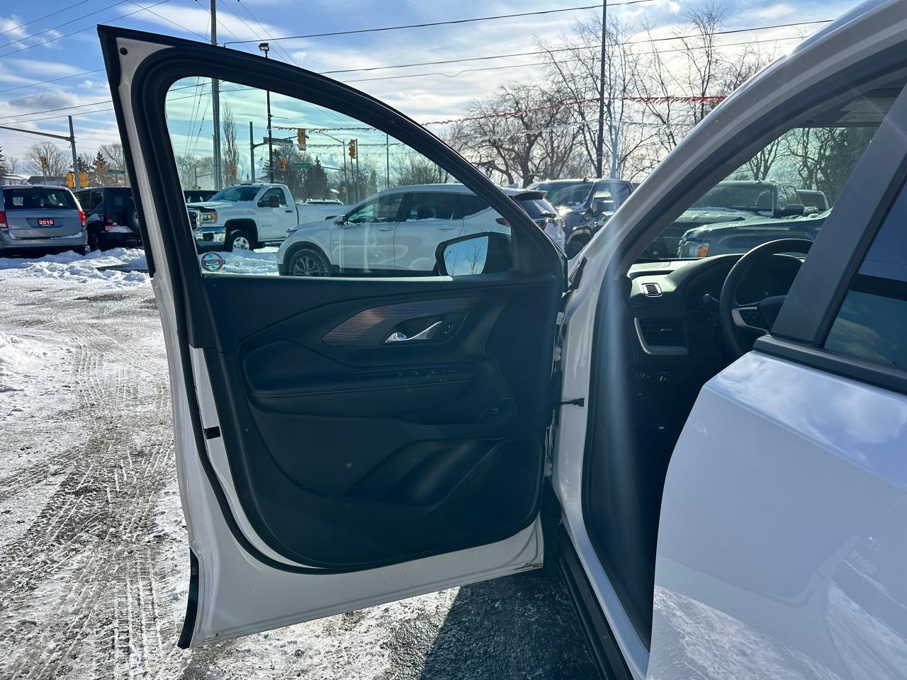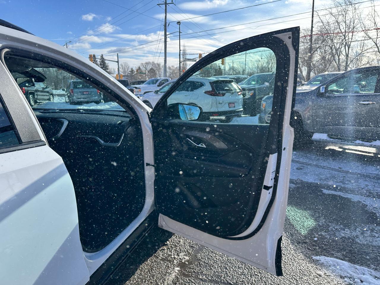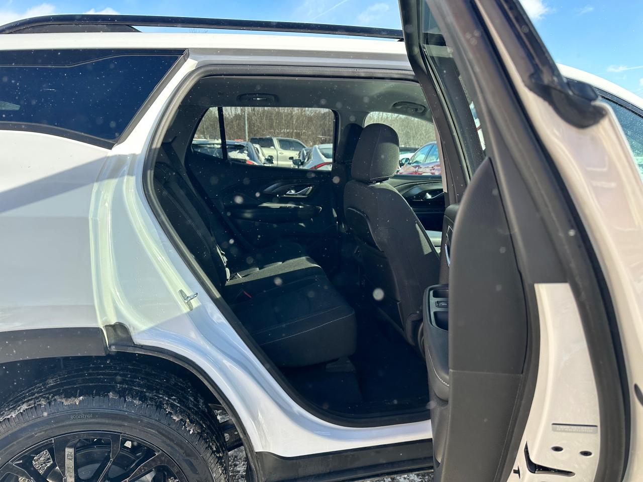 WOW! Super-Clean LOW KM GMC Terrain from Campbellford, ON! This SLE Elevation AWD model looks incredible in its White paint and Black Alloy wheels, with great options inside and out! The exterior features keyless entry with proximity keys, remote start, remote power rear liftgate, tinted privacy glass, roof rack rails, parking sensors, blind spot monitors, forward collision warning, lane departure warning, automatic headlights and highbeams, a sleek rear spoiler, Black badging and accents, gorgeous Black factory Alloy wheels, a peppy fuel efficient 1.5L 4-Cylinder Turbochrged Engine and Automatic transmission powering the All-Wheel-Drive system! The interior is clean and comfortable with heated cloth front seats with drivers power adjustment and lumbar controls, power door locks, windows and mirrors, adjustable rear gate lift height, steering wheel Audio and Cruise controls, an easy-to-read and use gauge cluster, push button start, a large central touch screen AM/FM/XM Satellite Radio with Bluetooth, Apple CarPlay, Android Auto, WiFi and OnStart settings, and a Backup Camera, Dual-Zone A/C climate controls with front and rear window defrost settings, push button gear selection with Low range, selectable AWD settings/terrain mode, USB/USB-C/AUX/12V accessory ports and more!