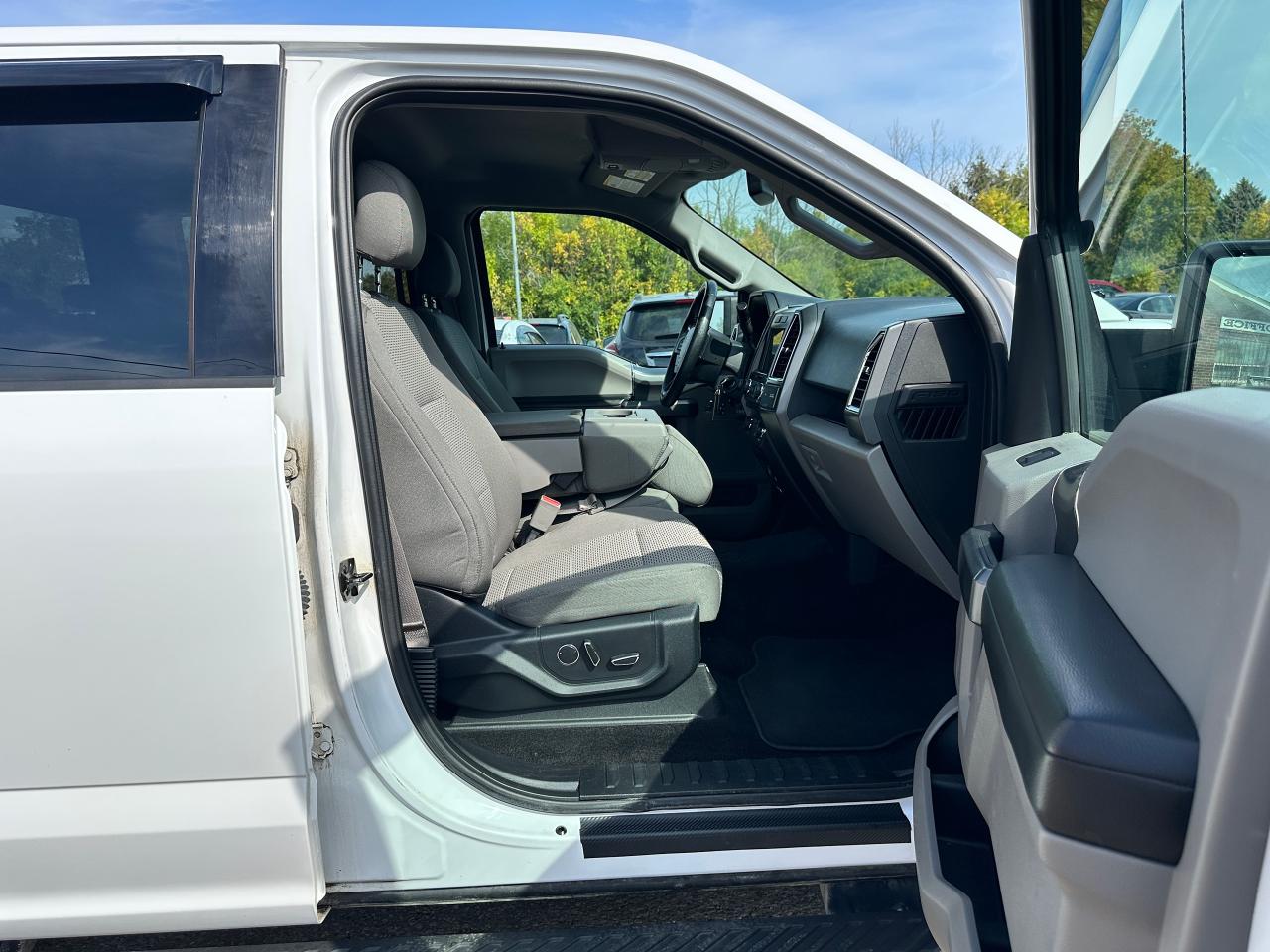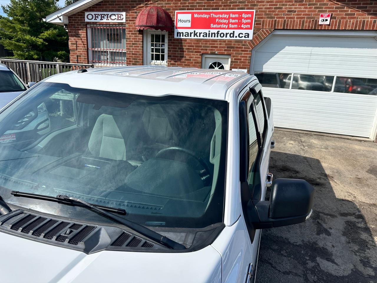 WOW! Super-Clean and well-maintained Ford F-150 from Kingston, ON! This XLT XTR Crew Cab 4x4 model looks awesome in its White paint and polished factory alloy wheels with great options inside and out! The exterior features keyless entry with keycode entry and remote start, front and rear tow hooks, automatic headlights, foglights, chromed bumpers, heated side mirrors with integrated turn signals, step sides, rear parking sensors, a trailer hitch, tinted privacy glass, window coverings, front bug/rock deflector, nice factory polished wheels, spray-in bedliner, a powerful 5.0L V8 Engine and Automatic transmission driving the 4x4 system! The interior is clean and comfortable with seating for 6 through a fold-up center console, heated cloth front seats with power adjustment and lumbar controls, power door locks, windows and mirrors, sliding rear glass, power adjustable driver's pedals, steering wheel Audio and Cruise controls, an easy to read and use gauge cluster, electronic 4x4 selection knob and integrated trailer brake controller with trailer backup assist setting, SPORT/TOW&HAUL drive modes, a large central touch screen AM/FM/XM Satellite Radio with Bluetooth, Android Auto SmartPhone connection, WiFi Settings, Backup Camera and CD Player, A/C climate control with front and rear window defrost settings, USB/AUX/12V accessory ports, and more!