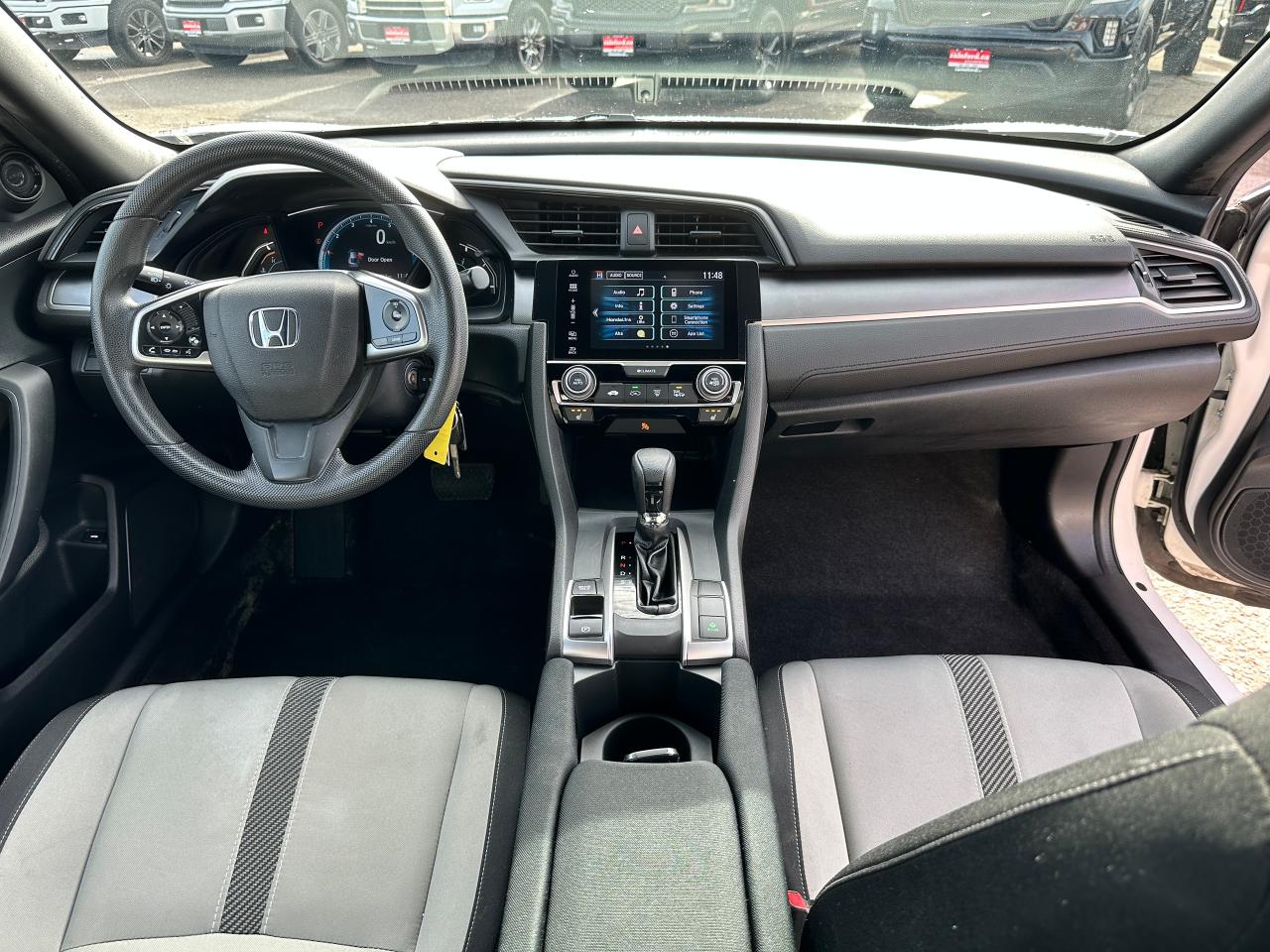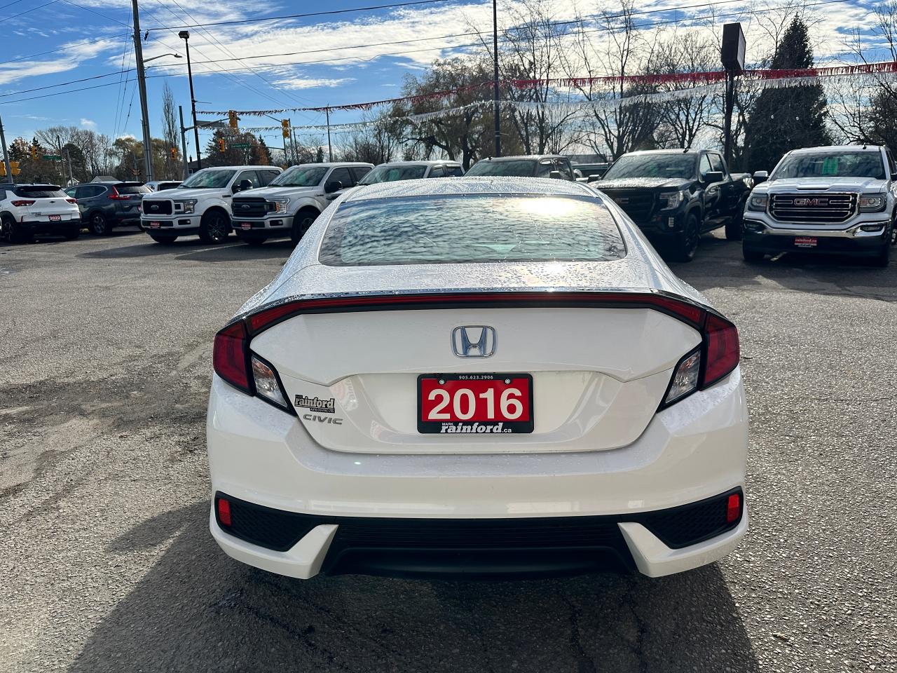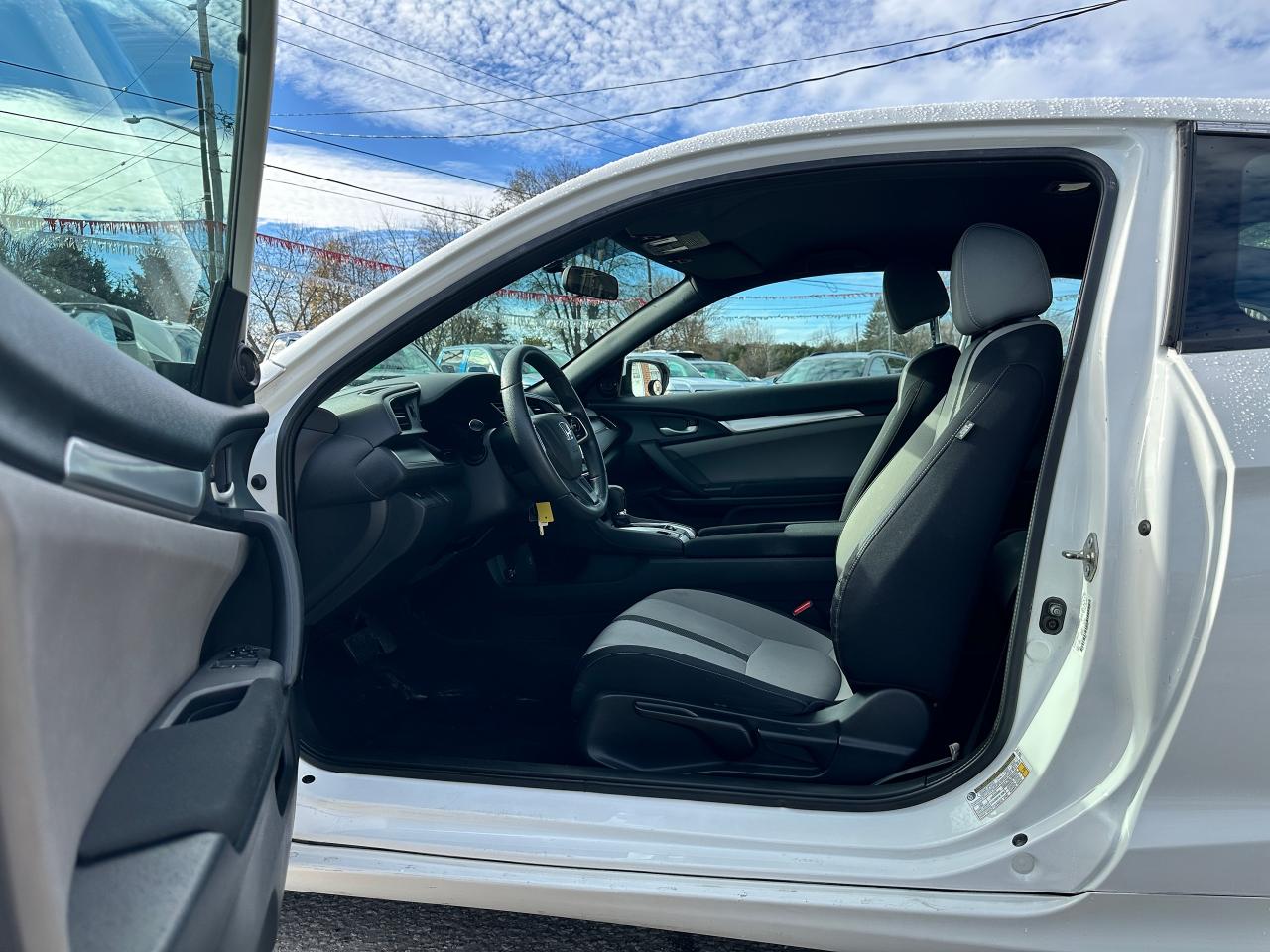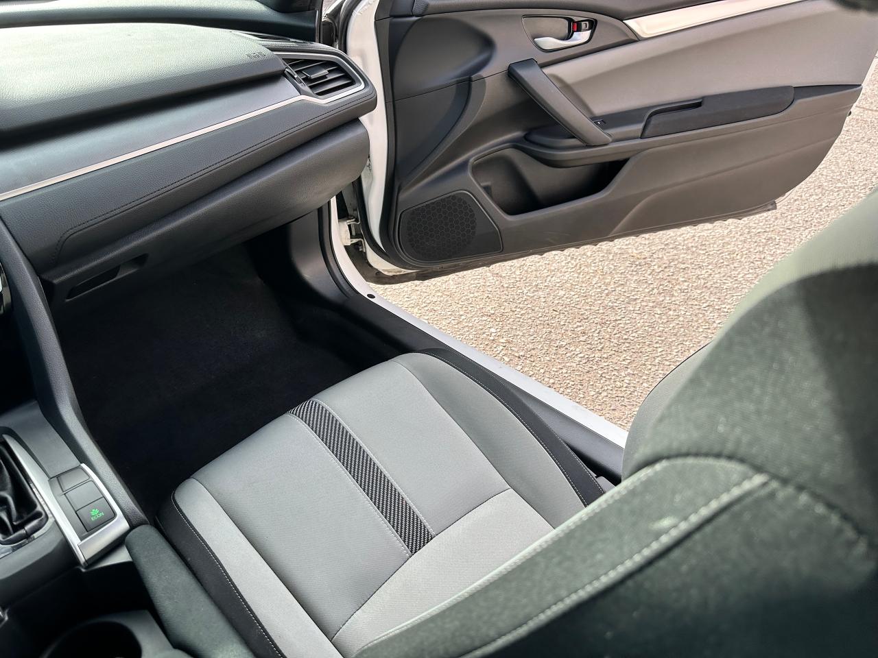 WOW! SUPER-CLEAN, low KM Honda Civic from Cobourg, ON! This 2-Door LX Coupe looks awesome in its White paint and factory alloy wheels, with nice options inside and out! The exterior features keyless entry with remote trunk release, automatic headlights, colour-matched heated side mirrors, sporty exterior styling, gorgeous factory machine-finished alloy wheels, a peppy fuel-efficient 2.0L 4-cylinder Engine and a CVT-Auto transmission! The interior is clean and comfortable with heated Cloth front seats, power door locks, windows and mirrors, steering wheel Audio and Cruise controls, an easy-to-read and use gauge cluster, a large central touch screen AM/FM Radio with Bluetooth, Apple CarPlay, Android Auto, and a Backup Camera, A/C climate controls with front and rear window defrost settings, Brake Auto-Hold setting, ECON driving mode for improved fuel economy, and more!