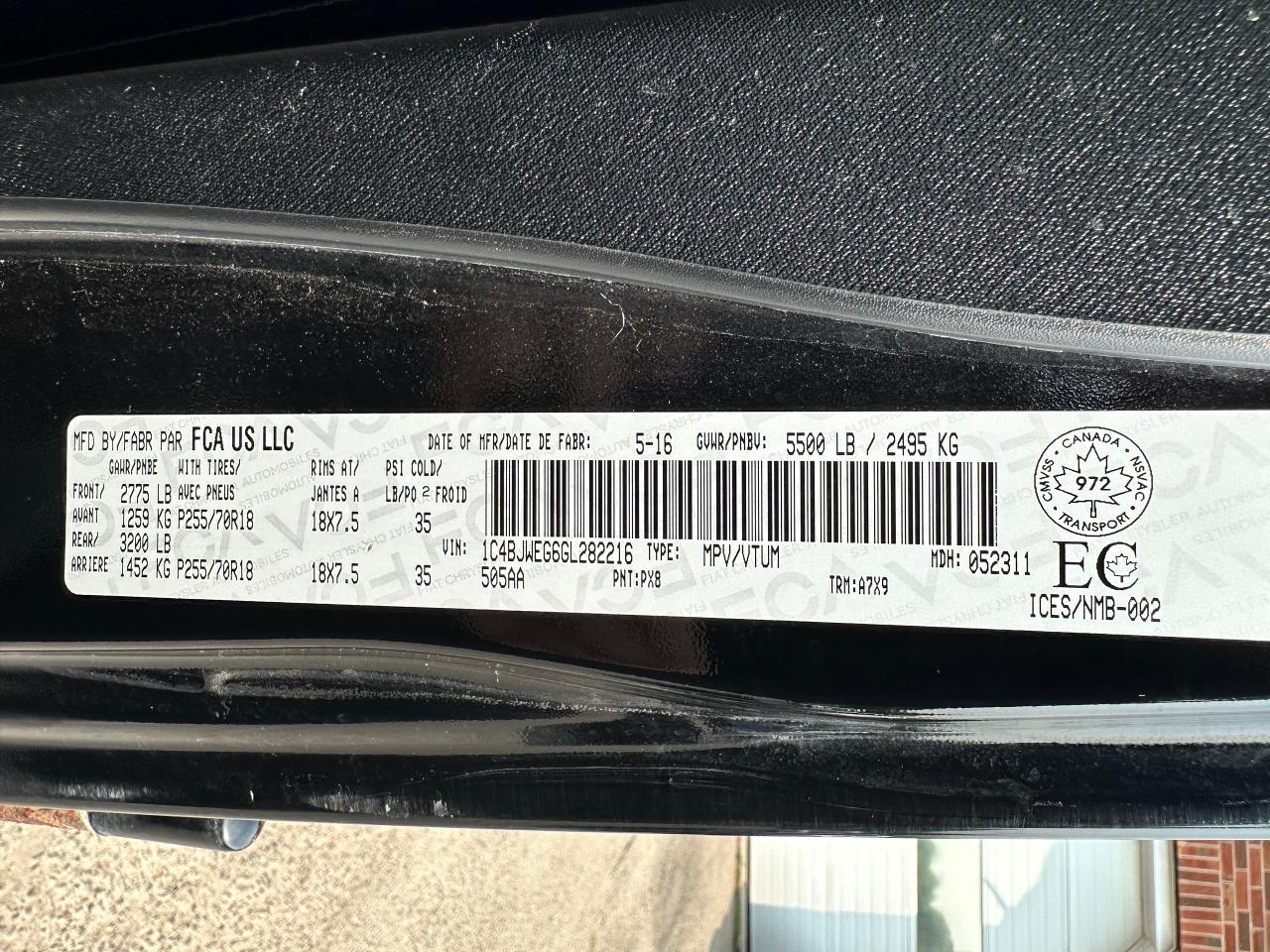 - VIN: 1C4BJWEG6GL282216