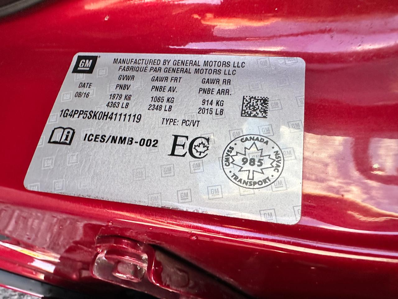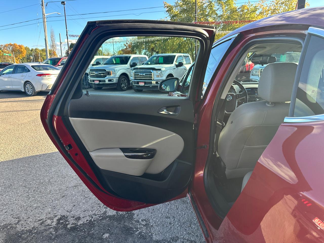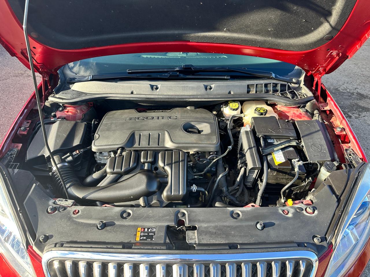 Super-Clean, LOW KM Buick Verano from Napanee, ON! This Convenience model looks great in it's Red paint and factory alloy wheels, with great options inside and out! The exterior feature keyless entry with remote start, automatic headlights, colour matched side mirrors, remote trunk release, a powerful 2.4L 4-cylindr Engine and Automatic transmission! The interior is clean and comfortable with heated cloth centred seats with drivers power adjustment and lumbar control, power door locks, windows and mirrors, a leather wrapped steering wheel with Audio and Cruise controls, an easy to read and use Gauge cluster, a central touch screen AM/FM/XM Satellite Radio with Bluetooth Handsfree, Backup Camera and CD Player, Dual-Zone A/C climate control with front and rear window defrost settings, USB/AUX/12V accessory ports and more!