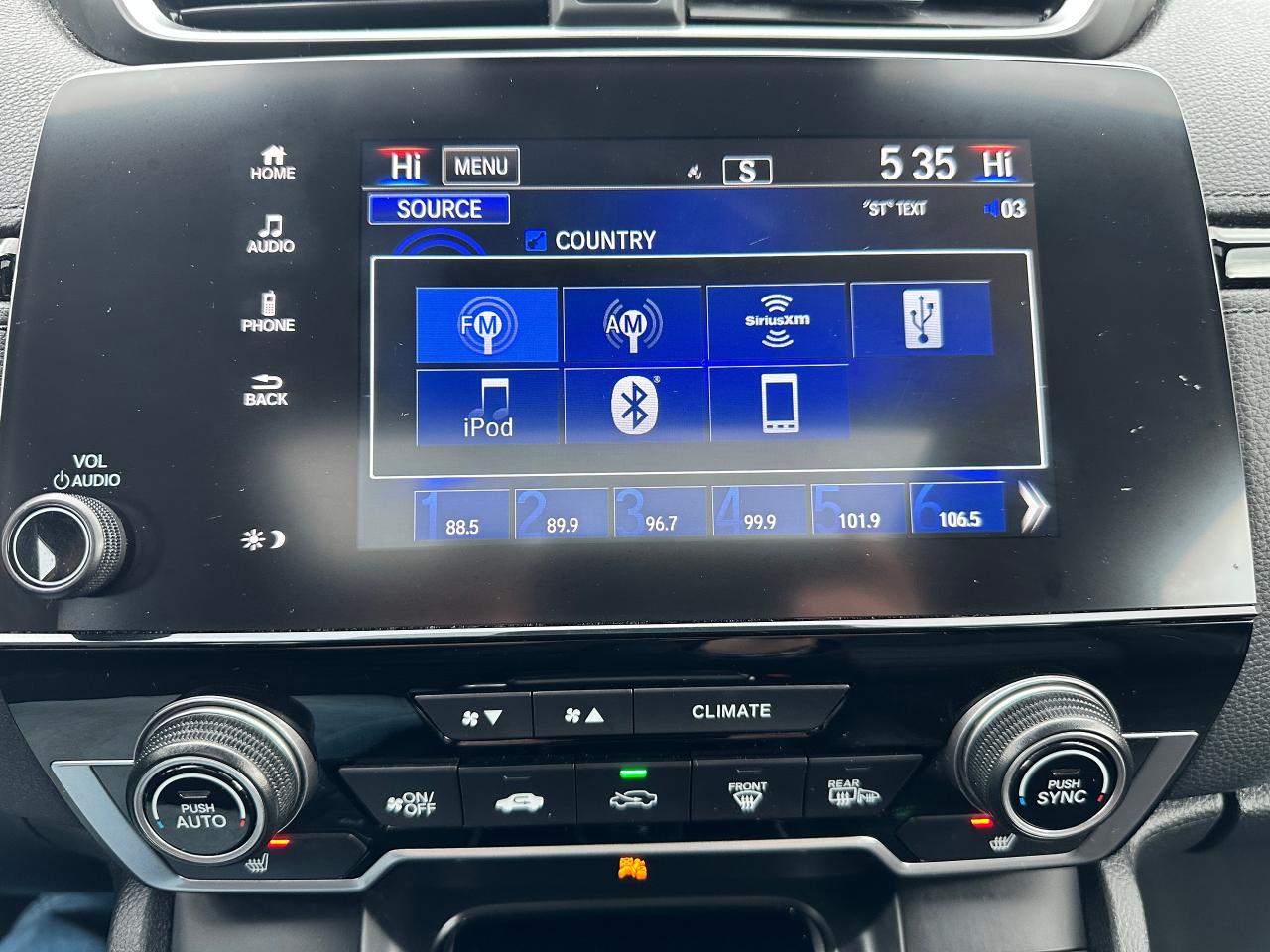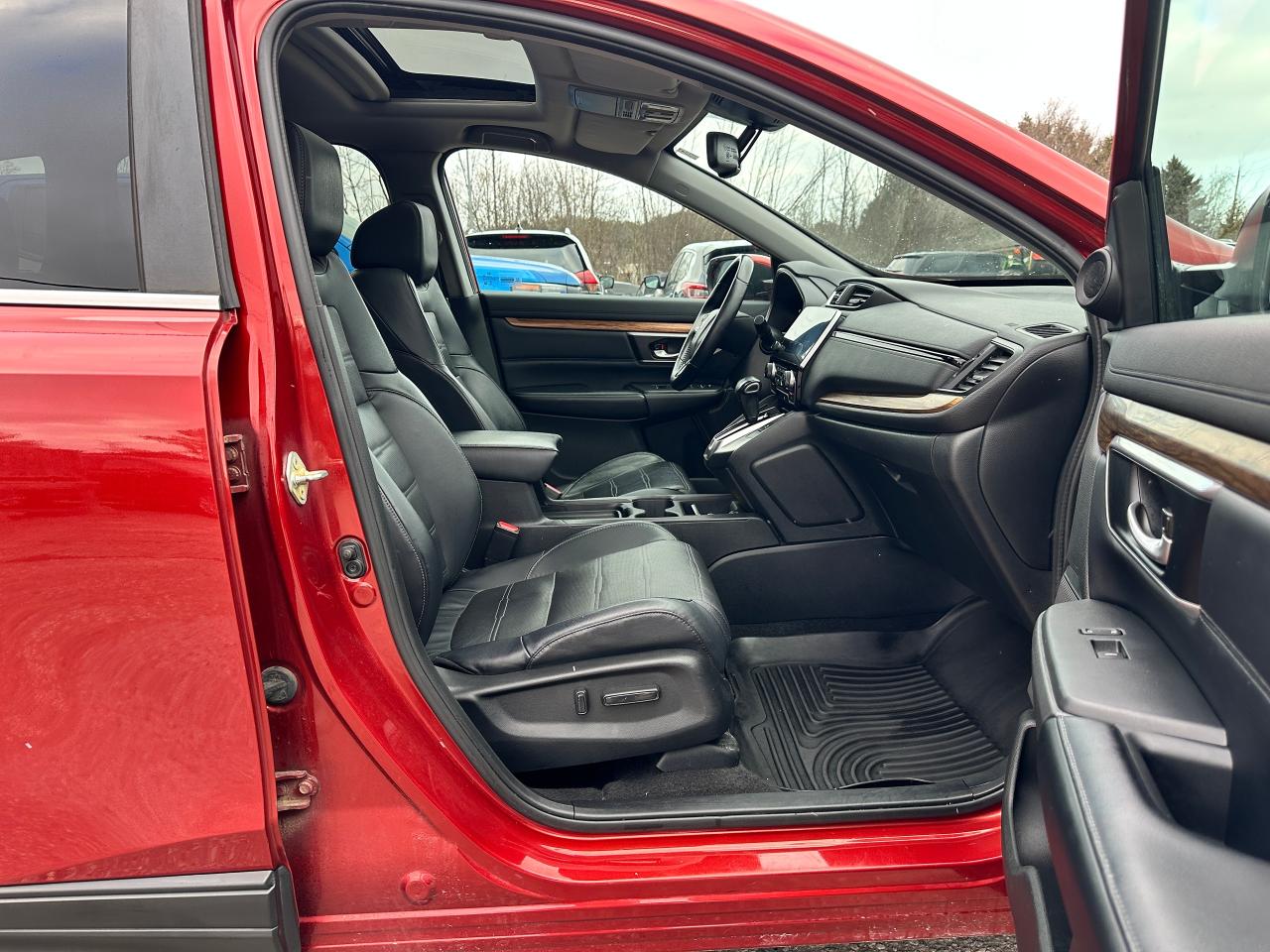 WOW! Super-Clean and well-optioned Honda CR-V from Kanata, ON! This EX-L AWD model looks awesome in its Red/Orange paint and factory alloy wheels with great options inside and out! The exterior features keyless entry with remote start and proximity keys, remote power rear liftgate, a large factory power Sunroof, colour-matched side mirrors with integrated turn signals and passenger side blind spot monitor camera, automatic headlights, foglights, adaptive cruise and lane keeping assist, forward collision warning, tinted privacy glass, a sleek rear spoiler, gorgeous factory alloy wheels, a peppy fuel efficient 1.5L 4-Cylinder Turbocharged Engine and CVT Auto transmission powering the All-Wheel-Drive system! The interior is clean and comfortable with heated leather front and rear seating, power adjustable front seating with driver's lumbar controls and memory seating, power door locks, windows and mirrors, wood trim interior accents, a heated leather wrapped steering wheel with Audio and Cruise controls, heated windscreen wiper area, an easy to read and use gauge cluster, push button start, a large central touch screen AM/FM/XM Satellite Radio with Bluetooth, SmartPhone connection, Backup Camera and Blind Spot Camera display, Dual-Zone A/C climate controls with front and rear window defrost settings, ECON driving mode for improved fuel economy, universal garage door openers, USB/AUX/12V accessory ports and more!