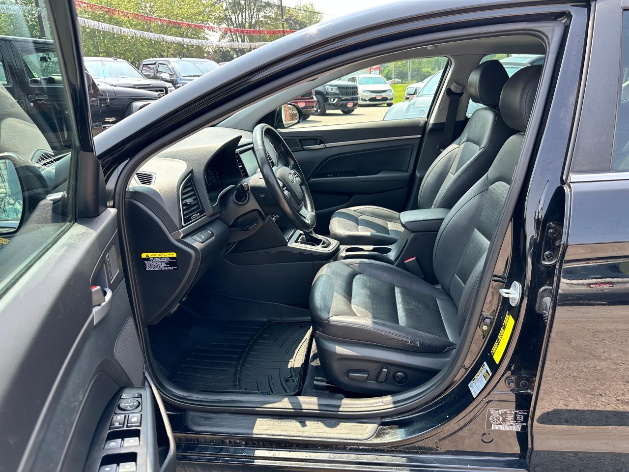 Super-Clean, LOW KM Hyundai Elantra from Kingston, ON! This Limited model looks great in its Black paint and factory alloy wheels with amazing options inside and out! The exterior features keyless entry with proximity key, automatic headlights, a large factory power sunroof, colour-matched side mirrors with integrated turn signals, blind spot monitors, tinted rear privacy glass, gorgeous factory machine-finished alloy wheels, a peppy fuel-efficient 2.0L 4-cylinder Engine and an Automatic transmission! The interior is clean and comfortable with heated leather seats for both the front and rear, power adjustable driver's seat with lumbar controls and memory settings, all-weather floor mats, power door locks, mirrors and windows, a heated leather wrapped steering wheel with Audio and Cruise controls, an easy to read and use gauge cluster, push button start, a large central touch screen AM/FM/XM Satellite Radio with Bluetooth, Navigation, Apple CarPlay and Android Auto capability, Backup Camera and MP3 player, Dual-Zone A/C climate control with front and rear window defrost settings, multiple drive modes to suit your driving style, USB/AUX/12V accessory ports and more!