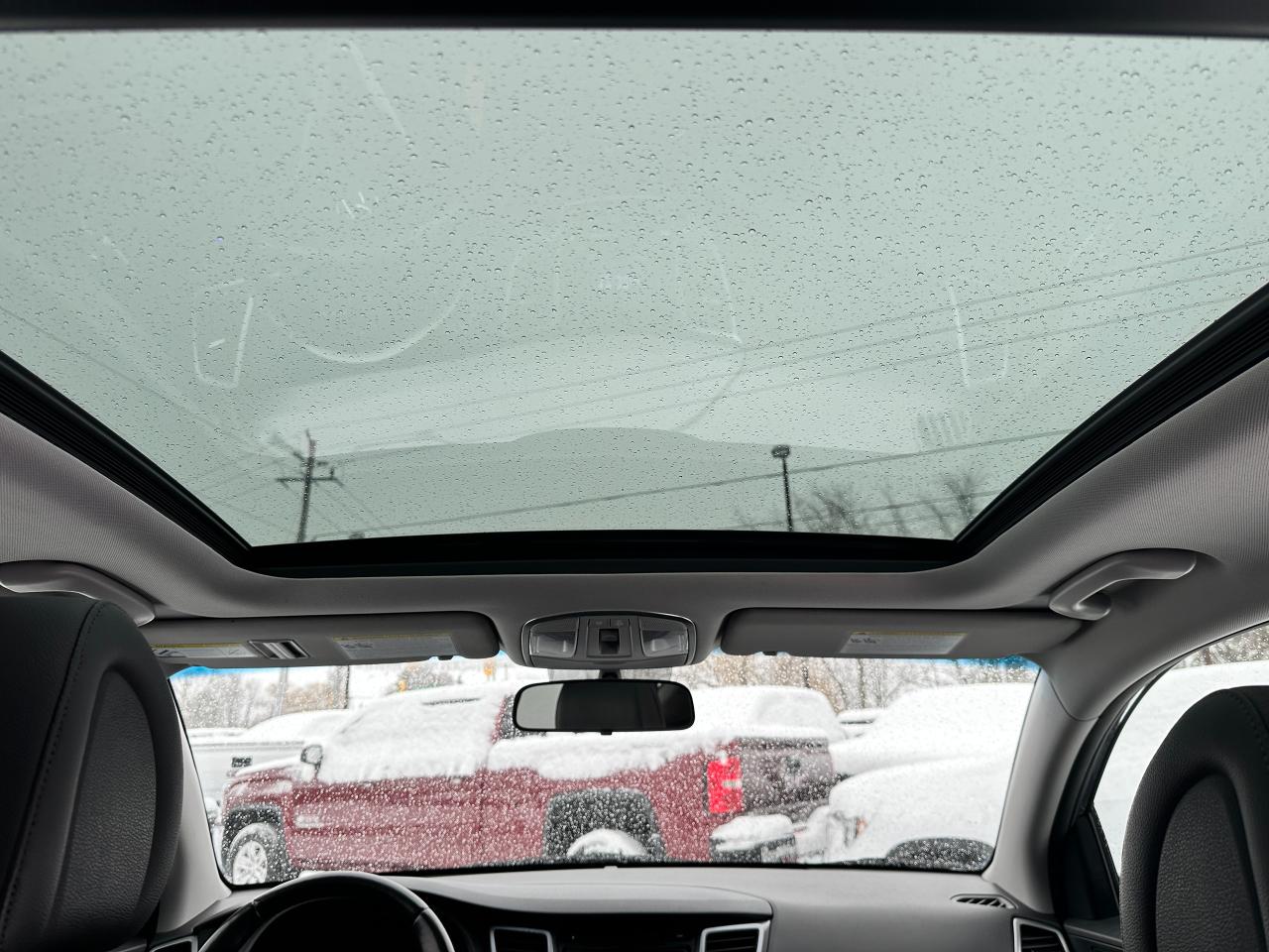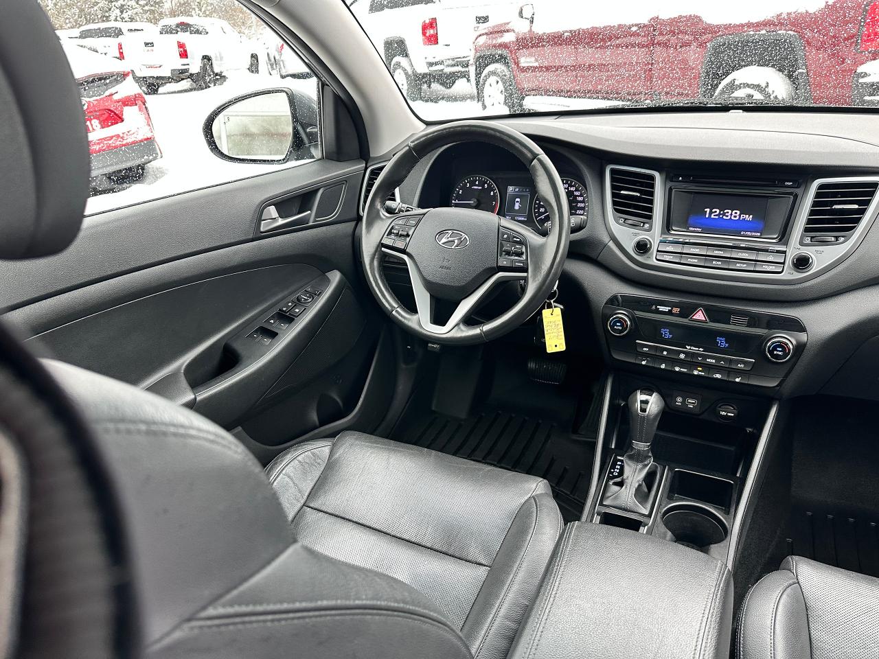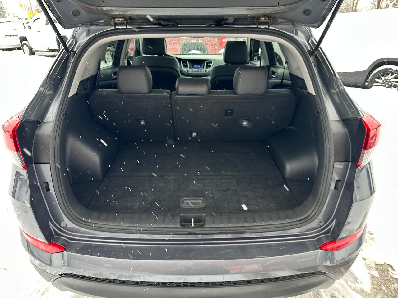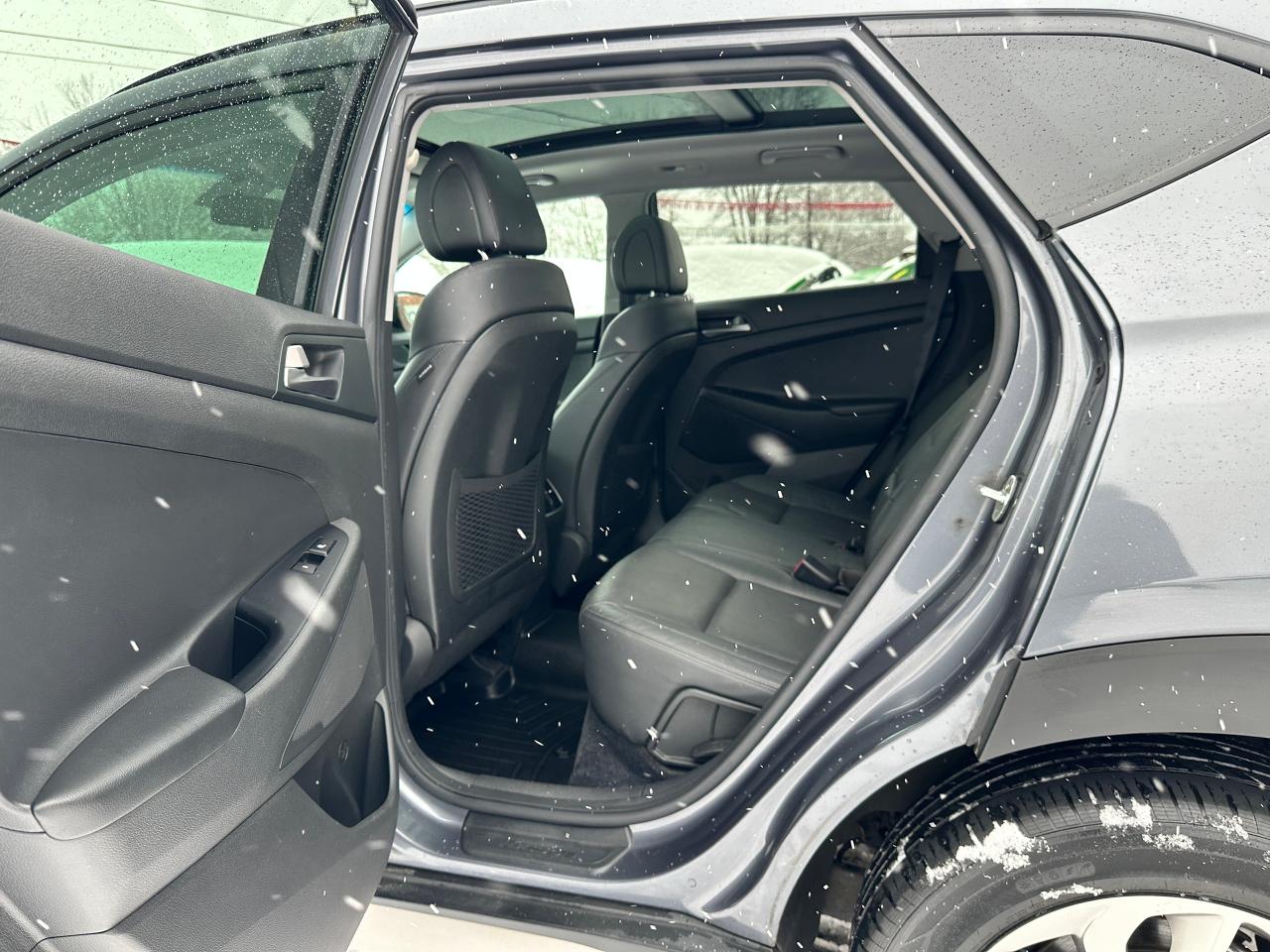 Super-Clean Hyundai Tucson from Pembroke, ON! This SE 2.0L FWD model looks great in its Grey paint and factory alloy wheels, with nice options inside and out! The exterior features keyless entry and remote start, colour-matched side mirrors with integrated turn signals, a HUGE Panoramic Sunroof, automatic headlights, foglights, tinted privacy glass, roof rack rails, a sleek rear spoiler, gorgeous factory Alloy wheels, blind spot monitors, and a peppy fuel-efficient 2.0L 4-cylinder Engine powering its Automatic transmission and Front Wheel Drive system! The interior is clean and comfortable with heated leather seats, front and rear, power adjustable drivers seating with lumbar control, power door locks, windows and mirrors, a heated leather wrapped steering wheel with Audio and Cruise controls, an easy to read and use gauge cluster, central AM/FM/XM Satellite Radio with Bluetooth, Backup Camera and CD player, Dual-Zone A/C climat ecintrols with front and rear window defrost settings, mutiple drive modes, including Sport/ECO driving, hill descent assist, USB/AUX/12V accessory ports and more!