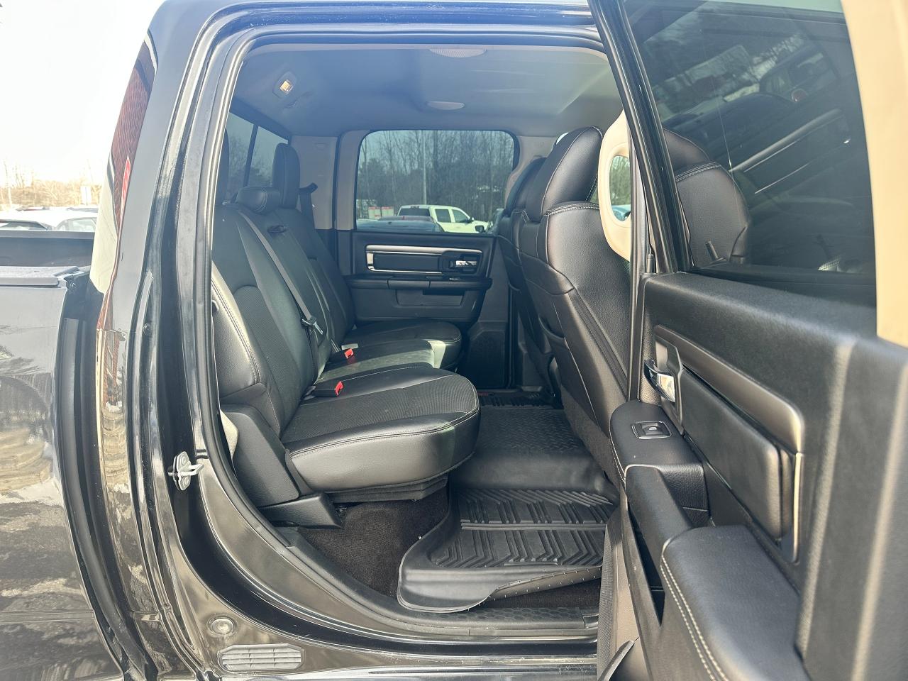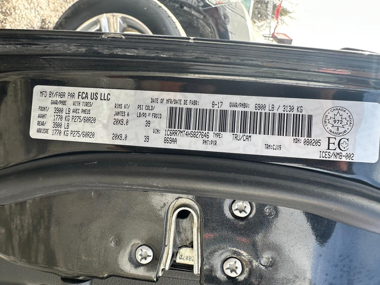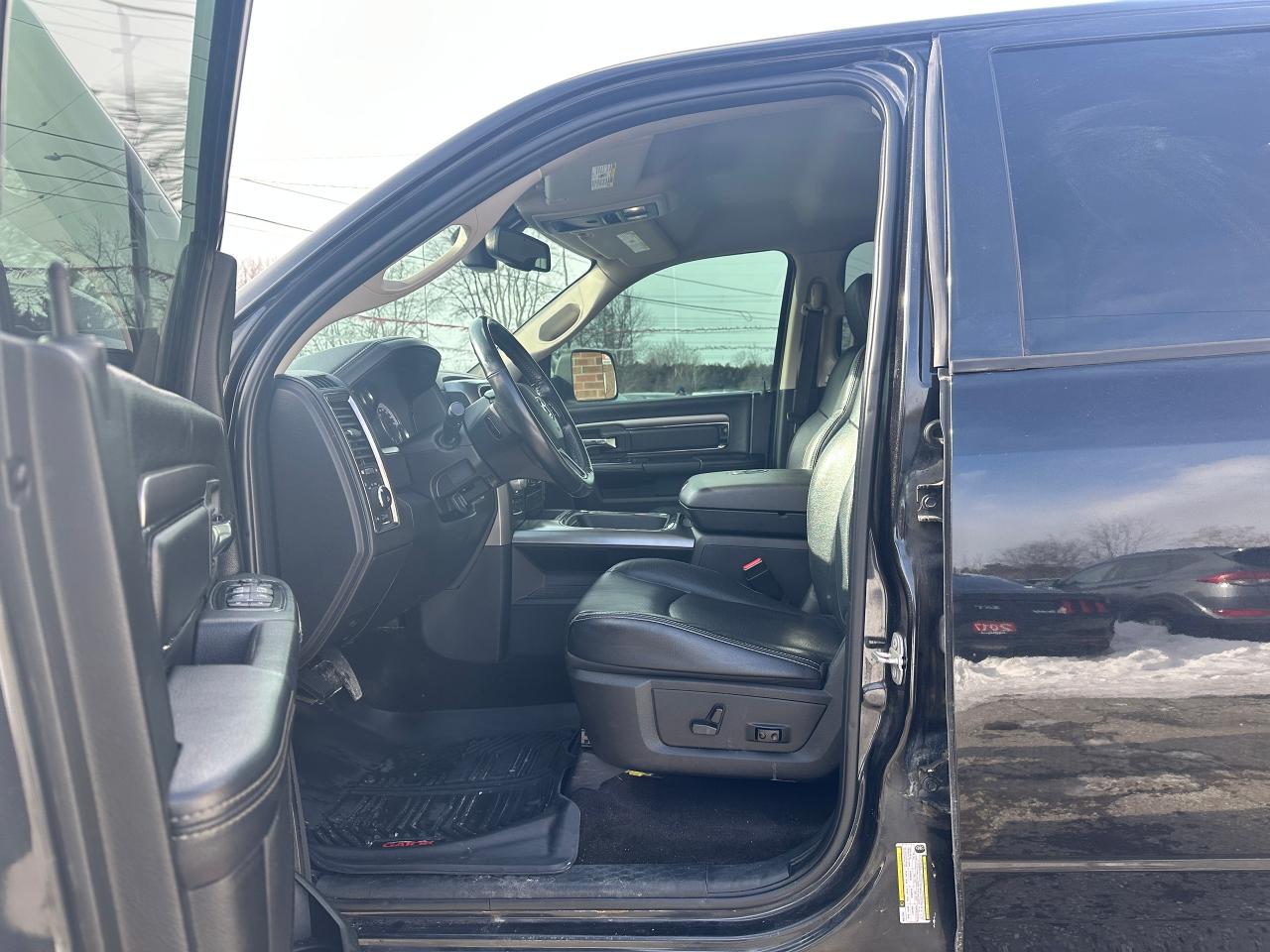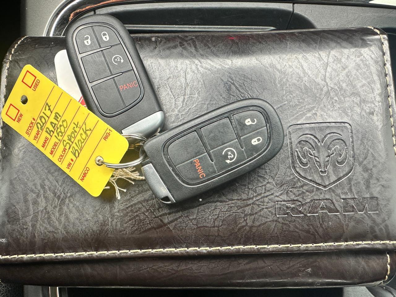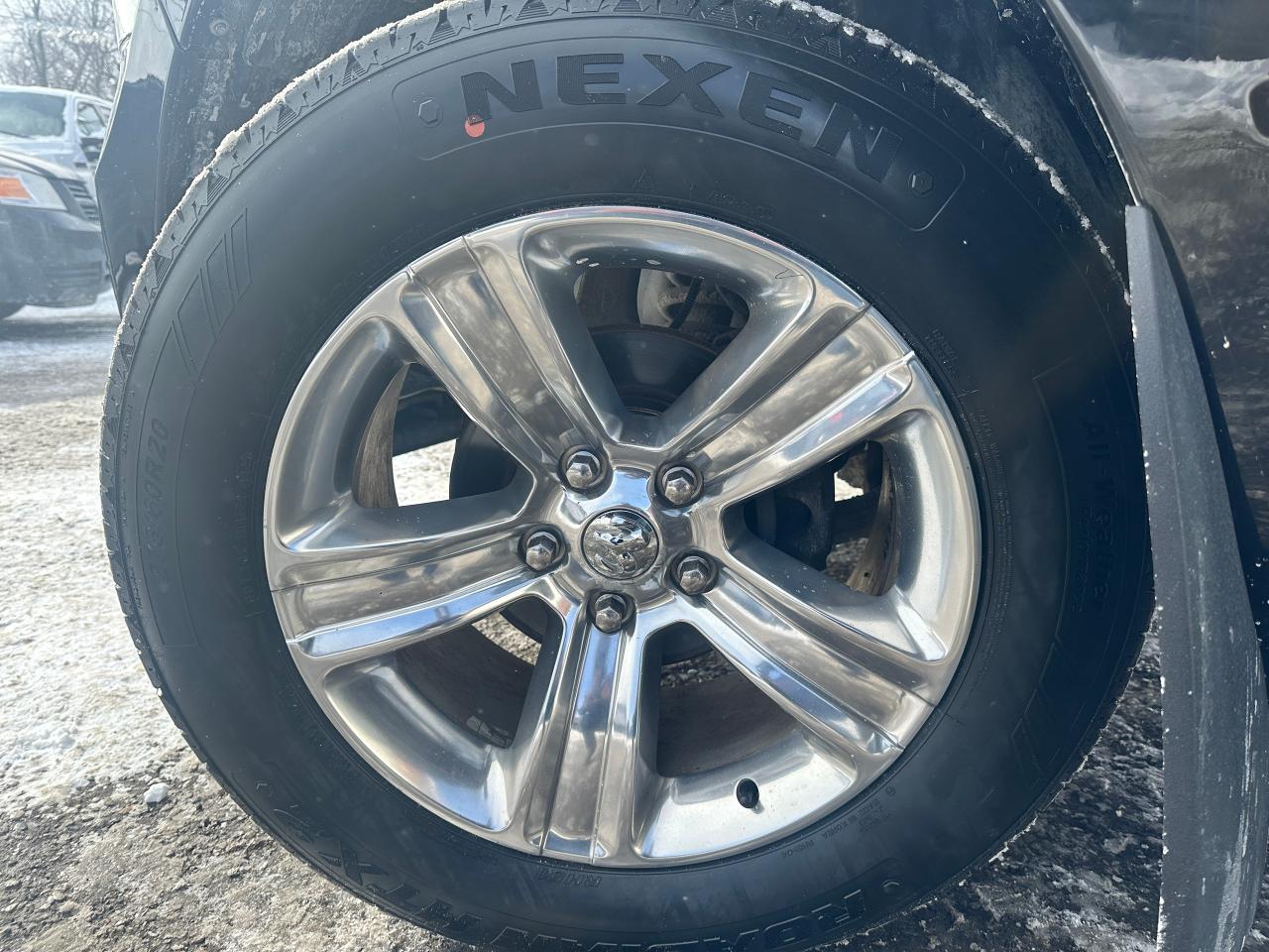 Super-Clean and well-optioned local trade-in RAM 1500 from Bowmanville, ON! This RAM 4x4 Sport model looks sharp in its Black paint and factory alloy wheels! The exterior features keyless entry with remote start and proximity key, automatic headlights, foglights, black tow-style mirrors with integrated turn signals, tinted privacy glass, sporty dual rear exhaust, a trailer hitch, spray-in bedliner, gorgeous factory polished alloy wheels and NEW All-Season tires, a powerful 5.7L V8 Engine and Automatic transmission driving the 4x4 system! The interior is clean and comfortable with Heated and Cooled front Leather Seats with power adjustment and lumbar controls, spacious rear seating, all-weather floor mats, power door locks, windows and mirrors, a heated leather-wrapped steering wheel with Audio and Cruise controls, push-button start and electronic 4x4 selection buttons, an easy-to-read and use gauge cluster, a large central touch screen AM/FM/XM Satellite Radio with Premium ALPINE Audio, Navigation, Bluetooth, and Backup Camera, Dual-Zone A/C climate controls with font andrear window defrost settings, Tow/Haul mode, USB/AUX/12V accessory ports and more!