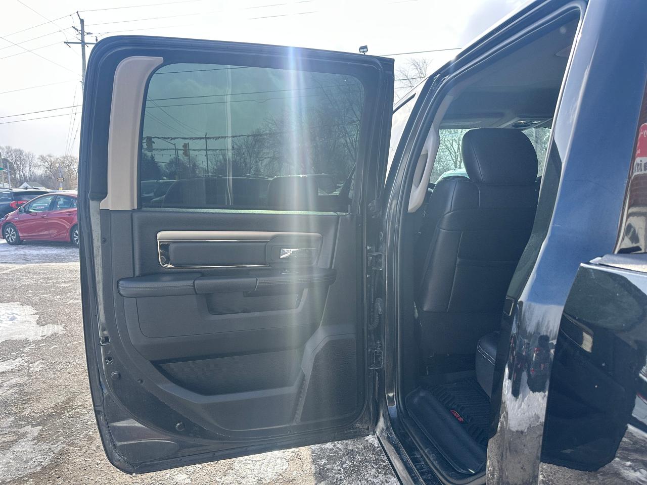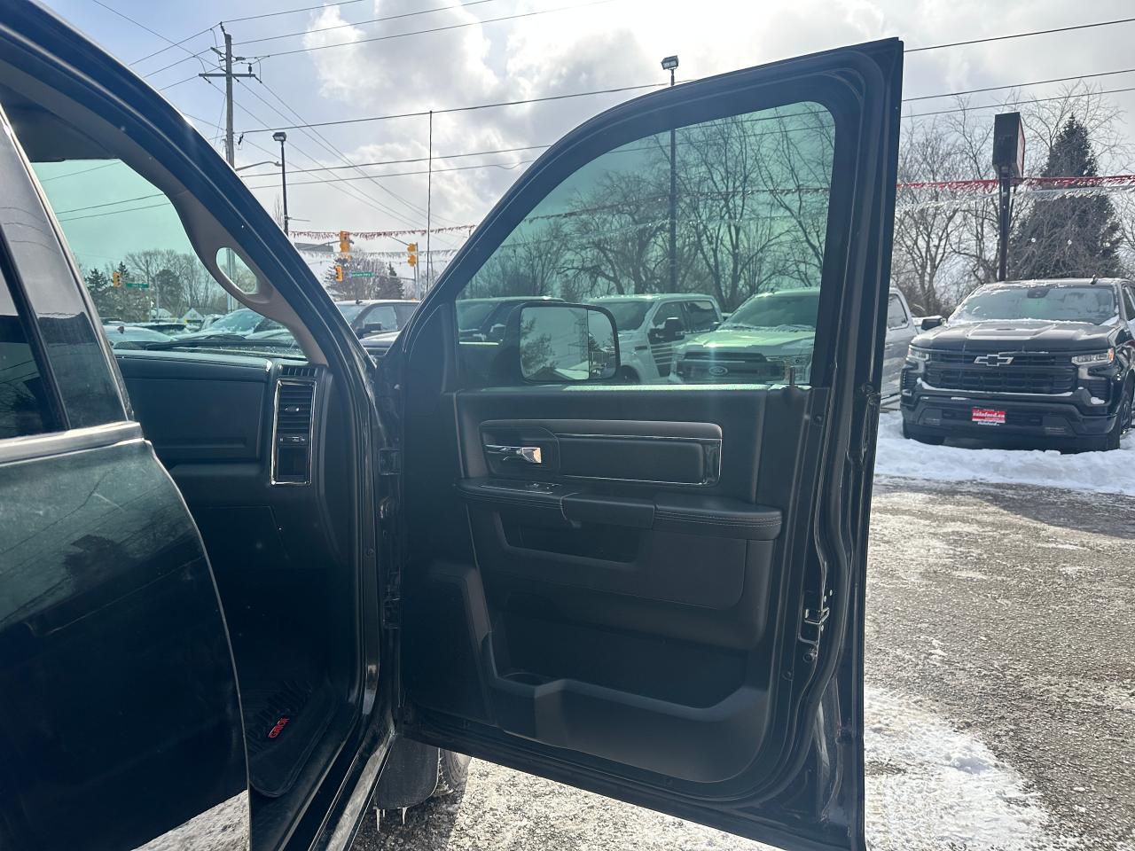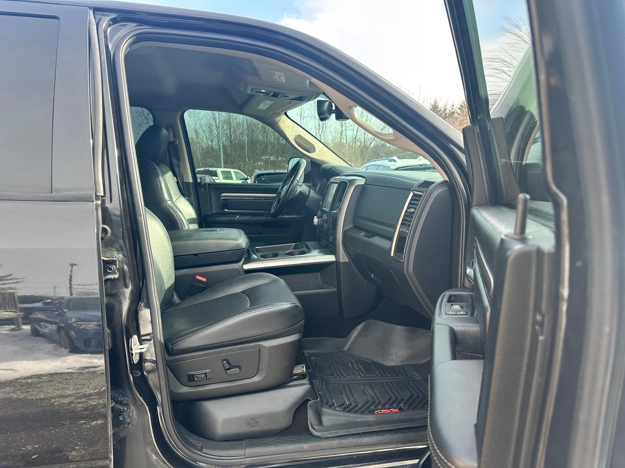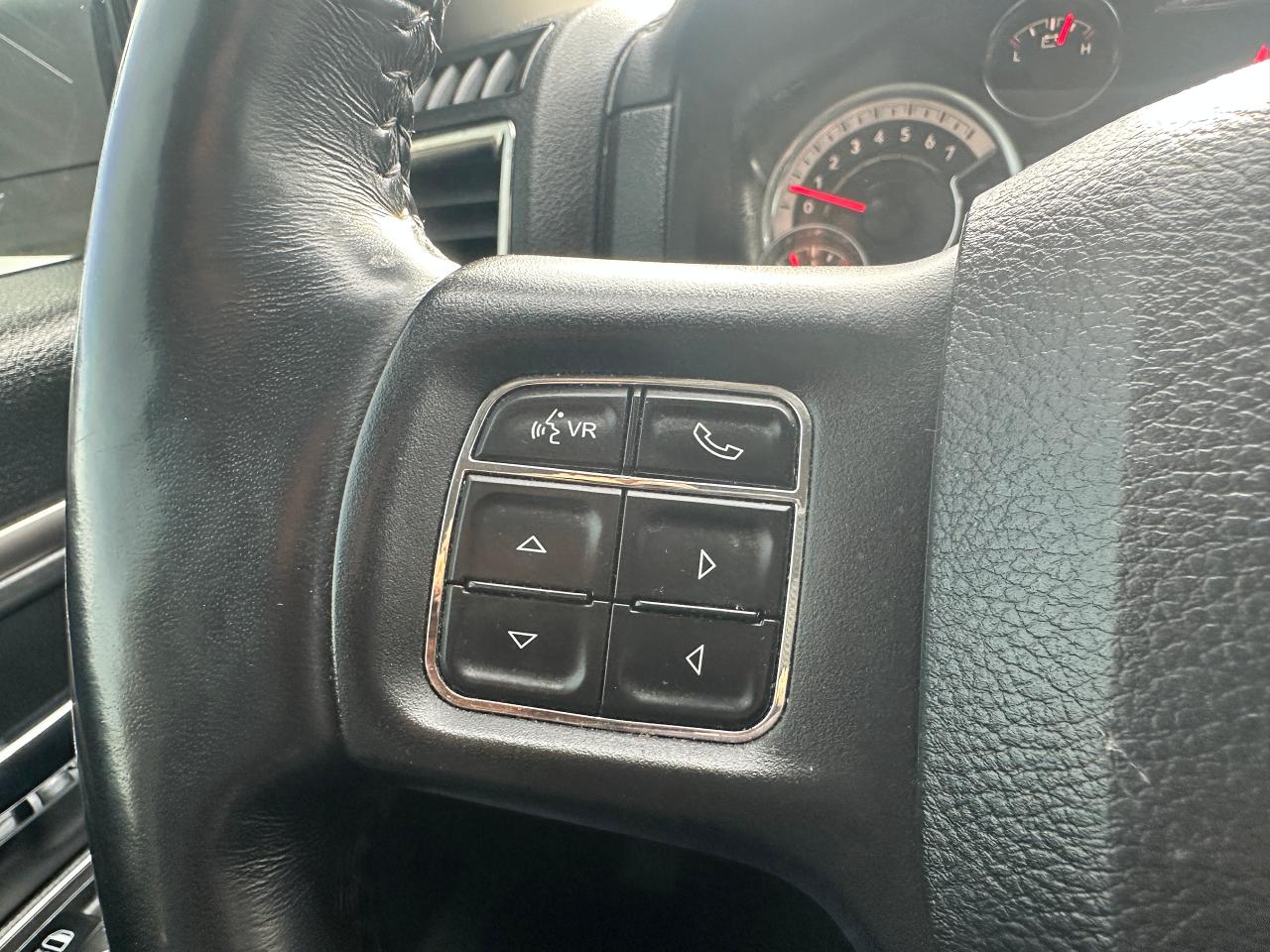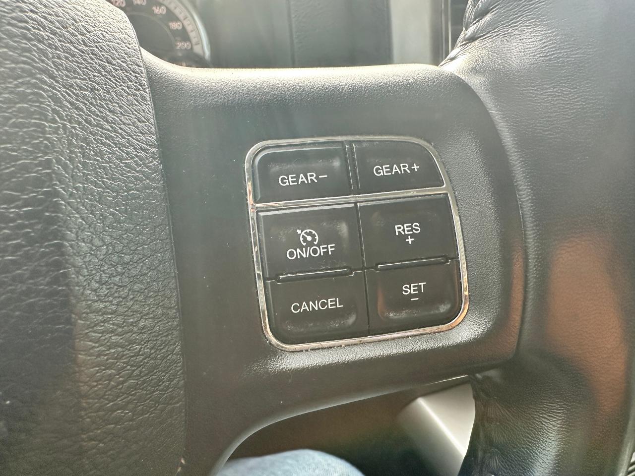 Super-Clean and well-optioned local trade-in RAM 1500 from Bowmanville, ON! This RAM 4x4 Sport model looks sharp in its Black paint and factory alloy wheels! The exterior features keyless entry with remote start and proximity key, automatic headlights, foglights, black tow-style mirrors with integrated turn signals, tinted privacy glass, sporty dual rear exhaust, a trailer hitch, spray-in bedliner, gorgeous factory polished alloy wheels and NEW All-Season tires, a powerful 5.7L V8 Engine and Automatic transmission driving the 4x4 system! The interior is clean and comfortable with Heated and Cooled front Leather Seats with power adjustment and lumbar controls, spacious rear seating, all-weather floor mats, power door locks, windows and mirrors, a heated leather-wrapped steering wheel with Audio and Cruise controls, push-button start and electronic 4x4 selection buttons, an easy-to-read and use gauge cluster, a large central touch screen AM/FM/XM Satellite Radio with Premium ALPINE Audio, Navigation, Bluetooth, and Backup Camera, Dual-Zone A/C climate controls with font andrear window defrost settings, Tow/Haul mode, USB/AUX/12V accessory ports and more!