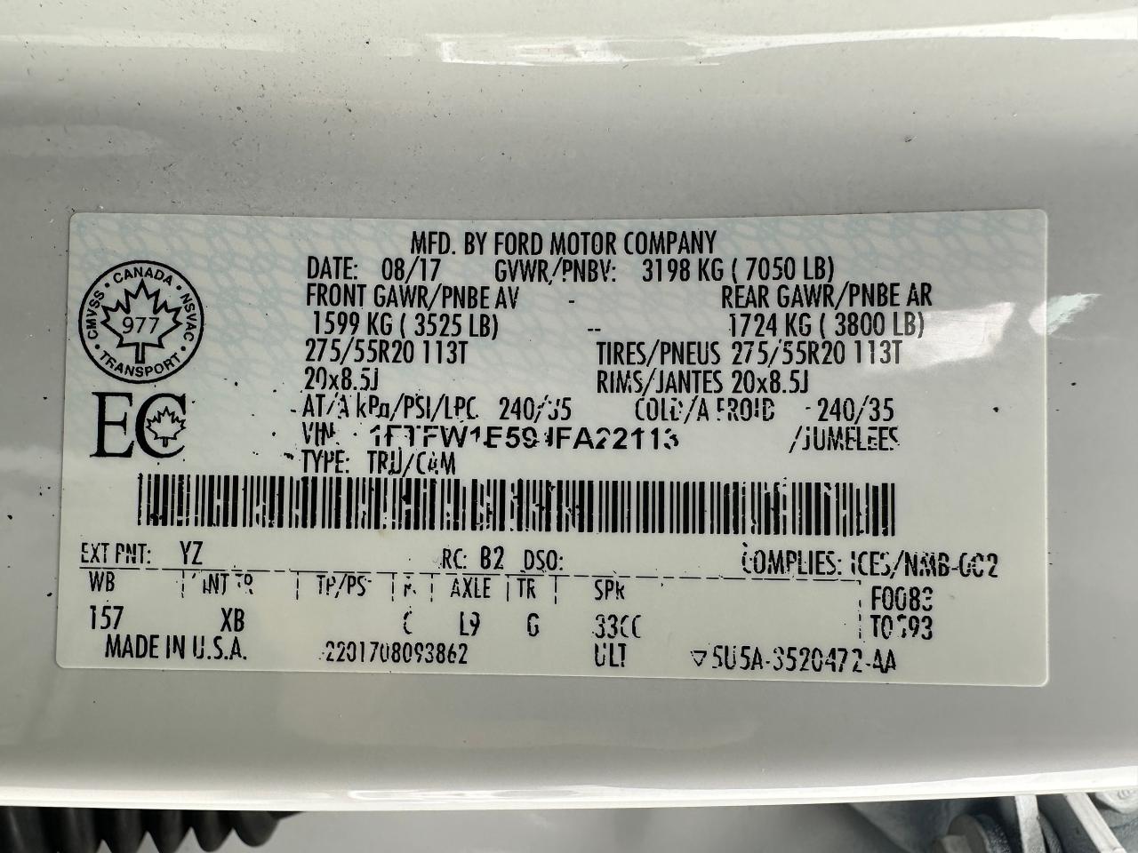 - VIN: 1FTFW1E59JFA22113