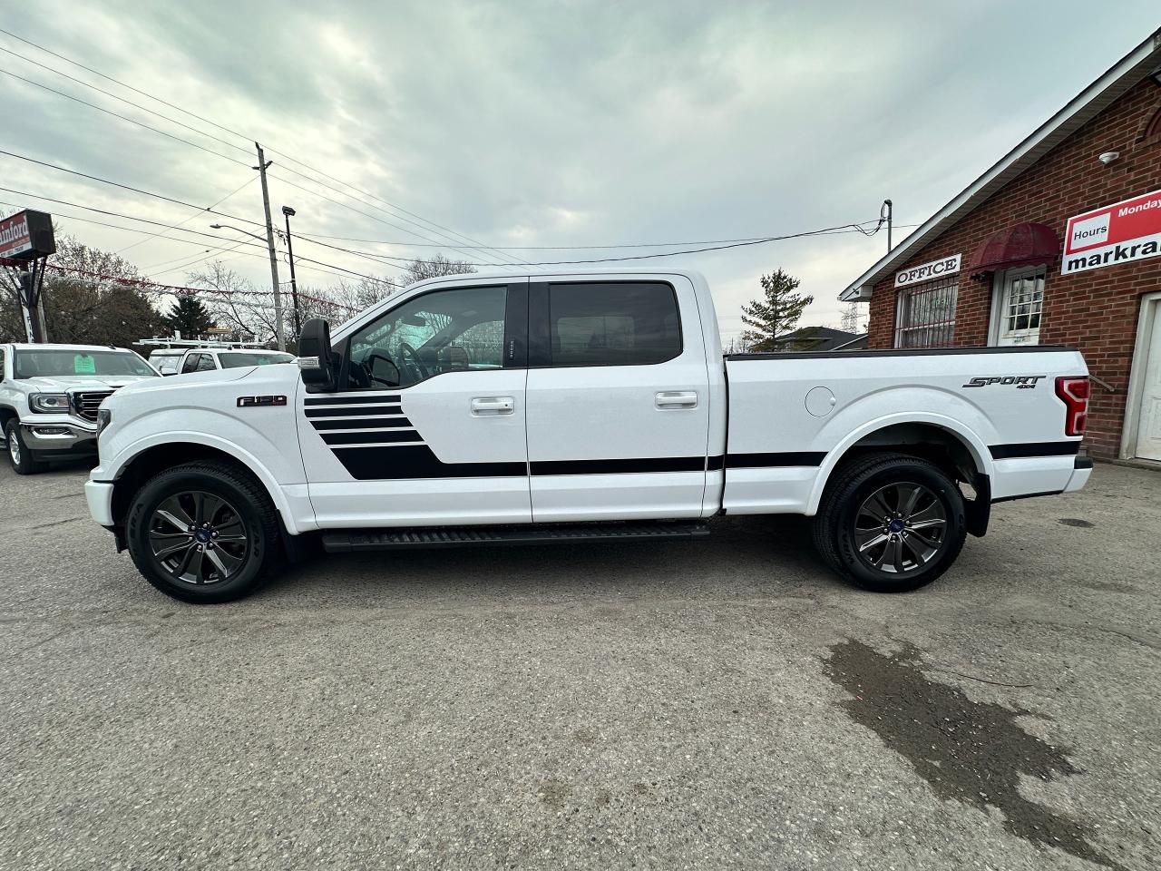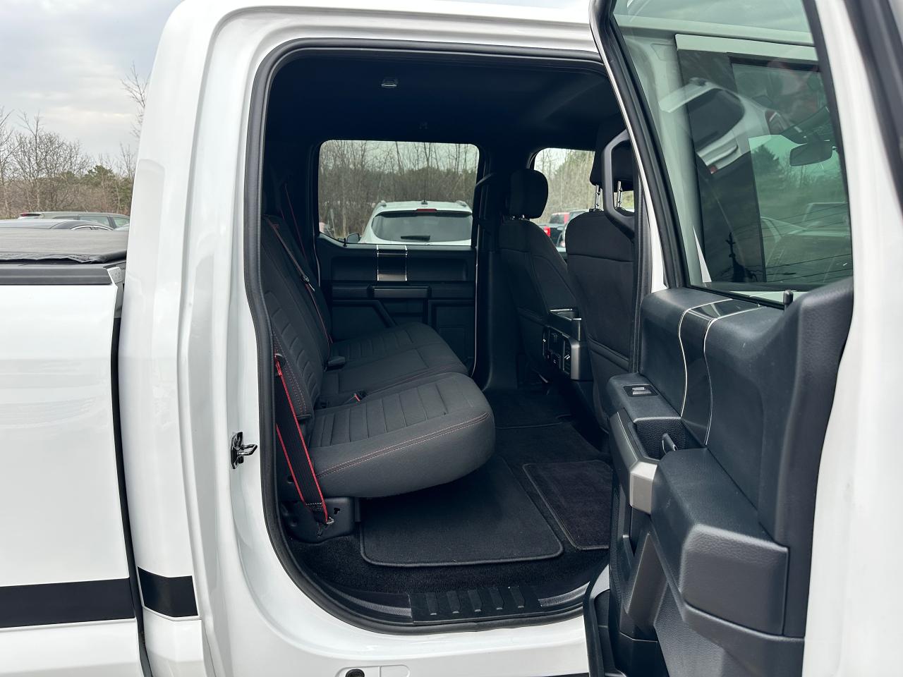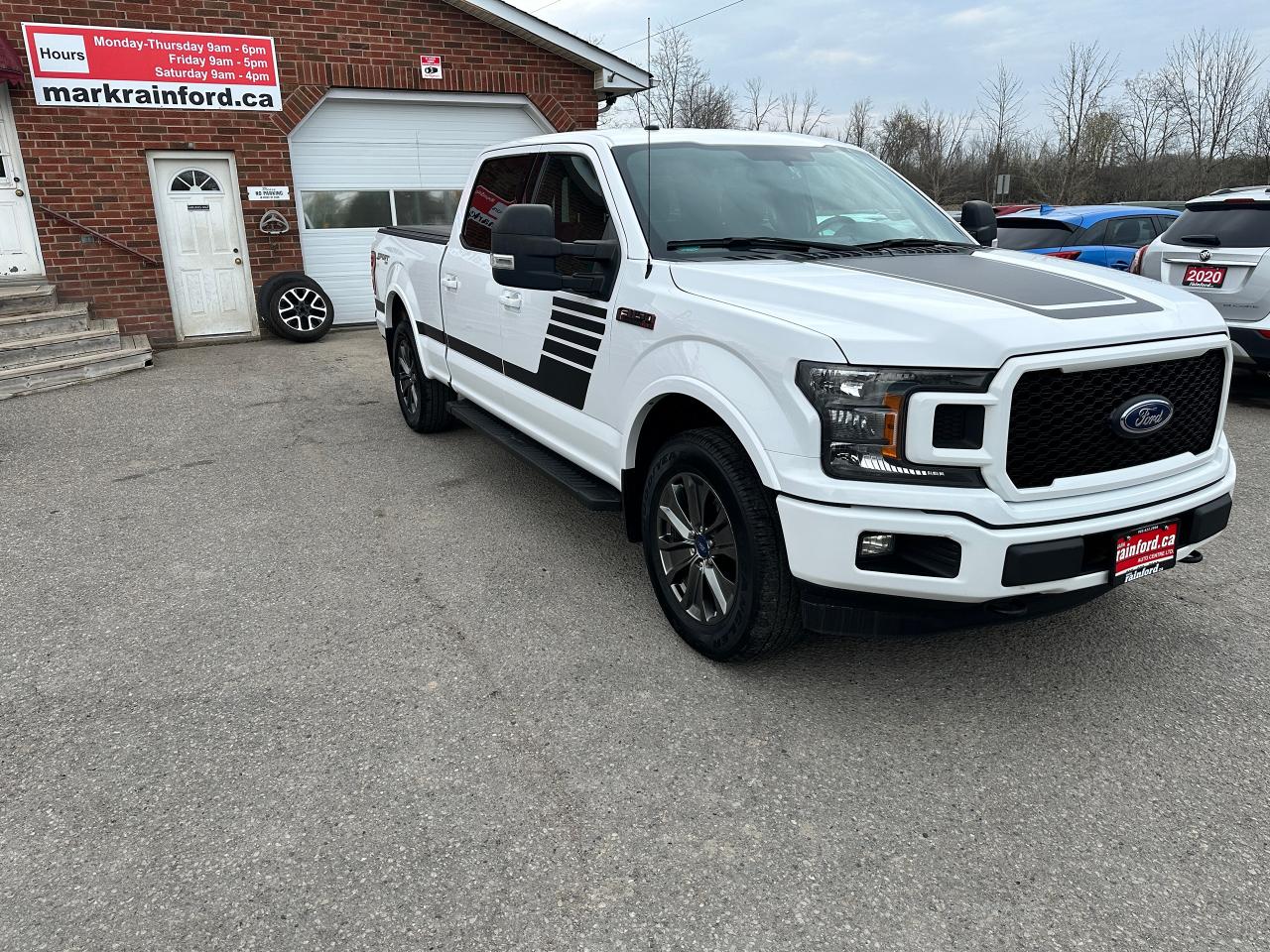 Super-Clean Ford F-150 from Kingston, ON! This XLT Sport Crew Cab model looks great in its White paint and factory alloy wheels, with great options inside and out! The exterior features keyless entry with remote start, keycode entry, automatic headlights, fog lights, front tow hooks, a trailer hitch, colour-matched bumpers, black step sides, tow-style mirrors with integrated turn signals, tinted privacy glass, spray-in Ford bedliner, tonneau cover, tailgate step assist, gorgeous dark gloss Factory Alloy wheels, sliding rear glass, a powerful 5.0L V8 Engine and Automatic transmission diving the 4x4 system! The interior is clean and comfortable with cloth seating for 5 occupants, power adjustable driver's seat with lumbar controls, Sport Red accents and stitching, a spacious and comfortable rear seating area, power door locks, mirrors and windows, power adjustable driver's pedals, a leather wrapped steering wheel with audio and cruise controls, an easy to read and use gauge cluster with Sport display, electronic 4x4 selection, trailer backup and integrated electronic trailer brake controller, central AM/FM/XM Satellite Radio with Bluetooth, Microsoft SYNC, Backup Camera and CD Player, A/C climate control with front and rear window defrost settings, USB/12V accessory ports, and more!