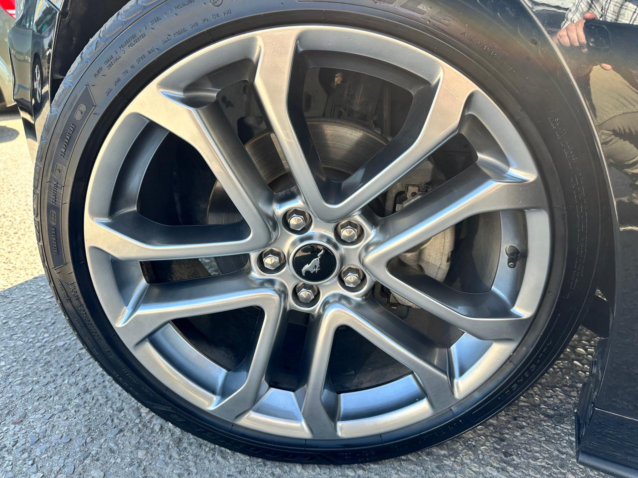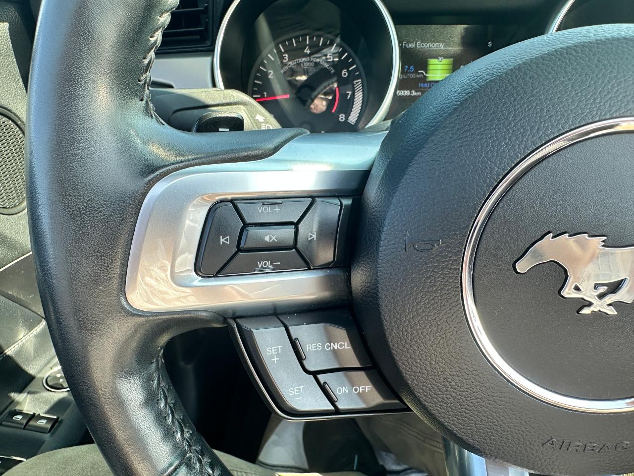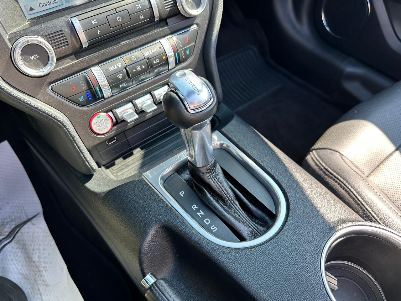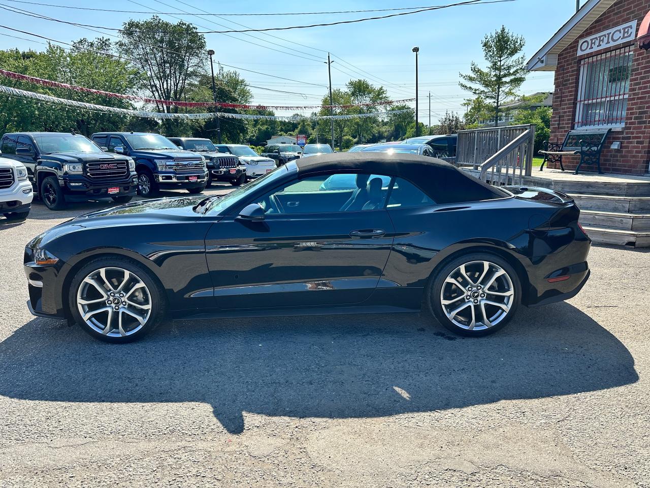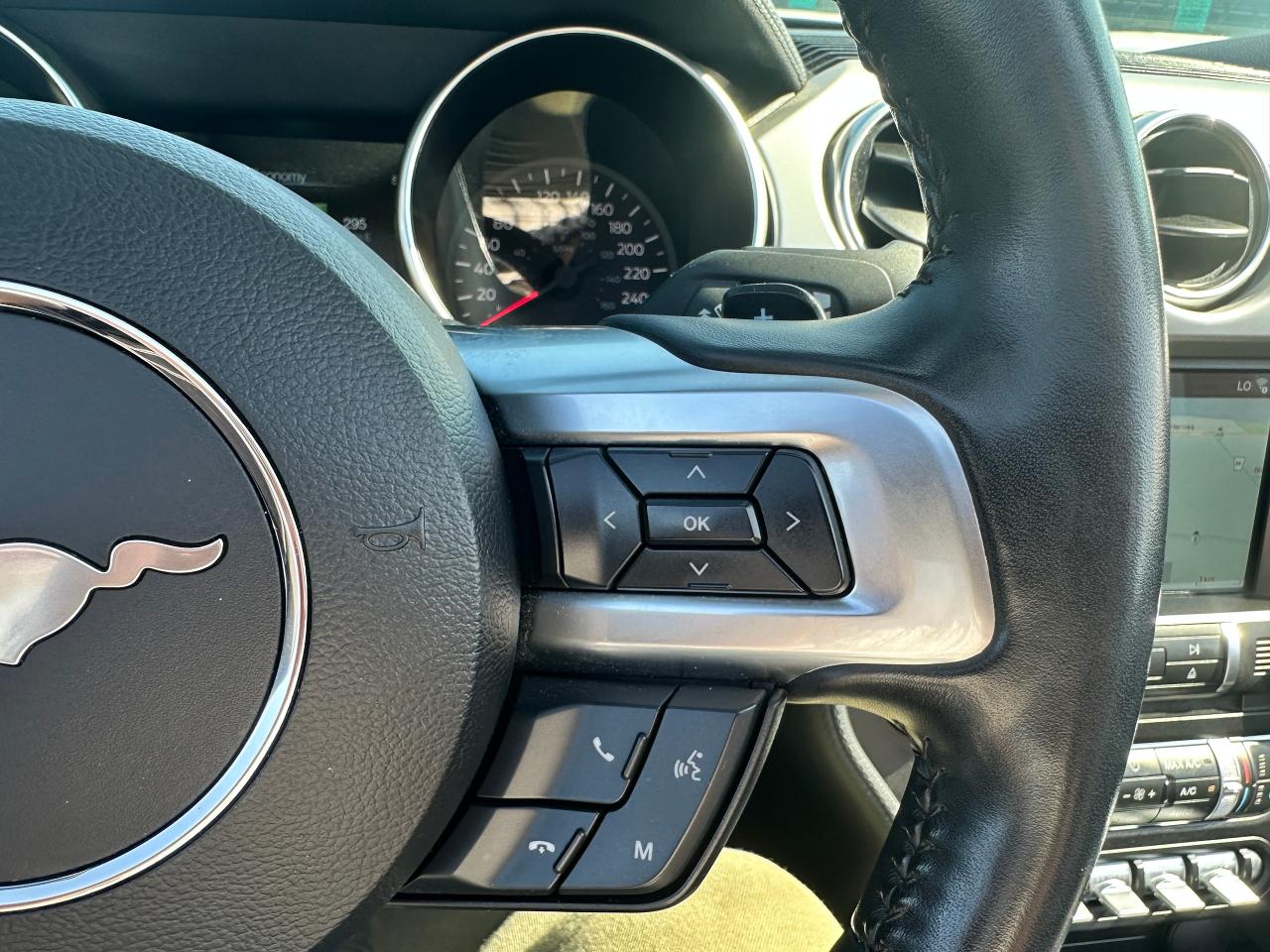 Super-Clean LOW LOW KM Ford Mustang from Lindsay, ON! This EcoBoost Premium Convertible model is absolutely stunning in its Black paint and sharp factory alloy wheels, with fantastic options inside and out! The exterior features keyless entry with remote start and proximity keys, automatic headlights, foglights, colour-matched side mirrors with integrated turn signals, a sporty dual exhaust, a sleek slim decklid spoiler, parking sensors, fabric convertible top in excellent shape, a set of gorgeous factory split spoke alloy wheels, a powerful and fuel-efficient 2.3L 4-cylinder Turbocharged engine and Automatic transmission drive this convertible through the corners! The interior is spotless and comfortable with heated and cooled front leather seats with power adjustment and driver's lumbar controls, power door locks, windows and mirrors, split rear seating, a leather wrapped steering wheel with Audio and Cruise controls, an easy to read and use gauge cluster, a large central touch screen AM/FM/XM Satellite Radio with Bluetooth, Navigation, Apple CarPlay, WiFi Settings, CD Player and Backup Camera, Dual-Zone A/C climate control with front and rear window defrost settings, multiple Drive and Steering modes from Comfort and Track to Snow settings, push-button start, USB/12V accessory ports, Universal Garage door opener, and more!
