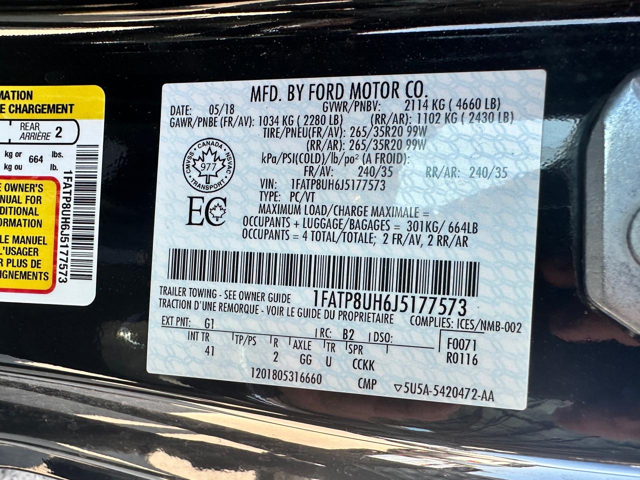 - VIN: 1FATP8UH6J5177573