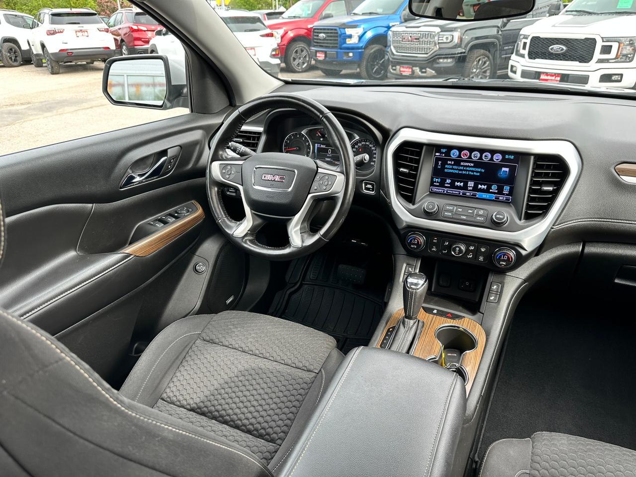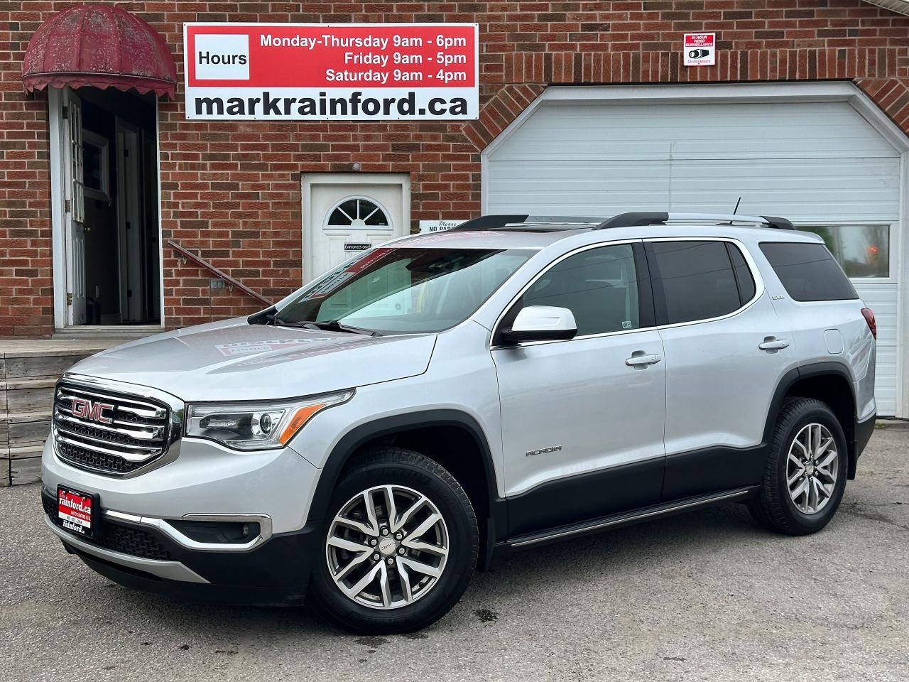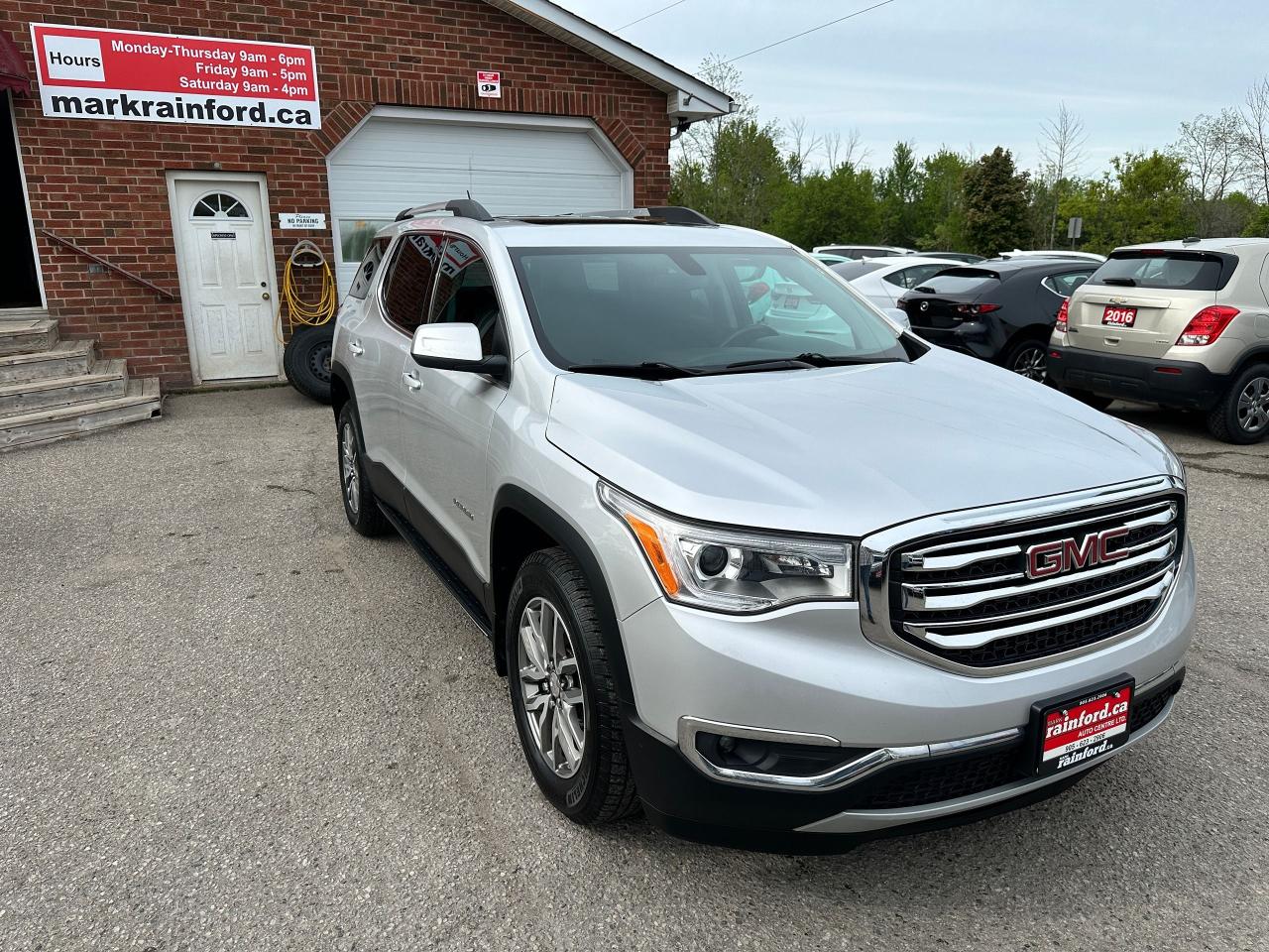 Super-Clean GMC Acadia from Ottawa, ON! This SLE AWD model looks great in its Silver paint and factory alloy wheels, with nice options inside and out! The exterior features keyless entry, with remote start and proximity keys, remote power rear lift gate, automatic headlights, foglights, a large power front sunroof, rear moonroof, colour matched side mirrors, roof rack rails, tinted rear privacy glass, a sporty dual exhaust, gorgeous factory alloy wheels, a powerful 3.6L V6 Engine and Automatic transmission powering the All-Wheel-Drive System! The interior is clean and comfortable with seating for 7, heated cloth front seating with driver's power adjustment, power door locks, windows and mirrors, comfortable and spacious rear rows with rear A/C controls, a leather wrapped steering wheel with audio and cruise controls, an easy to read and use gauge cluster, push button start, a large central touch screen AM/FM/XM Satellite Radio with Bluetooth, Apple CarPlay, Android Auto, OnStar Routing, WiFi Settings and Backup Camera, Dual-Zone A/C climate controls with front and rear window defrost settings, AWD control knob with terrain options, universal garage door opener, USB/AUX/12V accesory ports and more!