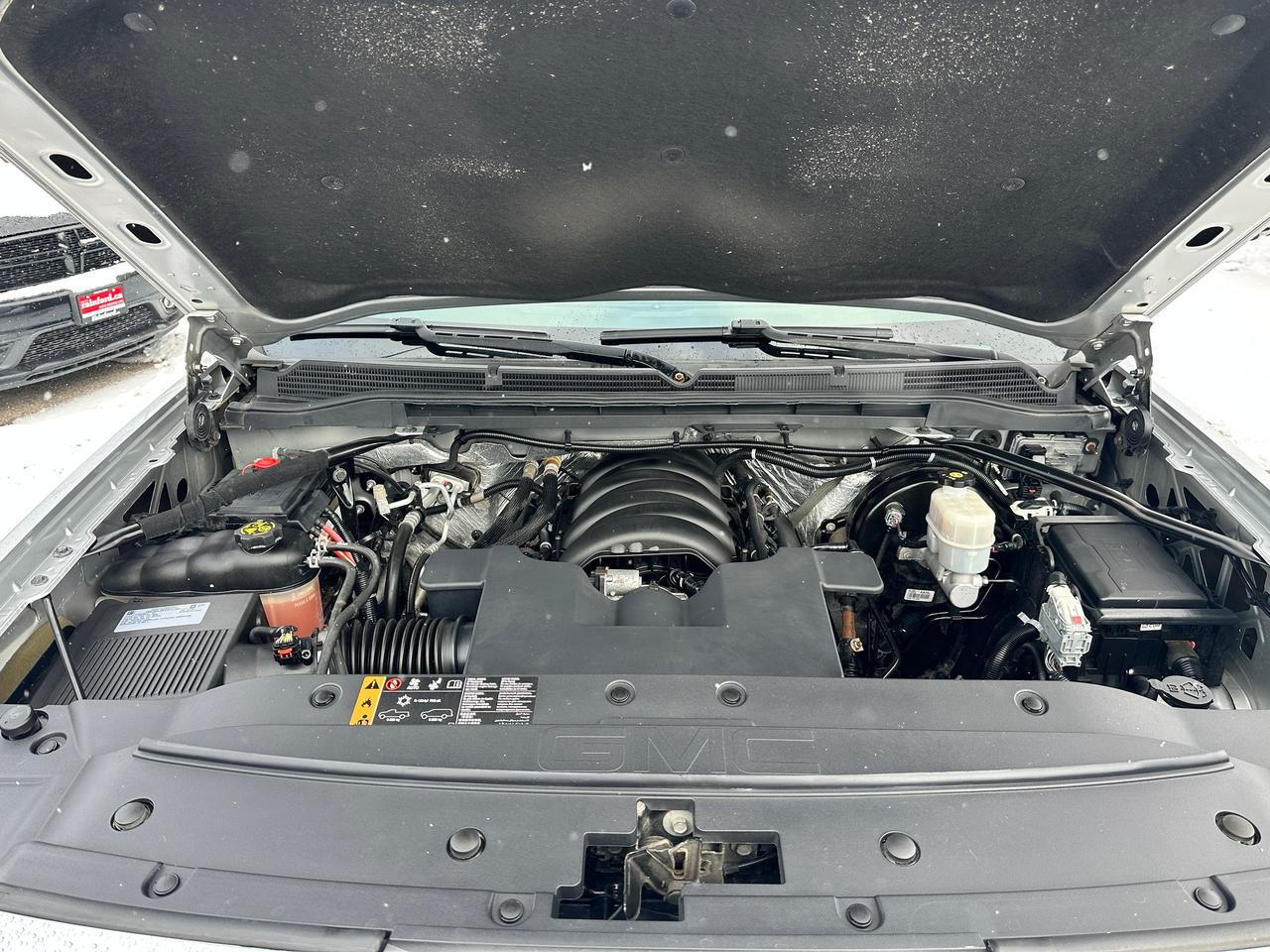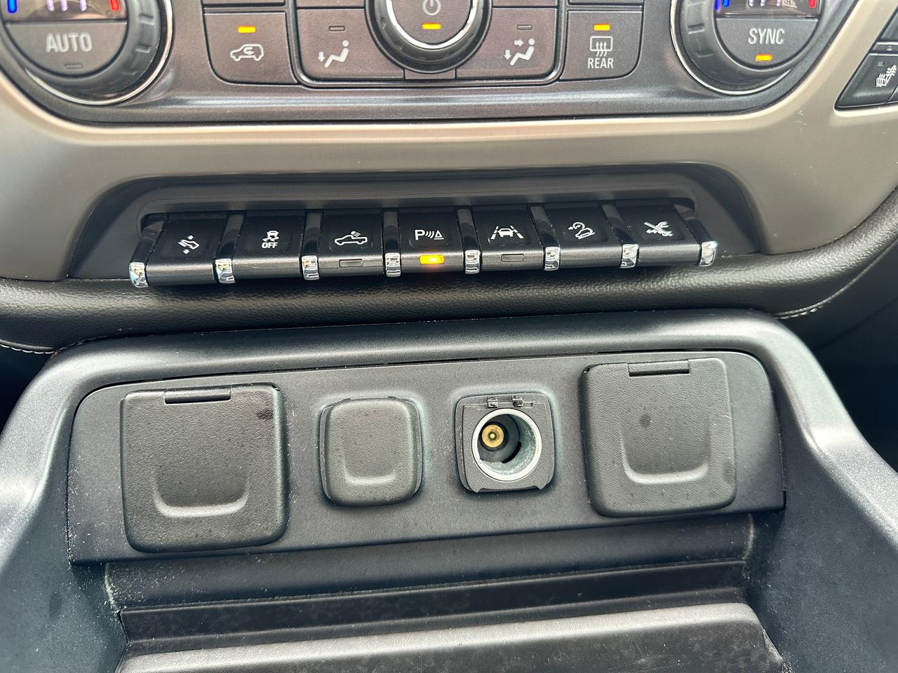 WOW! Super-Clean and loaded up GMC Sierra 1500 Denali from Kingston, ON! This Crew Cab 4x4 model looks stunning in its Silver/Grey paint and Black factory alloy wheels, with nice options inside and out! The exterior features keyless entry with remote start, a large factory power sunroof, automatic headlights, foglights, front tow hooks, a trailer hitch, colour-matched bumpers with rear bumper steps, power running boards, front and rear parking sensors, a spray-in Denali bedliner, GMC tonneau cover, power sliding rear glass, tinted privacy glass, forward collision and lane departure warnings, colour-matched power folding side mirrors, gorgeous Black factory alloy wheels, a powerful 6.2L V8 Engine and Automatic transmission powering the 4x4 system! The interior is clean and comfortable with heated and cooled front leather seats with power adjustment and lumbar controls, drivers memory seating, power door locks, mirrors, windows and adjustable power pedals, electronic 4x4 selection knob and integrated electronic trailer brake controller, a heated leather wrapped steering wheel with Audio and Cruise controls, an easy-to-read and use gauge cluster, a large central touch screen AM/FM/XM Satellite HD Radio with Bluetooth, Apple CarPlay, Android Auto, Navigation, CD Player and Backup Camera, Dual-Zone A/C climate controls with front and rear window defrost settings, hill descent assist switch, USB/AUX/12V accessory ports, Universal garage door openers and more!