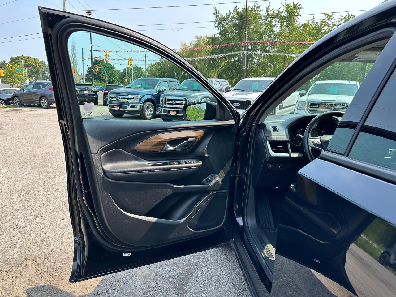 Calling All Commuters and Fuel Savers, SUPER-CLEAN LOW KM GMC Terrain from Belleville, ON! This SLE AWD Diesel model looks incredible in its Black paint and factory alloy wheels, with great options! The exterior features keyless entry with remote start and power remote liftgate, proximity keys, colour-matched side mirrors, tinted rear privacy glass, roof rack rails, automatic headlights, gorgeous split spoke factory alloy wheels, a fuel-efficient 1.6L 4-cylinder Turbo-Diesel Engine and Automatic transmission powering the All-Wheel-Drive system! The interior is clean and comfortable with heated cloth front seats with driver's power adjustment and lumbar control, power door locks, windows and mirrors, woodgrain interior trim, comfortable rear seating and a large cargo area, a leather wrapped steering wheel with Audio and Cruise controls, an easy to read and use gauge cluster, push button start, a large central touch screen AM/FM/XM Satellite Radio with Bluetooth, Navigation, Apple CarPlay, Android Auto, Backup Camera and MP3 capabilities, Dual-Zone A/C Climate control with front and rear window defrost settings, USB/AUX/USB-C/12V accessory ports, push button gear selection and more!