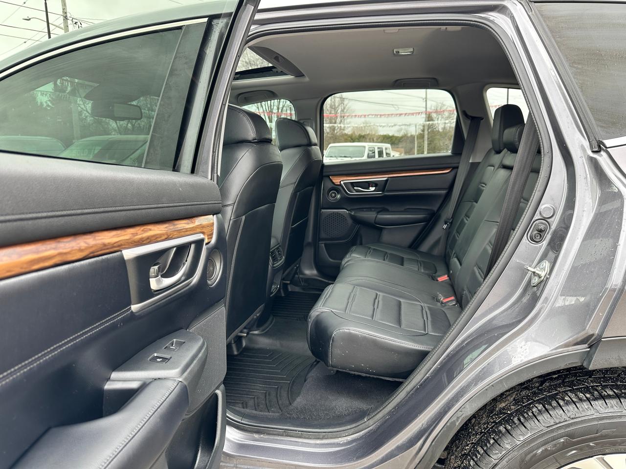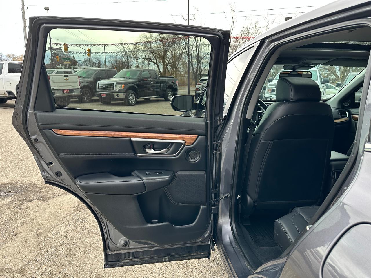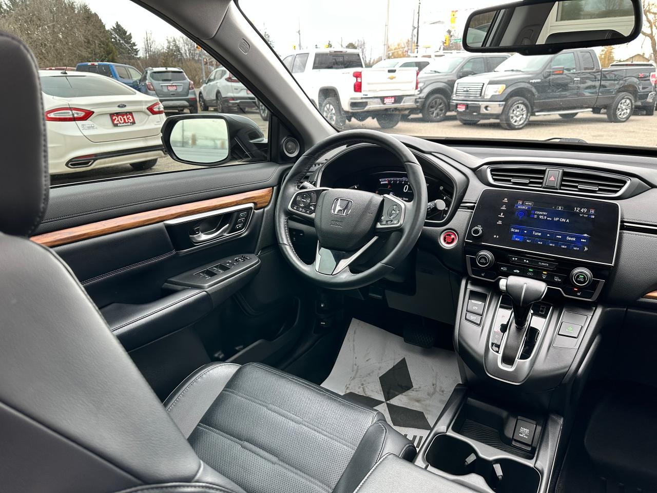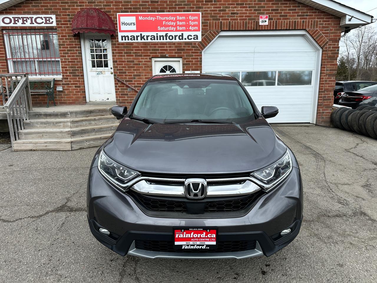 Super-clean, well-optioned, One-Owner Honda CR-V from Owen Sound, ON! This EX-L AWD model looks great in its Grey paint and factory alloy wheels with nice options inside and out! The exterior features keyless entry with remote start, proximity keys, remote power trunk, factory power sunroof, colour-matched side mirrors with integrated turn signals, automatic headlights, fog lights, heated wiper area, tinted privacy glass, lane-keeping assist, forward collision warning, a sleek rear spoiler, gorgeous factory alloy wheels, a peppy fuel efficient 1.5L 4-cylinder turbocharged Engine and Automatic transmission powering the All-Wheel-Drive System! The interior is clean and comfortable with Heated Leather seating both front and rear, power adjustable front seats with driver's lumbar and memory controls, power door locks, mirrors and windows, a heated leather wrapped steering wheel with Audio and Adaptive Cruise controls, an easy to read and use gauge cluster, push button start, large central touch screen AM/FM/XM Satellite Radio with Bluetooth, Smartphone Connection, Backup Camera and Blind Spot Camera, Dual-Zone A/C climate control, ECON driving mode for improved fuel economy, a spacious cargo area with retractable cargo cover, all weather floor mats, universal garage door openers, rear seat mirror USB/12V accessory ports and more!