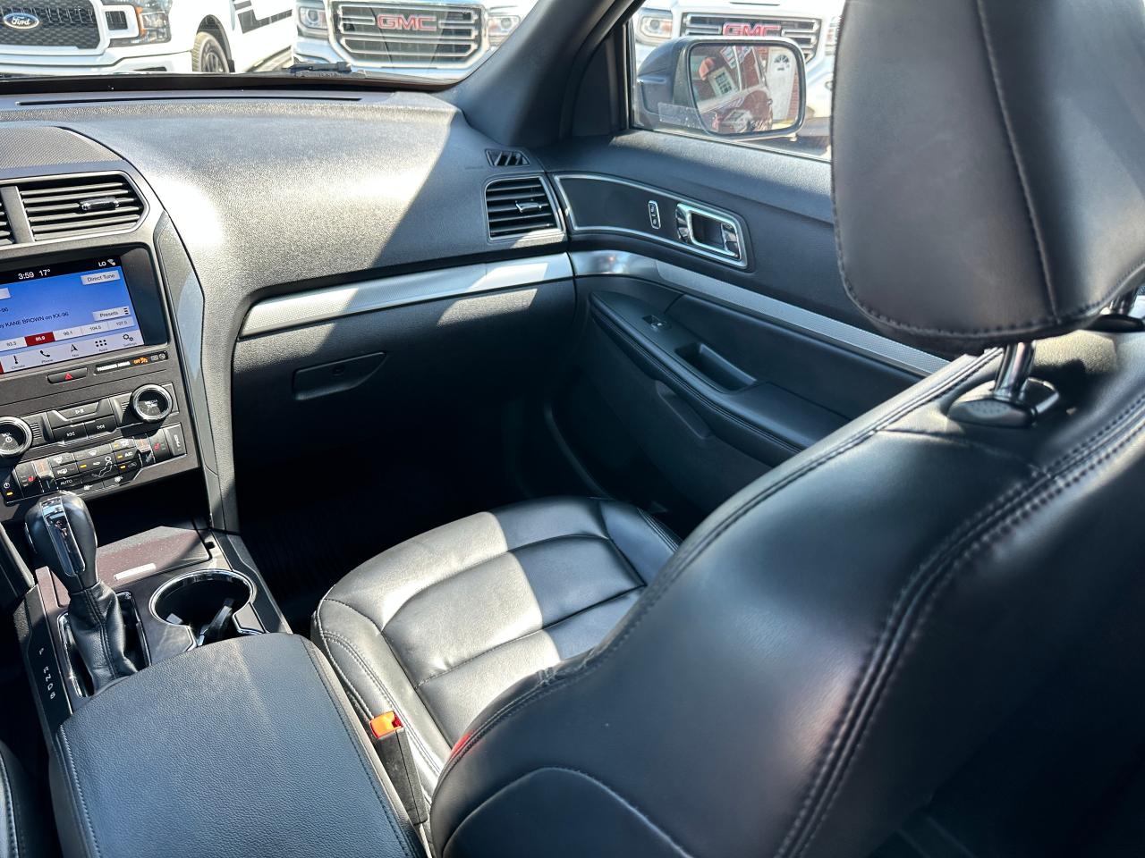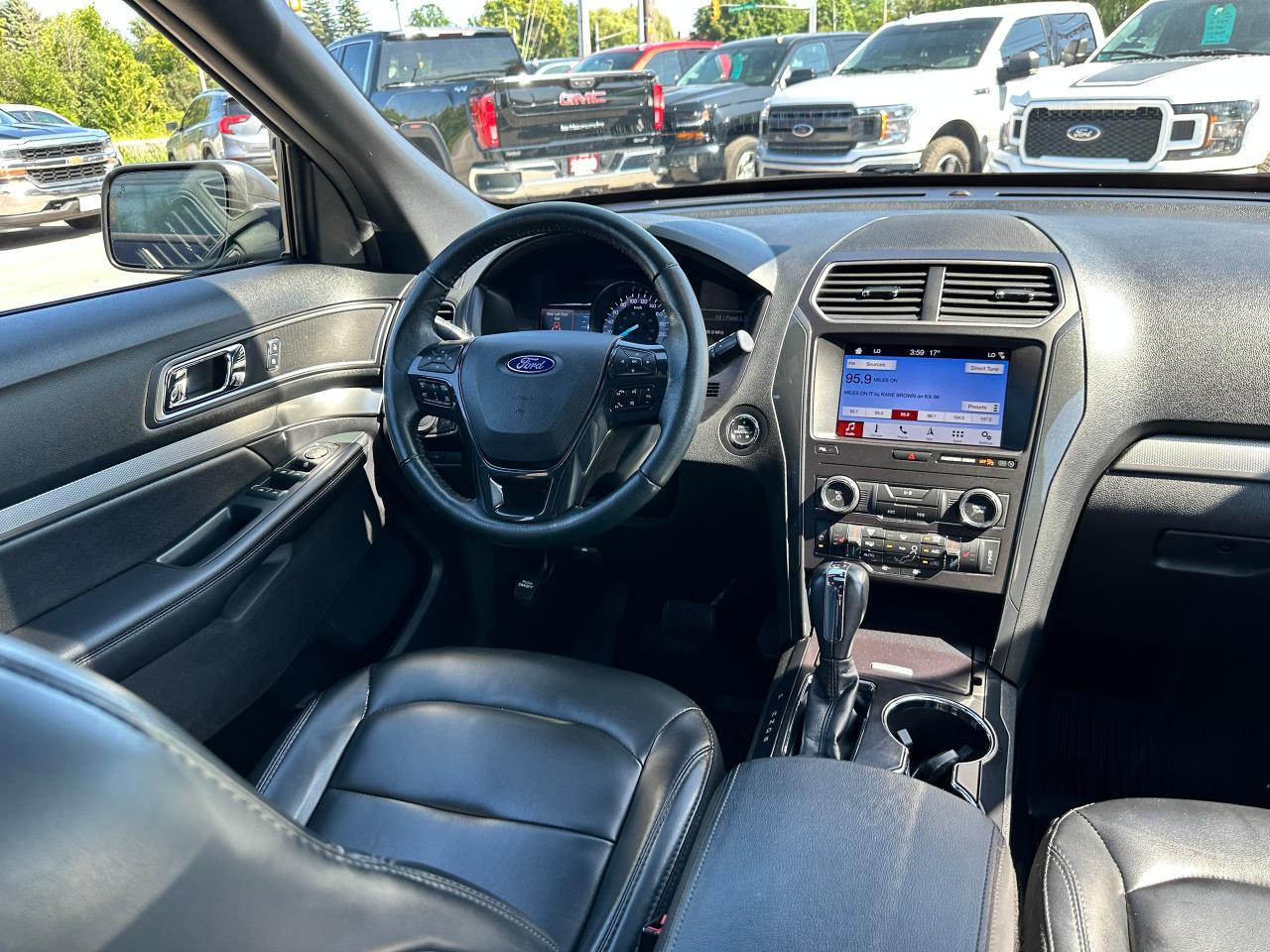 Super-Clean, well-maintained Ford Explorer from Lindsay, ON! This XLT 4WD model is very well equipped and looks incredible in its Black paint and factory alloy wheels! The exterior features keyless entry with remote start and proximity keys, keycode entry, automatic headlights, foglights, blind spot monitors, adaptive cruise/forward warning, integrated mirror turn signals, a HUGE power sunroof, a power rear liftgate, roof rack rails, tinted privacy glass, a sporty dual rear exhaust, a sleek rear spoiler, gorgeous factory alloy wheels, a peppy 2.3L 4-cylinder Turbocharged Engine and Automatic transmission power the 4WD system! The interior is clean and comfortable with power-adjustable heated leather front seats with driver's lumbar controls, fold-away third row seating, rear A/C controls, power door locks, windows and mirrors, steering wheel audio and cruise controls, an easy-to-read and use gauge cluster, push button start, a large central touch screen AM/FM/XM Satellite Radio with Bluetooth, Apple CarPlay, Navigation, WiFi Settings, and Backup Camera, Dual-Zone A/C climate controls with front and rear window defrost settings, terrain selection modes, hill descent assist, USB/12V accessory ports and more!