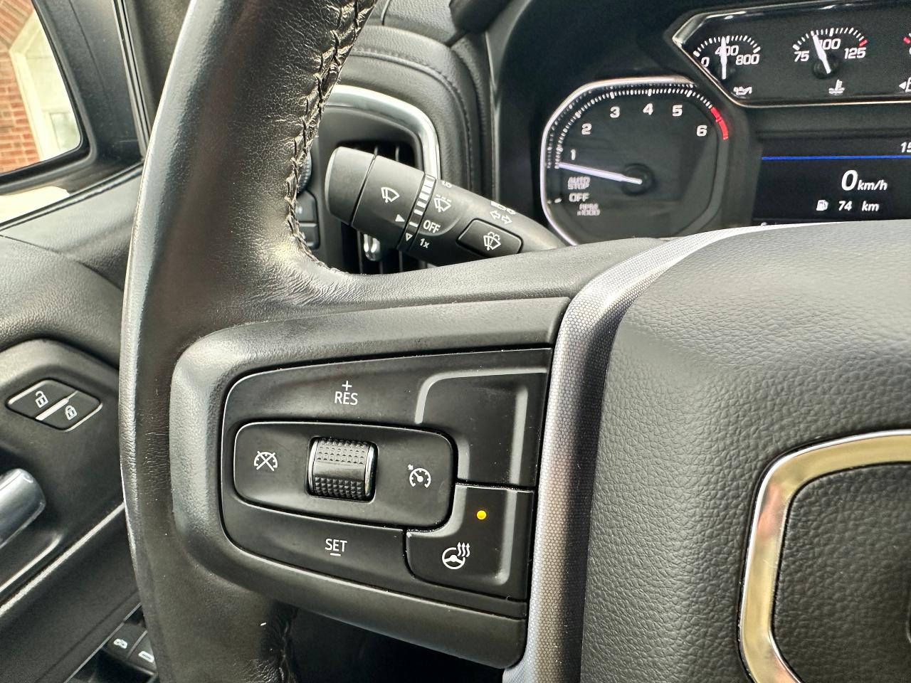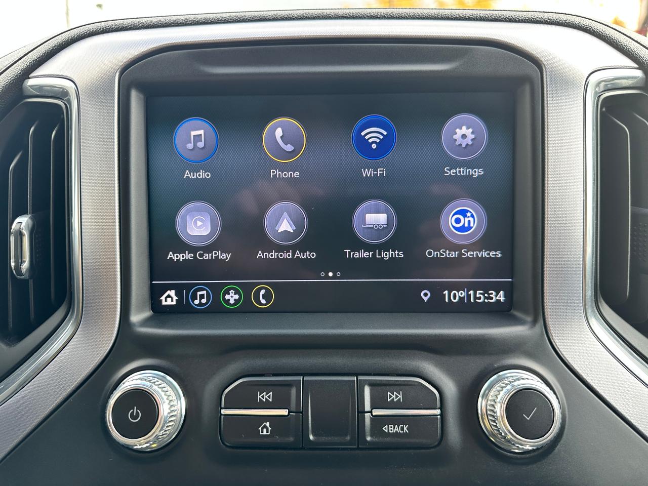 WOW! Super-Clean and LOW-KM, GMC Sierra 1500 from Kingston, ON! This Elevation Crew Cab 4x4 model looks great in its Black paint and Alloy wheels, with nice options inside and out! The exterior features keyless entry with remote start and proximity keys, automatic headlights, foglights, front tow hooks, a trailer hitch, tinted privacy glass, rear bumper steps, a dual rear exhaust, a spray-in bedliner and hard folding tonneau cover, gorgeous black factory alloy wheels, remote tailgate release, a powerful 5.3L V8 Engine and Automatic Transmission powering the 4x4 system! The interior is clean and comfortable with heated cloth front seats with driver's power adjustment and lumbar control, all-weather floor mats, power door locks, mirrors and windows, a heated leather wrapped steering wheel with Audio and Cruise controls, electronic 4x4 selection buttons and trail assist knob, integrated electronic trailer brake controller, an easy to read and use gauge cluster, push button start, a large central touch screen AM/FM/XM Satellite Radio with Bluetooth, Apple CarPlay, Android Auto, OnStar Turn-By-Turn capability and Backup Camera, Dual-Zone A/C climate controls with front and rear window defrost settings, Auto-Stop/Start Override switch, hill descent assist, USB-C/USB/12V accessory ports and more!