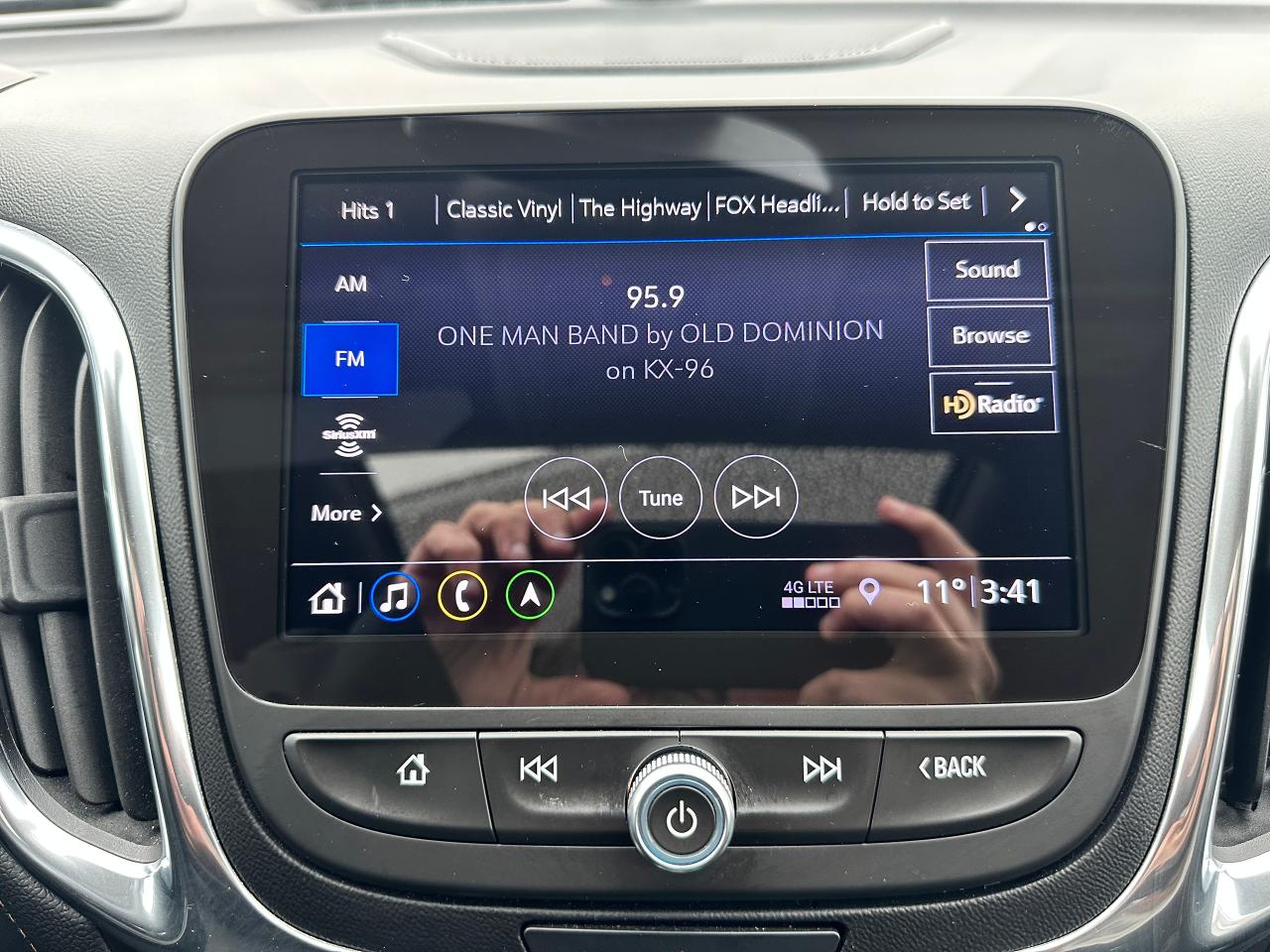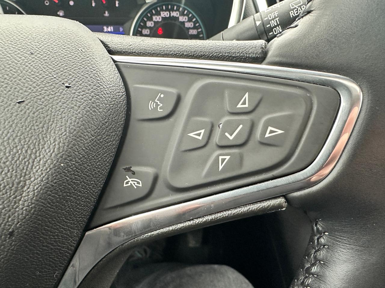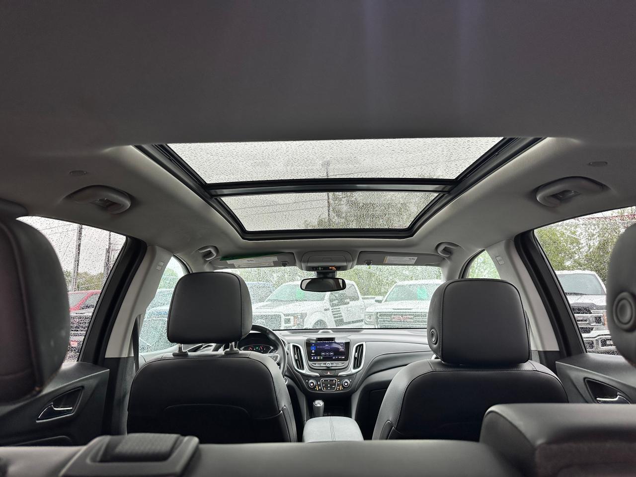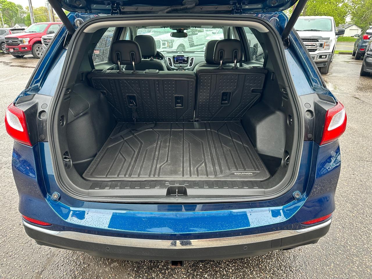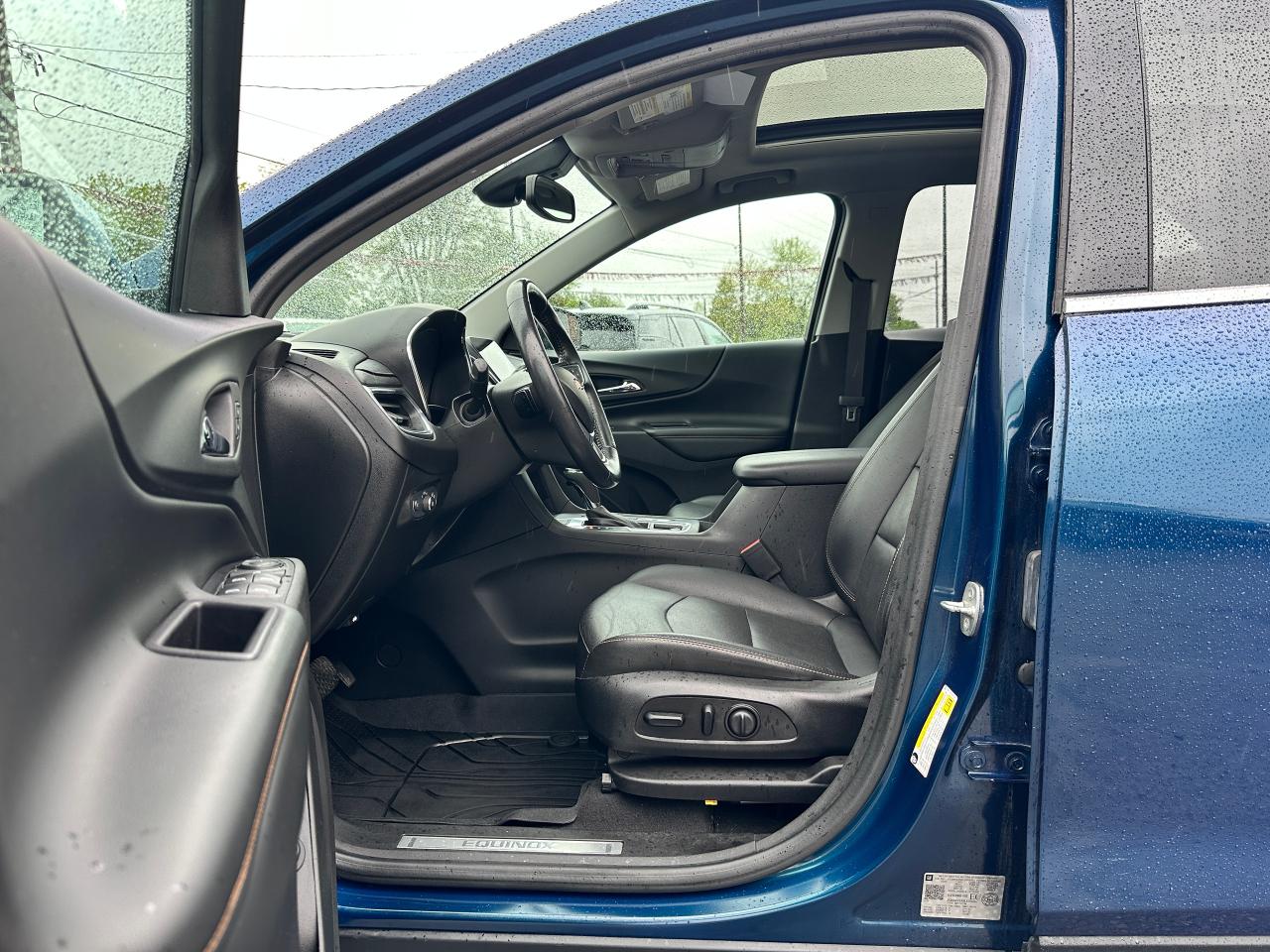 Super-Clean and well-optioned Chevrolet Equinox from Peterborough, ON! This Premier AWD model looks incredible in its Blue paint and factory alloy wheels, and is LOADED UP inside and out with amazing options! The exterior features keyless entry with remote start, proximity keys, remote power liftgate, automatic headlights and highbeams, foglights, a HUGE panoramic sunroof, roof rack rails, driver assists including forward collision warning, lane departure warning, adaptive cruise controls, skyview camera, parking sensors and blind spot monitor, gorgeous split spoke factory alloy wheels, tinted reat privacy glass, a sporty dual exhaust, trailer hitch, a peppy fuel efficient 2.0L 4-cylinder Turbocharged Engine and Automatic transmission powering the All-Wheel-Drive System! The interior is clean and comfortable with heated and cooled front leather seats and rear heated seats, power-adjustable front seats with lumbar controls and driver's memory settings, all-weather Chevrolet floor mats and cargo mats, power door locks, windows and mirrors, a heated leather wrapped steering wheel with audio and cruise controls, an easy to read and use gauge cluster, push button start, a large central touch screen AM/FM/XM Satellite HD Radio with BOSE Premium Audio, Bluetooth, Apple CarPlay, Android Auto, WiFi Settings, Navigation, Backup Camera and Park assist cameras, Dual-Zone A/C climate control with front and rear window defrost settings, USB/USB-C/AUX/12V accessory ports, wireless device charger, TOW/Haul Mode, Universal Garage door opener, and more!