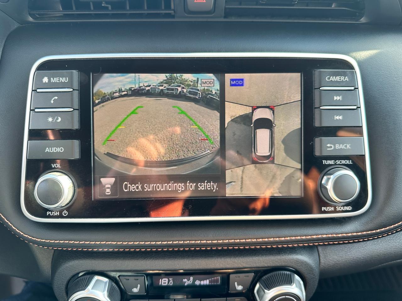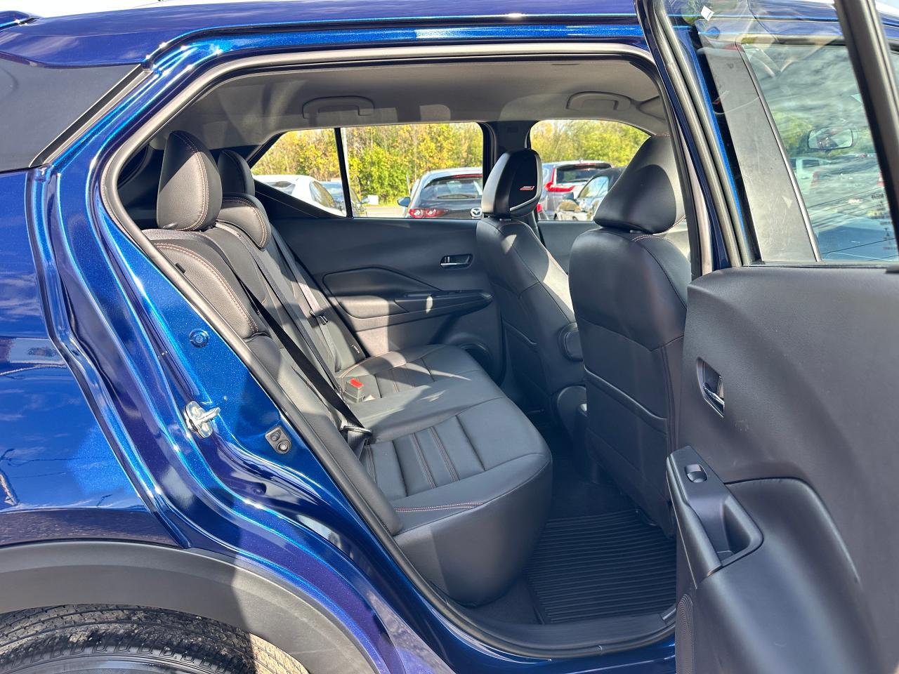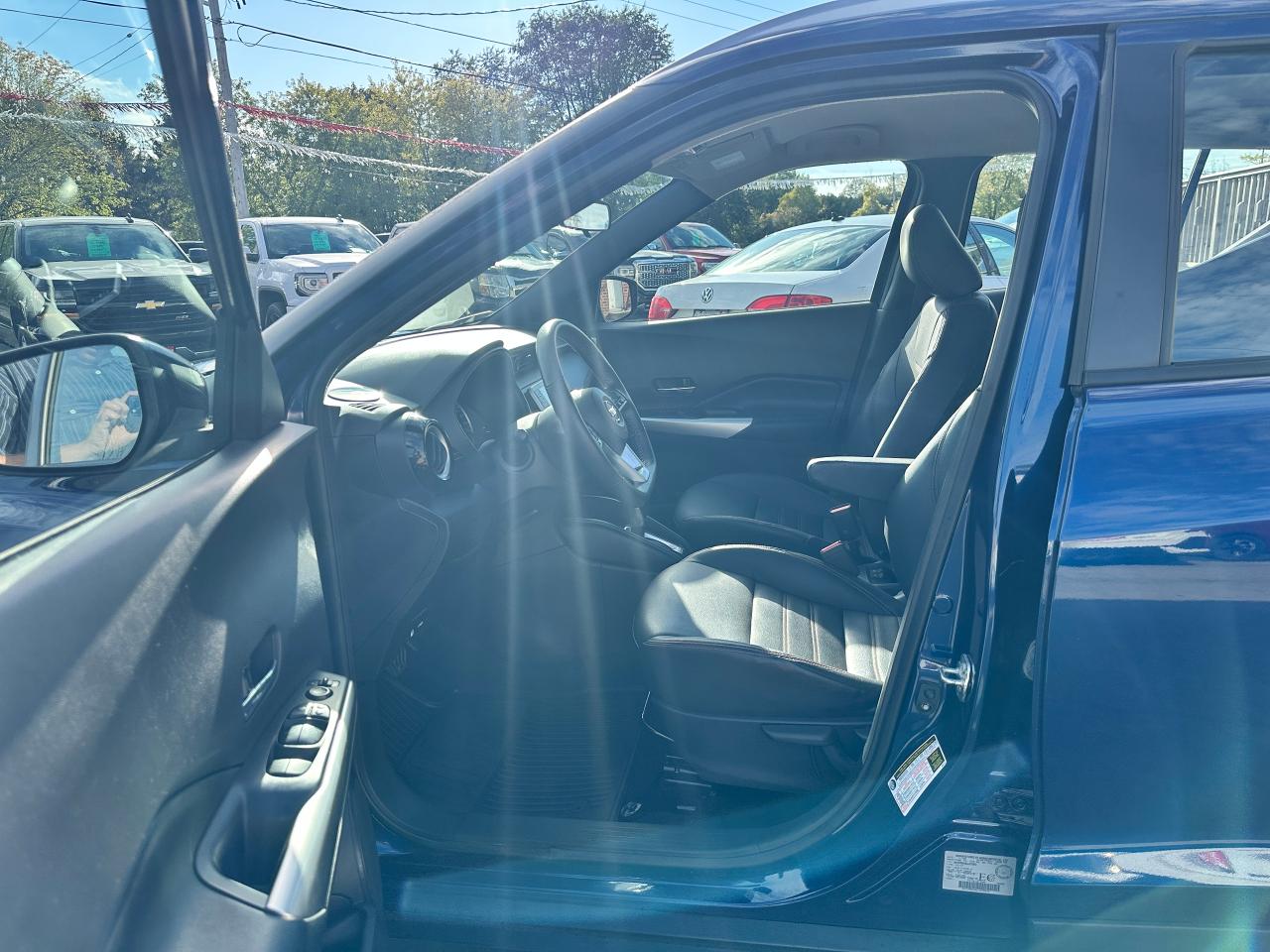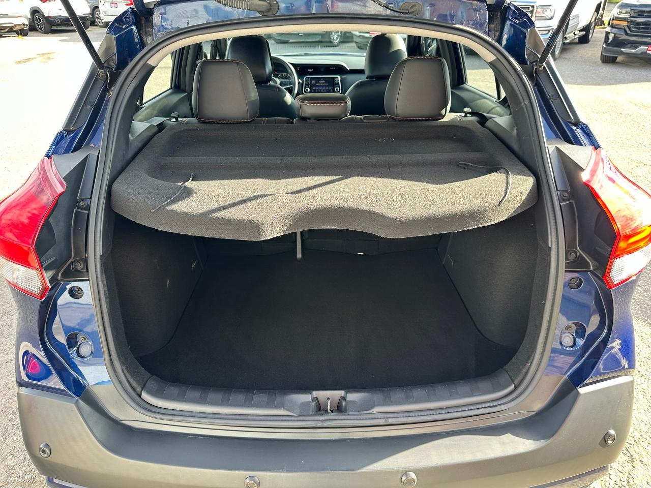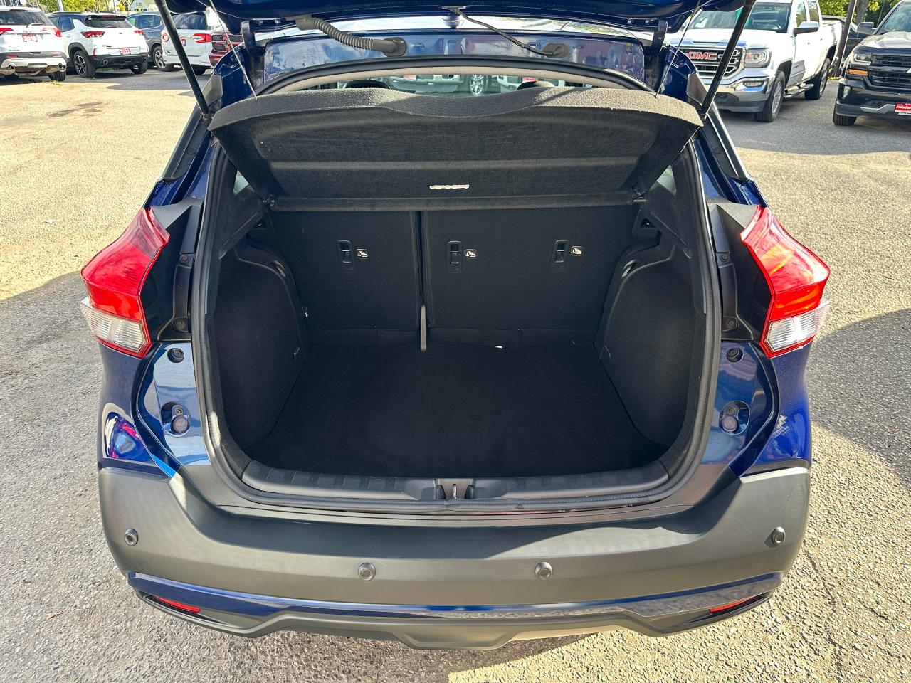WOW! Super-Clean, LOW KM, One-Owner Nissan Kicks from Richmond Hill, ON! This SR FWD model looks incredible in its Beautiful Dark Blue paint and factory machine-finished alloy wheels, with great options inside and out! The exterior features keyless entry with remote start and proximity keys, sharp side mirrors with integrated turn signals, a sleek rear spoiler, parking sensors, roof rack rails, gorgeous factory alloy wheels, a peppy fuel-efficient 1.6L 4-cylinder Engine and CVT Auto Transmission! The interior is clean and comfortable, and full of tech with heated leather front seats, with drivers built in BOSE Personal Speakers, power door locks, windows and mirrors, comfortable rear seating and a large cargo area, orange accent stitching, a leather-wrapped and accented steering wheel with Audio and Cruise controls, an easy-to-read and use gauge cluster, push button start, a large central touch screen AM/FM/XM Satellite Radio with Bluetooth, Apple CarPlay, Android Auto, SkyView, Forward and Backup Cameras, A/C climate control with front and rear window defrost settings, USB/AUX/12V accessory ports, and more!