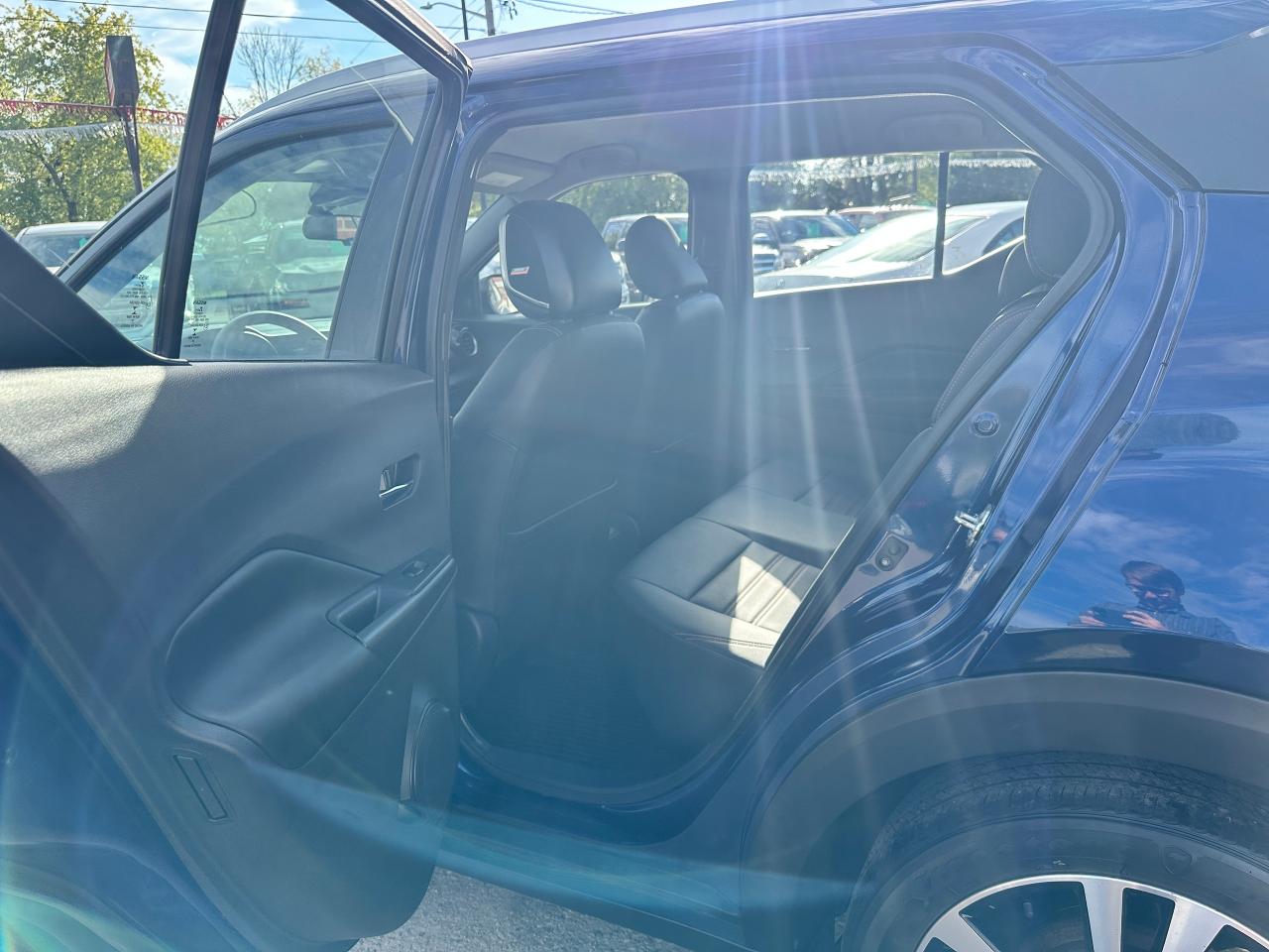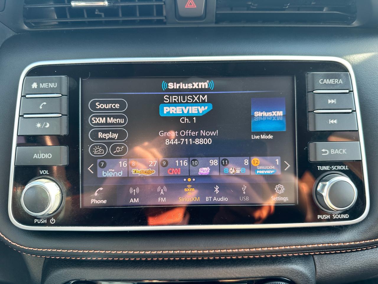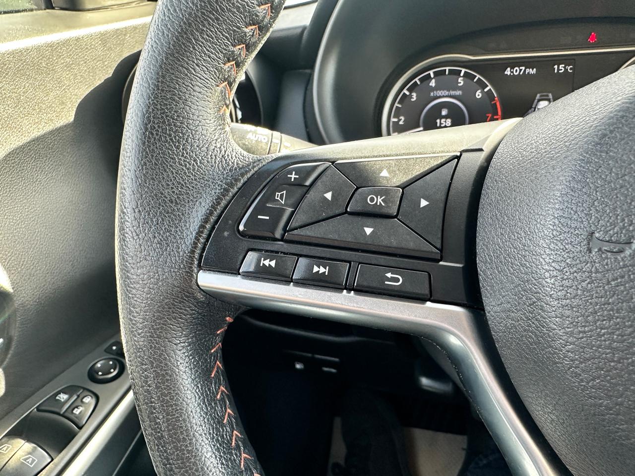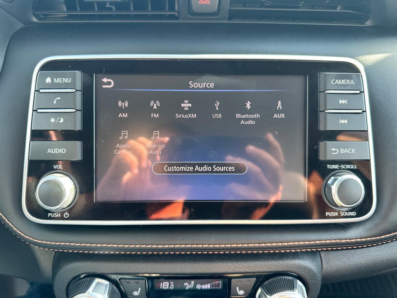 WOW! Super-Clean, LOW KM, One-Owner Nissan Kicks from Richmond Hill, ON! This SR FWD model looks incredible in its Beautiful Dark Blue paint and factory machine-finished alloy wheels, with great options inside and out! The exterior features keyless entry with remote start and proximity keys, sharp side mirrors with integrated turn signals, a sleek rear spoiler, parking sensors, roof rack rails, gorgeous factory alloy wheels, a peppy fuel-efficient 1.6L 4-cylinder Engine and CVT Auto Transmission! The interior is clean and comfortable, and full of tech with heated leather front seats, with drivers built in BOSE Personal Speakers, power door locks, windows and mirrors, comfortable rear seating and a large cargo area, orange accent stitching, a leather-wrapped and accented steering wheel with Audio and Cruise controls, an easy-to-read and use gauge cluster, push button start, a large central touch screen AM/FM/XM Satellite Radio with Bluetooth, Apple CarPlay, Android Auto, SkyView, Forward and Backup Cameras, A/C climate control with front and rear window defrost settings, USB/AUX/12V accessory ports, and more!
