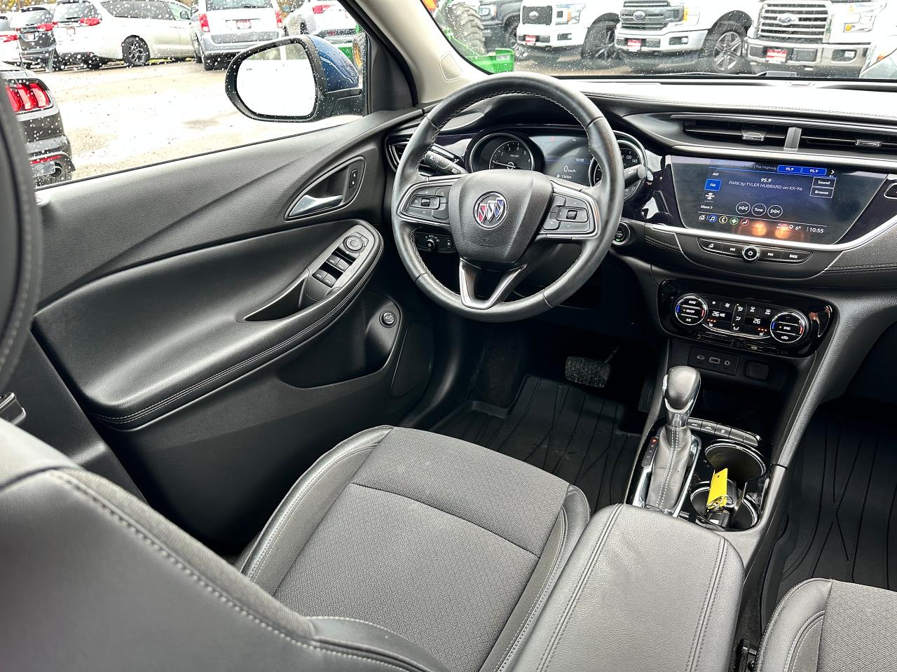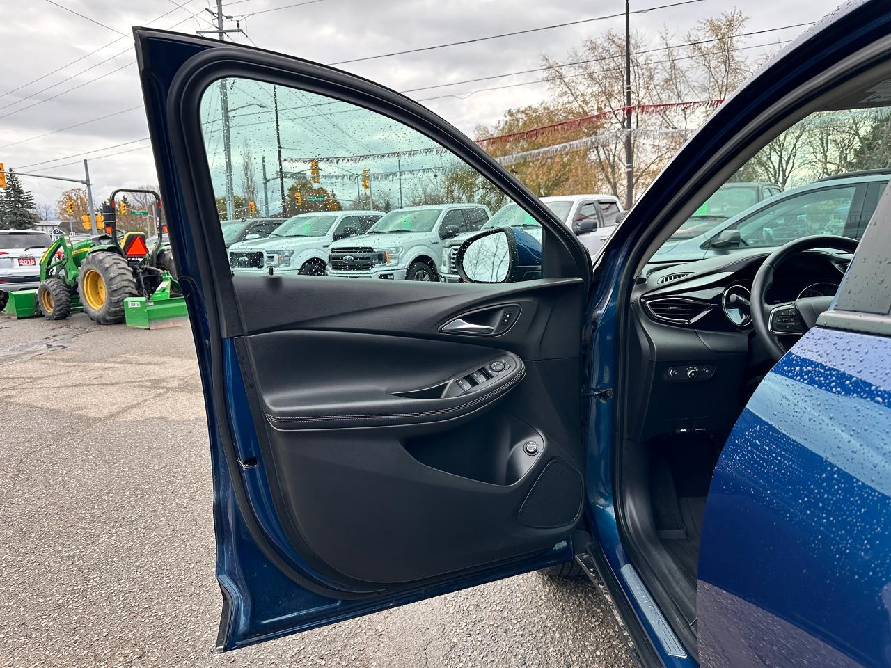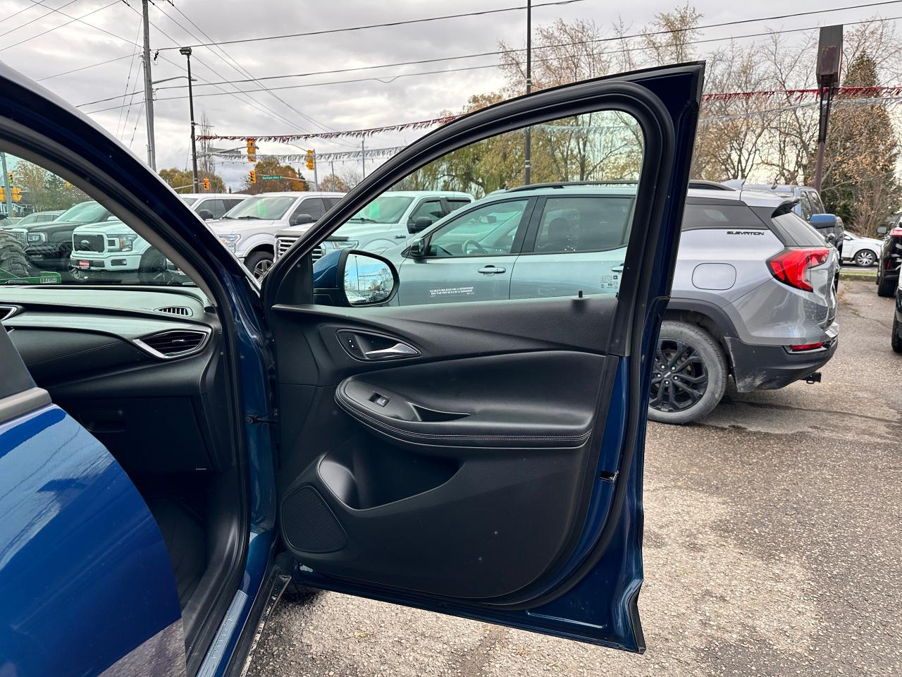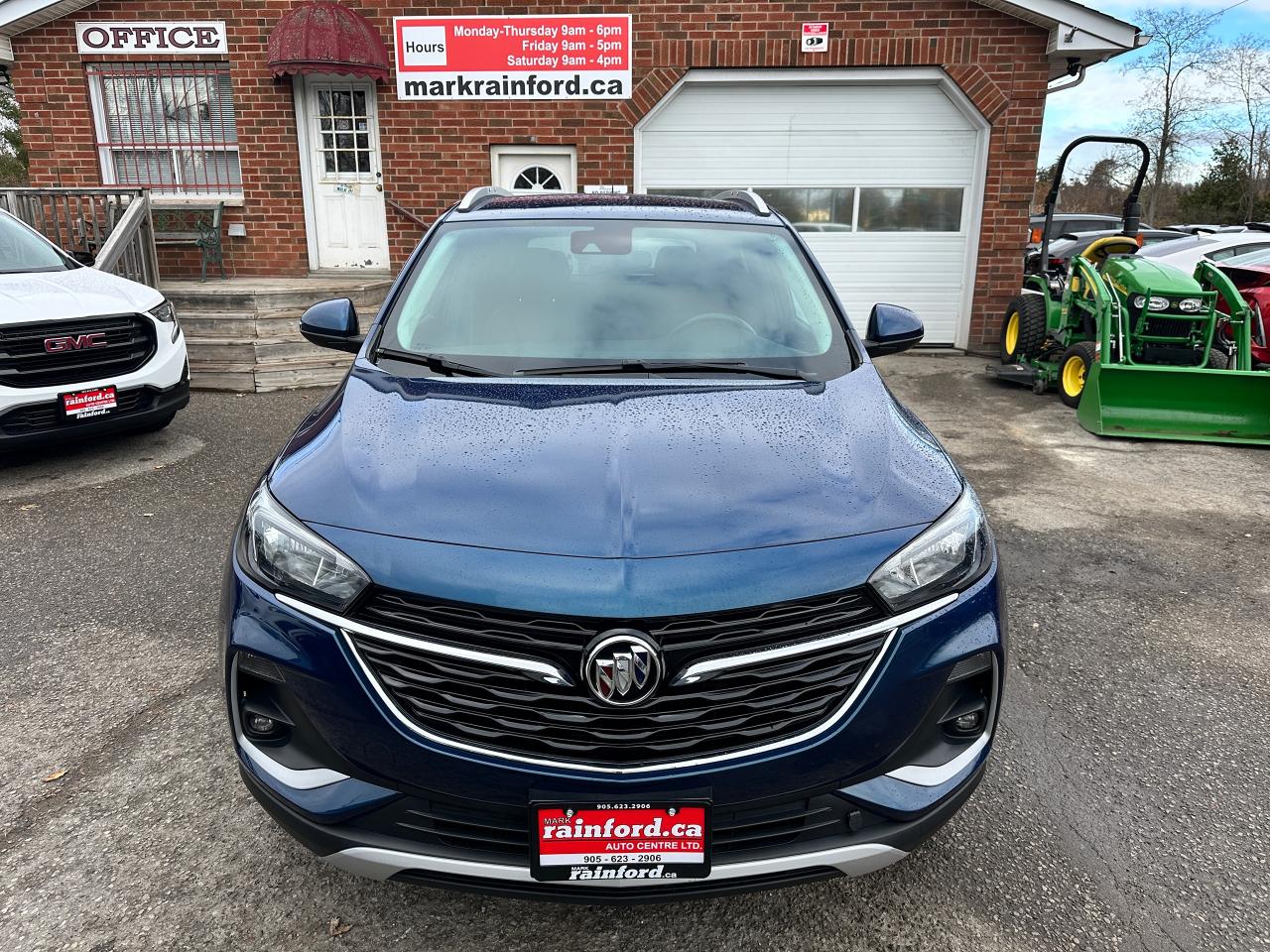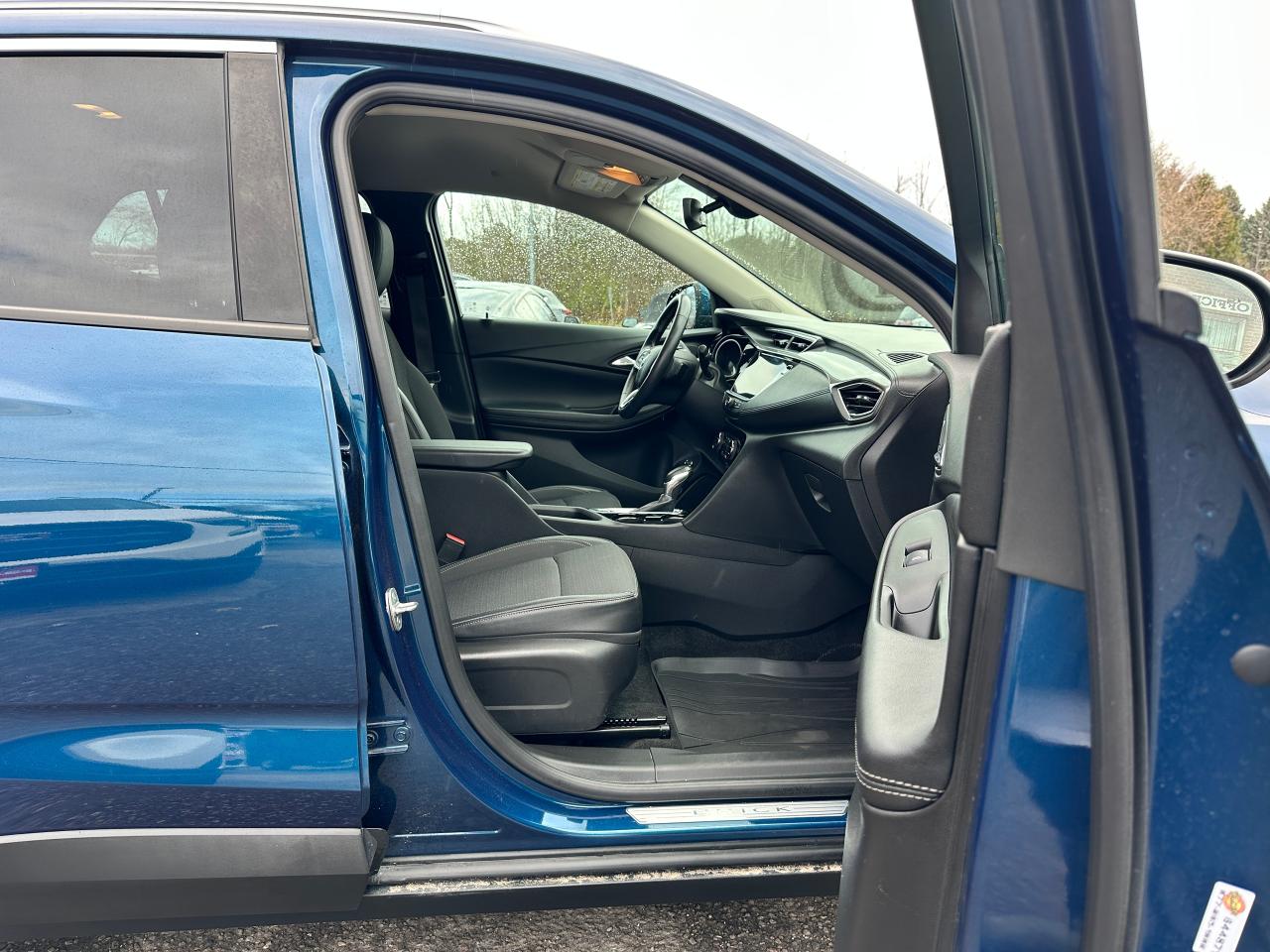Super-Clean Buick Encore GX from Kanata, ON! This Select AWD model looks fantastic in its beautiful Blue paint and factory machine-finished alloy wheels, and great options inside and out! The exterior features keyless entry with remote start and proximity keys, a power rear lift-gate, automatic headlights/highbeams, foglights, colour-matched side mirrors, rear parking sensors, blind spot monitors, lane keeping assist and forward collision warning, a sleek rear spoiler, tinted privacy glass, roof rack rails, gorgeous dark alloy wheels, a peppy fuel-efficient 1.3L 3-Cylinder turbocharged Engine and Automatic transmission powering the All-Wheel-Drive system! The interior is clean and comfortable with heated cloth front seats with driver's power adjustment and lumbar control, power door locks, windows and mirrors, All-Weather floor mats and cargo mat, comfortable rear seating area, a leather wrapped steering wheel with Audio and Cruise controls, an easy to read and use gauge cluster, push button start, a large central Touch Screen AM/FM/XM Satellite Radio with Bluetooth, Apple CarPlay, Android Auto, WiFi and Climate settings, OnStar Turn by Turn capability and Backup Camera, Dual-Zone A/C climate controls with front and rear window defrost settings, USB/USB-C/AUX/12V accessory ports, and more!