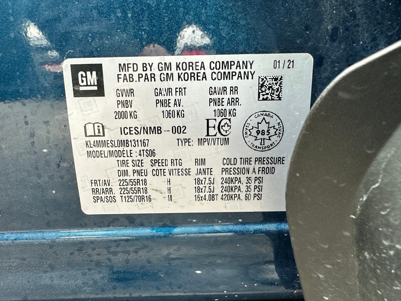 - VIN: KL4MMESL0MB131167