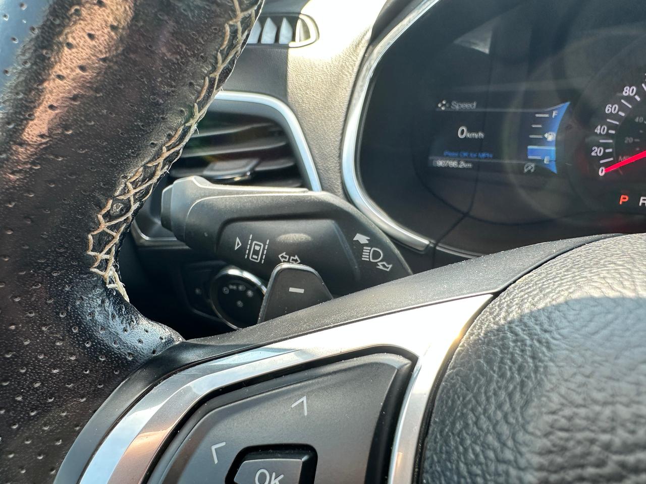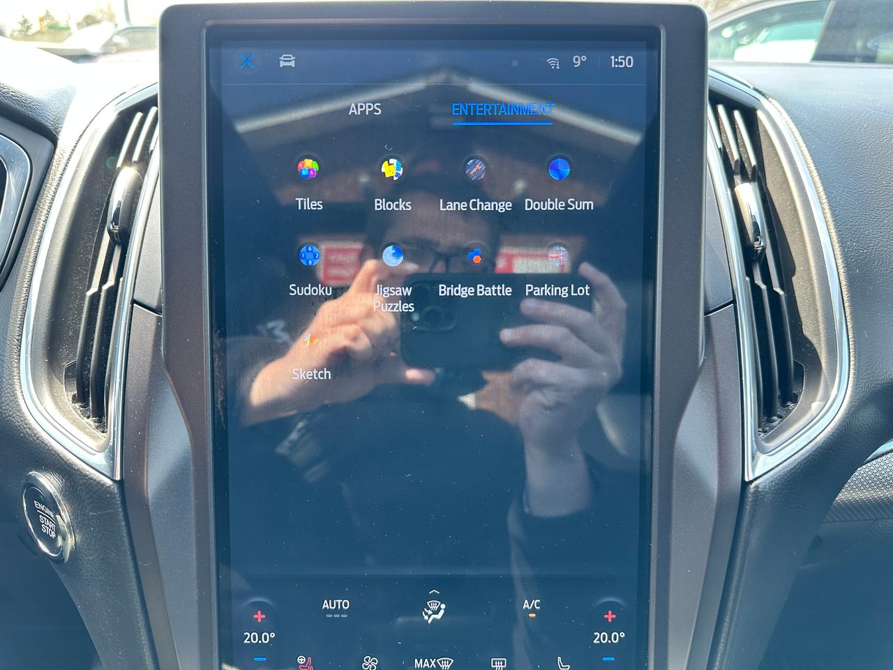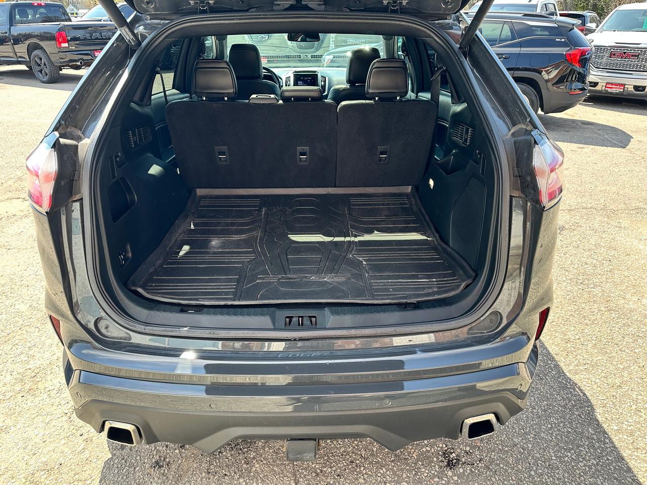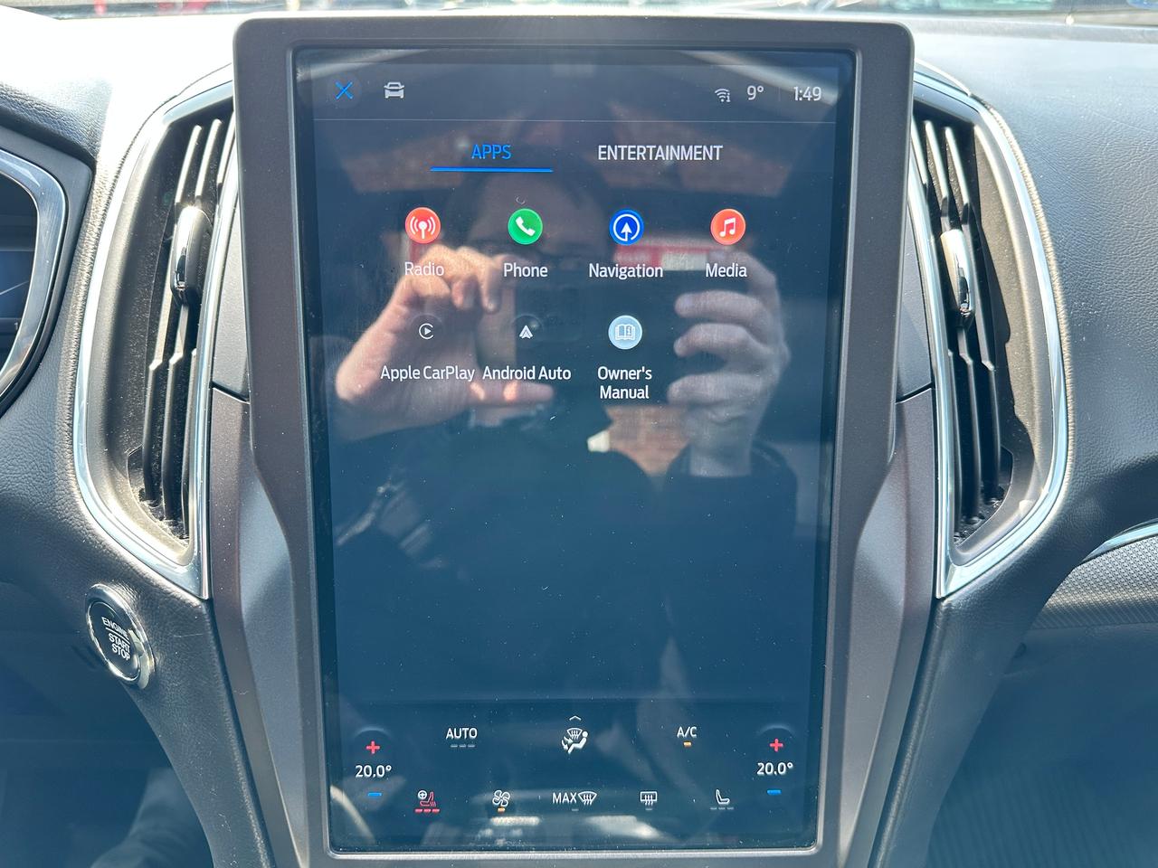 WOW! Super-Clean Ford Edge from Thornhill, ON! This ST AWD model looks incredible in its Dark Charcoal Grey paint and factory alloy wheels, with fantastic options inside and out! The exterior features keyless entry with remote start and proximity key, power rear lift-gate, an enormous Panoramic Sunroof, colour-matched side mirrors with integrated turn signals, forward collision warning and adaptive cruise controls, blind spot and parking sensors, rear traffic warning and lane keeping assist, sporty dual-rear exhaust, a trailer hitch, tinted rear privacy glass and sleek spoiler, ST Badging, gorgeous factory Black Alloy Wheels and NEW All-Season Tires freshly installed, a powerful and smooth 2.7L V6 Turbocharged Engine and Automatic transmission powering the All-Wheel-Drive system! The interior is clean and comfortable with heated and cooled power-adjustable front leather seating with lumbar controls and driver's memory settings, spacious heated rear seating, power door locks, windows and mirrors, All-Weather-Floor mats, and a rear cargo mat, a heated leather wrapped steering wheel with Audio and Cruise controls, paddle shifters, an easy-to-read and use gauge cluster, push button start, a HUGE Central touch screen AM/FM/XM Satellite HD Radio with Bang & Olufsen Premium Audio, Bluetooth, Apple CarPlay, Navigation, Backup Camera and 360 Surround Parking Sensor Display and entertainment applications, Dual-Zone A/C climate controls with front and rear window defrost settings, Parking Assistance Settings, Automatic-Stop/Start Override button, USB/USB-C/12V accessory ports, Universal Garage Door openers and more!