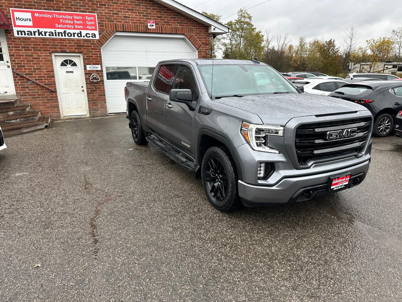 Super-Clean, Local One Owner GMC Sierra from Oshawa, ON! This SLE Elevation is VERY well equipped and looks amazing in its Grey paint and factory alloy wheels! The exterior features keyless entry with remote start and remote tailgate release, automatic headlights, foglights, front tow hooks, a trailer hitch, black side mirrors and step sides, factory power SUNROOF, tinted privacy glass, and sliding rear glass, sporty dual-rear exhaust, rear bumper steps and integrated fold-out tailgate step, gorgeous Black factory alloy wheels, a powerful 5.3L V8 Engine and Automatic transmission driving the 4x4 system! The interior is clean and comfortable with heated cloth front seats with driver's power adjustment and lumbar control, power door locks, mirrors and windows, electronic 4x4 selection and trailer assist knob, integrated electronic trail brake controller, a heated leather wrapped steering wheel with audio and cruise controls, push button start, an easy to read and use guage cluster, a large central touch screen AM/FM/XM Satellite HD Radio with BOSE Premium Audio, Bluetooth, Apple CarPlay, Android Auto, Amazon Alexa Integration, OnStar Turn-By-Turn capability and Backup Camera, Dual-Zone A/C Climate controls with front and rear window defrost settings, hill descent assist, Auto-Stop/Start Override button, USB/USB-C/12V accessory ports, Universal Garage Door openers and more!