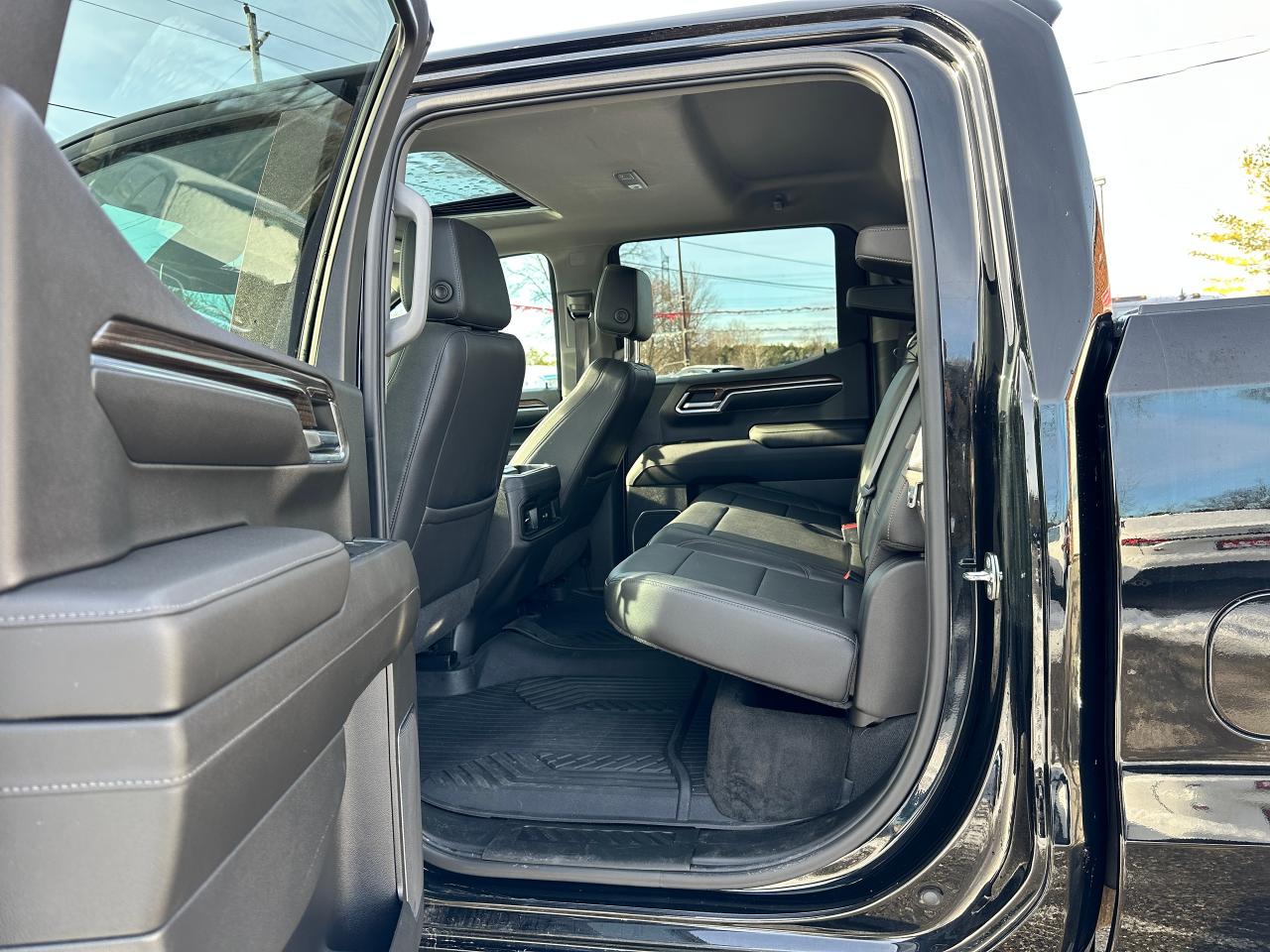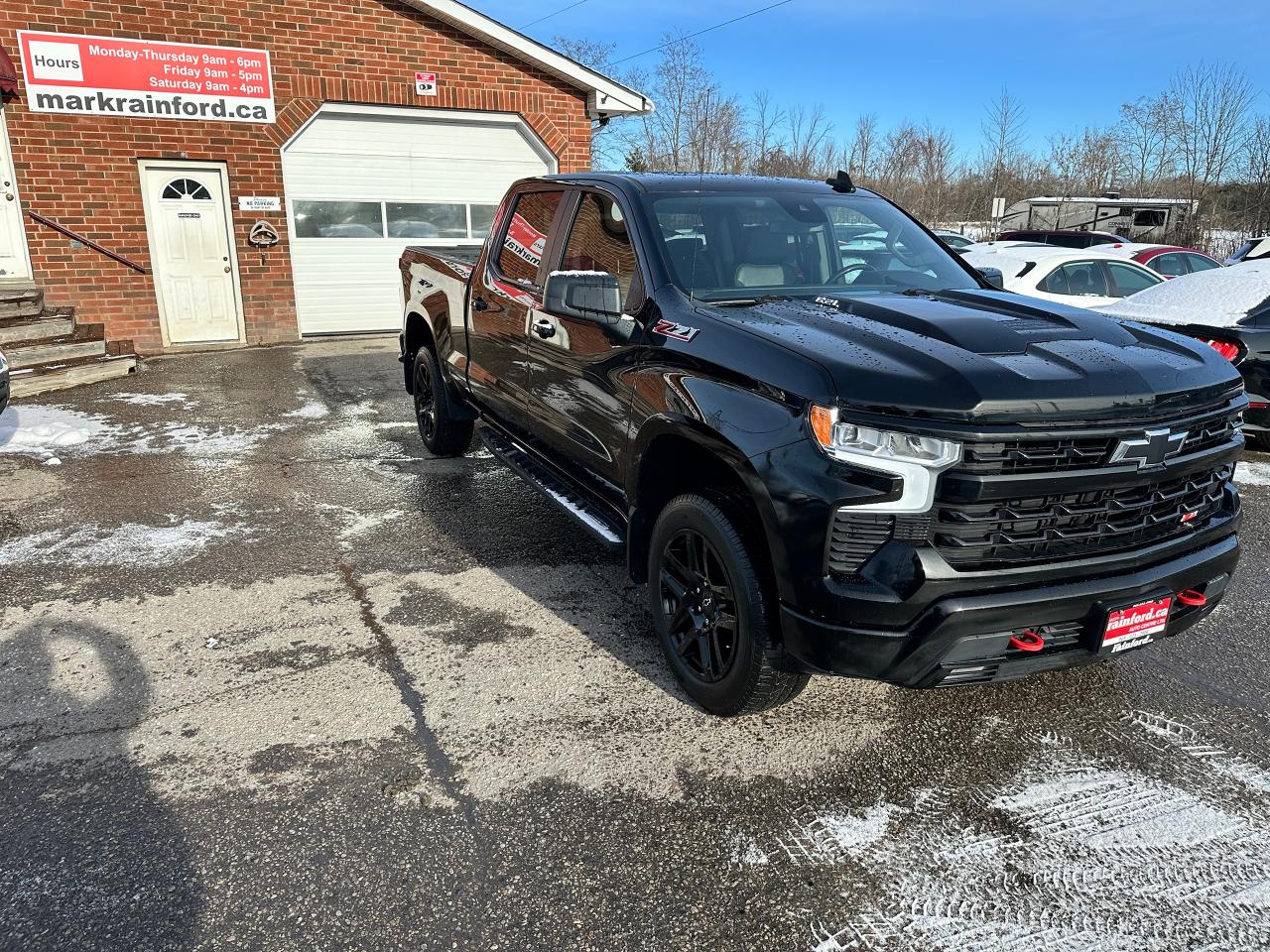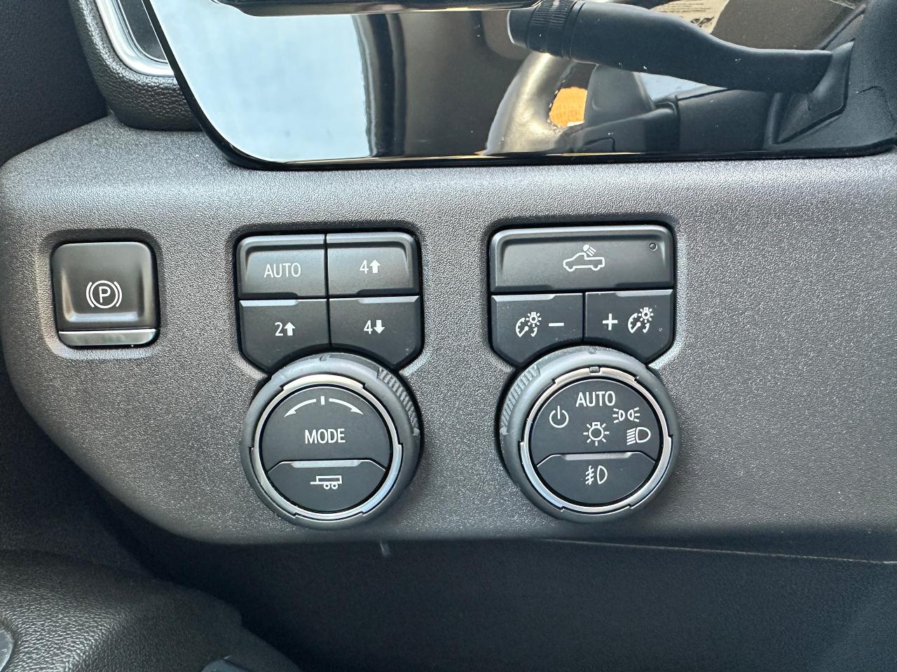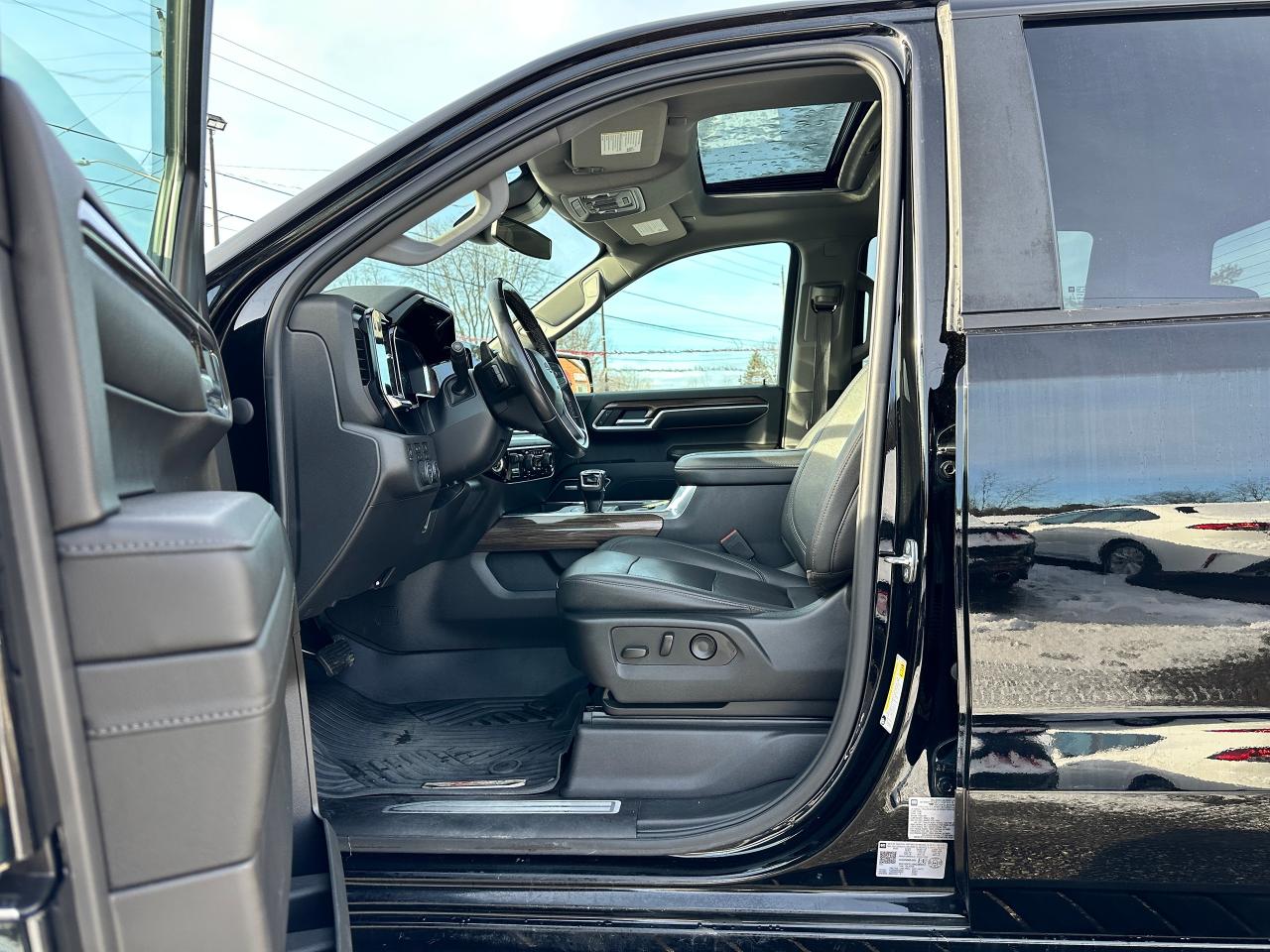 Super-Clean, Sharp-looking Chevrolet Silverado 1500 from Kingston, ON! This LT Trail Boss Crew Cab 4x4 model looks incredible in its Black/Black colour scheme, with nice upgrades and options inside and out! The exterior features keyless entry with remote start and proximity keys, remote trunk release, a large factory power sunroof, automatic headlights, foglights and automatic highbeams, front tow hooks, a trailer hitch, spray-in Chevrolet bedliner, tinted privacy glass, a sliding rear window, rear bumper steps, lane departure warning, forward collision warning, black side mirrors and running boards, gorgoeus Black factory alloy wheels, a powerful 6.2L V8 Engine, and Automatic transmission driving the 4x4 system! The interior is clean and comfortable with heated leather front seats with driver's power adjustment and lumbar control, power door locks, windows and mirrors, a spacious rear seating area with a folding bench, electronic 4x4 selection buttons, a drive mode selection knob with trailer mode, an integrated electronic trailer brake controller, a heated leather wrapped steering wheel with Audio and Cruise controls, paddle shifters, customizable gauge cluster, push button start, a HUGE central touch screen AM/FM/XM Satellite Radio with BOSE Premium Audio, Bluetooth, Apple CarPlay, Android Auto, WiFi settings, Google Apps and Backup Camera, hill descent assist, Auto-Stop/Start override button, Dual-Zone A/C climate controls with front and rear window defrost settings, universal garage door openers, wireless charging pad, USB/USB-C/12V accessory ports and more!