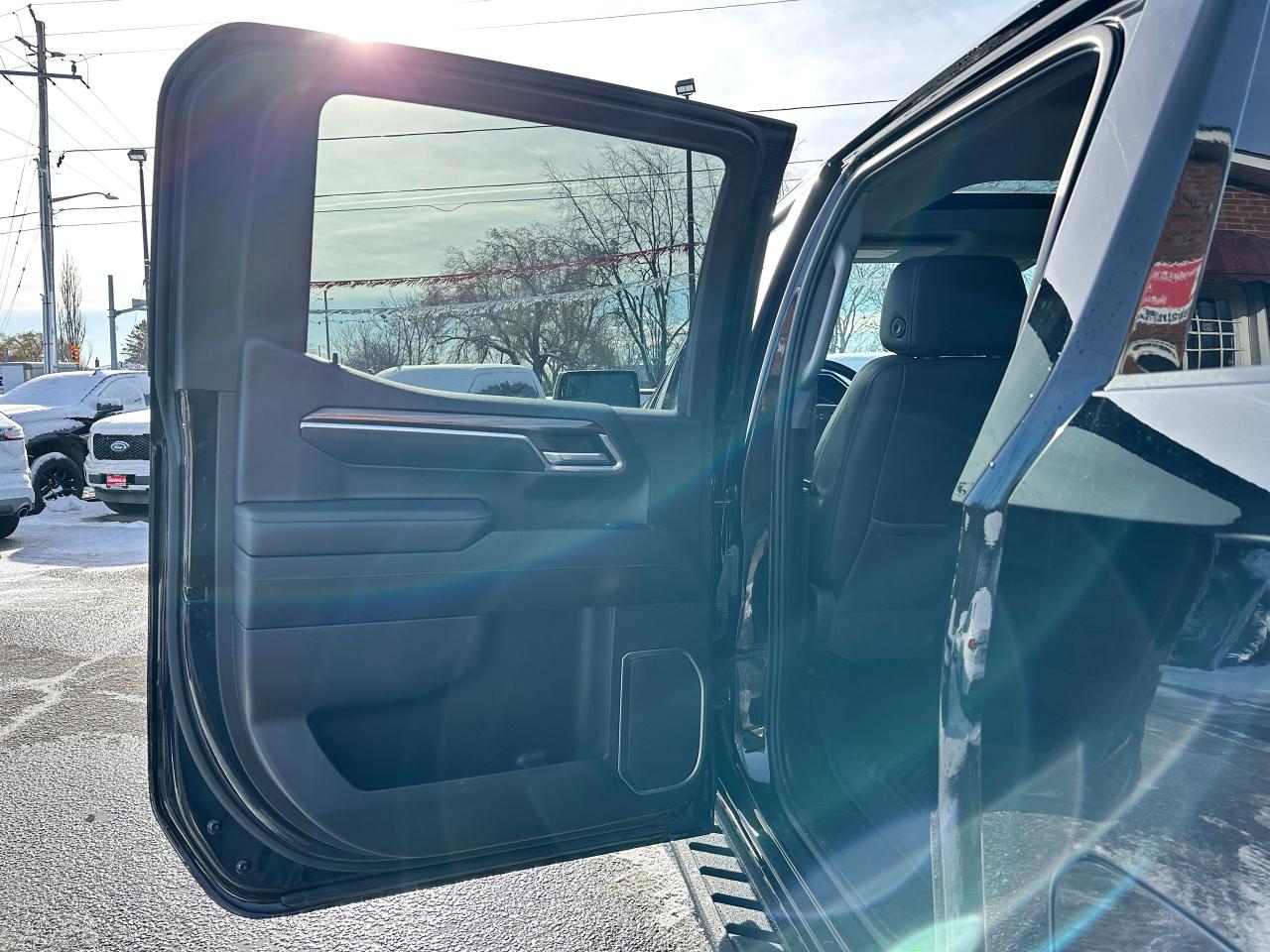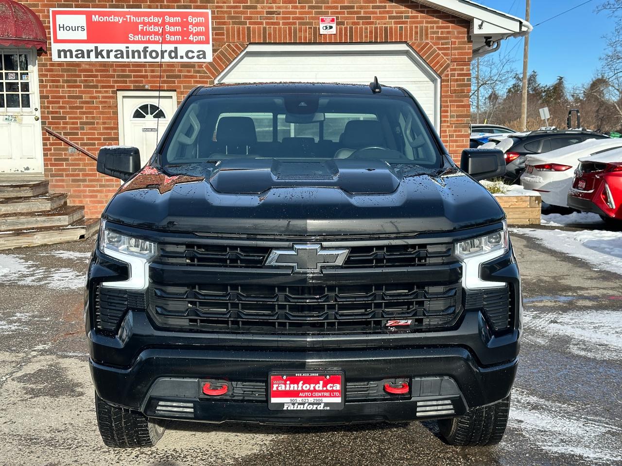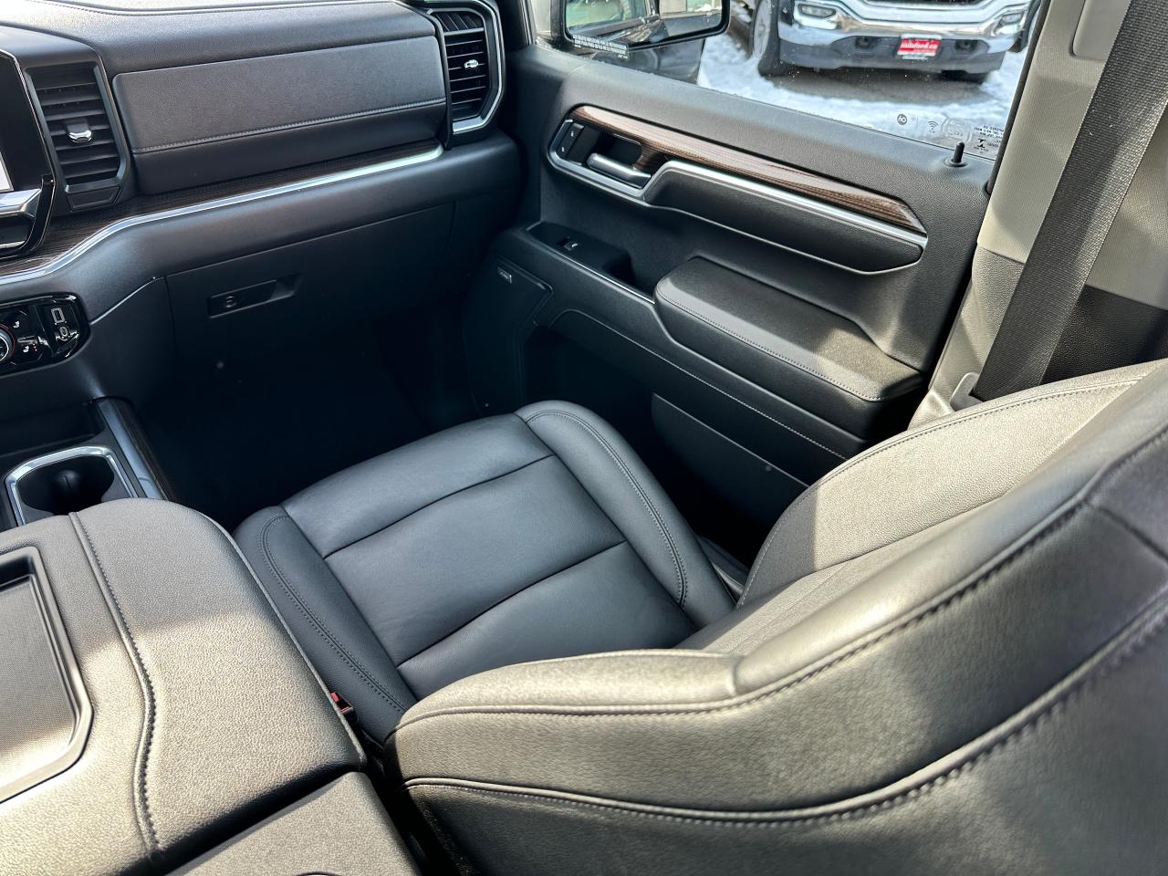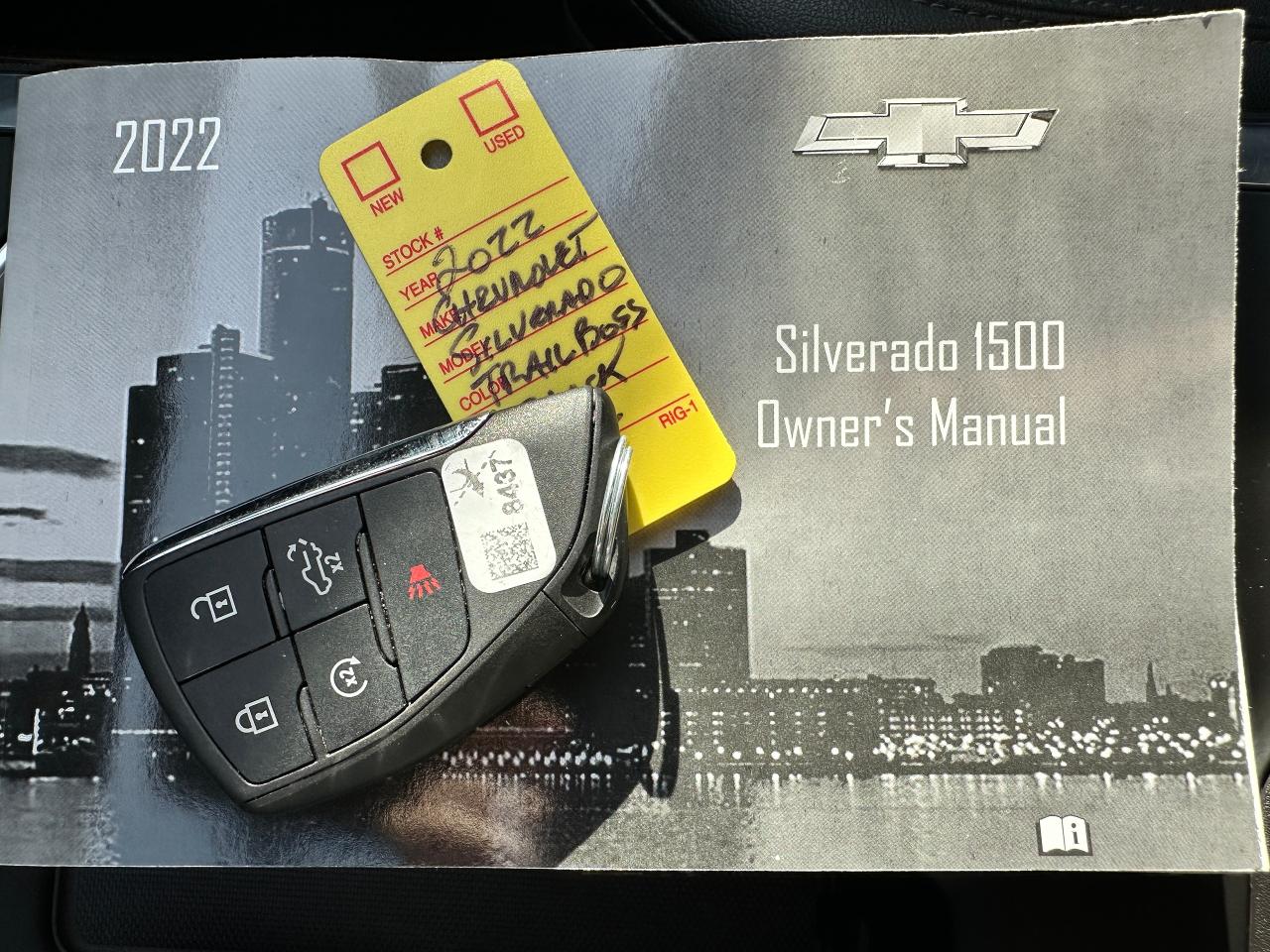 Super-Clean, Sharp-looking Chevrolet Silverado 1500 from Kingston, ON! This LT Trail Boss Crew Cab 4x4 model looks incredible in its Black/Black colour scheme, with nice upgrades and options inside and out! The exterior features keyless entry with remote start and proximity keys, remote trunk release, a large factory power sunroof, automatic headlights, foglights and automatic highbeams, front tow hooks, a trailer hitch, spray-in Chevrolet bedliner, tinted privacy glass, a sliding rear window, rear bumper steps, lane departure warning, forward collision warning, black side mirrors and running boards, gorgoeus Black factory alloy wheels, a powerful 6.2L V8 Engine, and Automatic transmission driving the 4x4 system! The interior is clean and comfortable with heated leather front seats with driver's power adjustment and lumbar control, power door locks, windows and mirrors, a spacious rear seating area with a folding bench, electronic 4x4 selection buttons, a drive mode selection knob with trailer mode, an integrated electronic trailer brake controller, a heated leather wrapped steering wheel with Audio and Cruise controls, paddle shifters, customizable gauge cluster, push button start, a HUGE central touch screen AM/FM/XM Satellite Radio with BOSE Premium Audio, Bluetooth, Apple CarPlay, Android Auto, WiFi settings, Google Apps and Backup Camera, hill descent assist, Auto-Stop/Start override button, Dual-Zone A/C climate controls with front and rear window defrost settings, universal garage door openers, wireless charging pad, USB/USB-C/12V accessory ports and more!