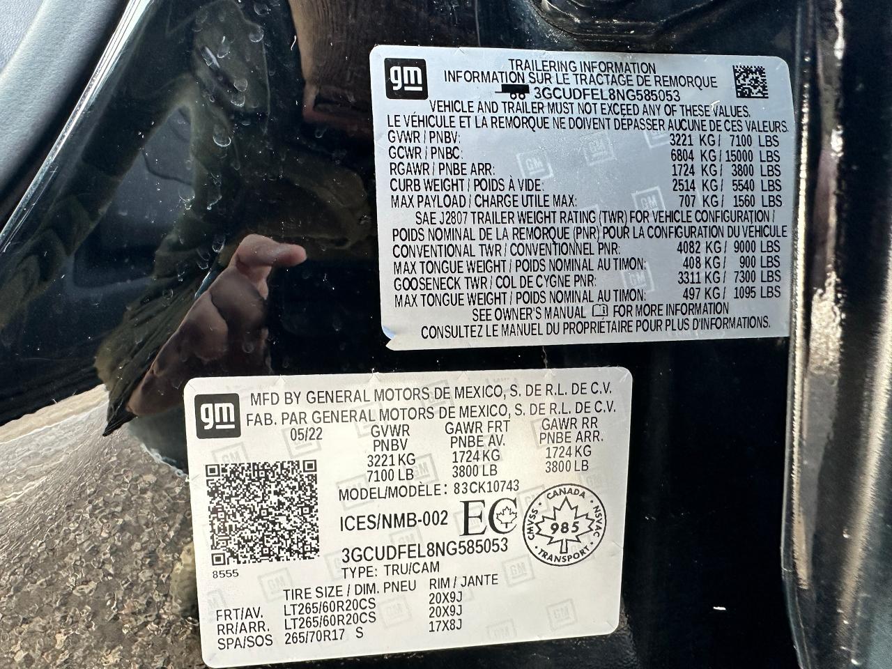 - VIN: 3GCUDFEL8NG585053