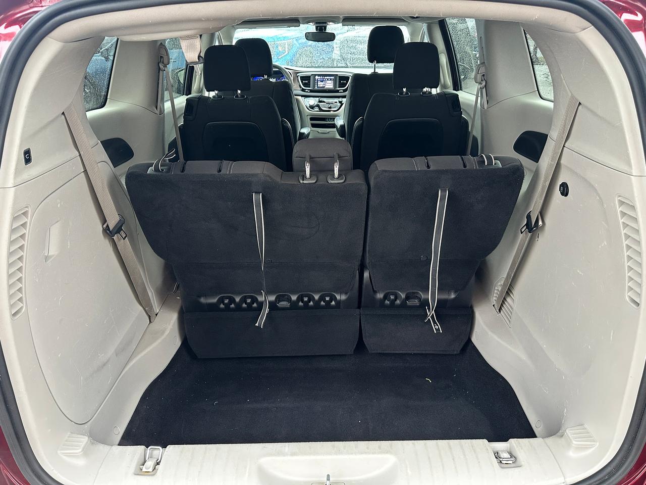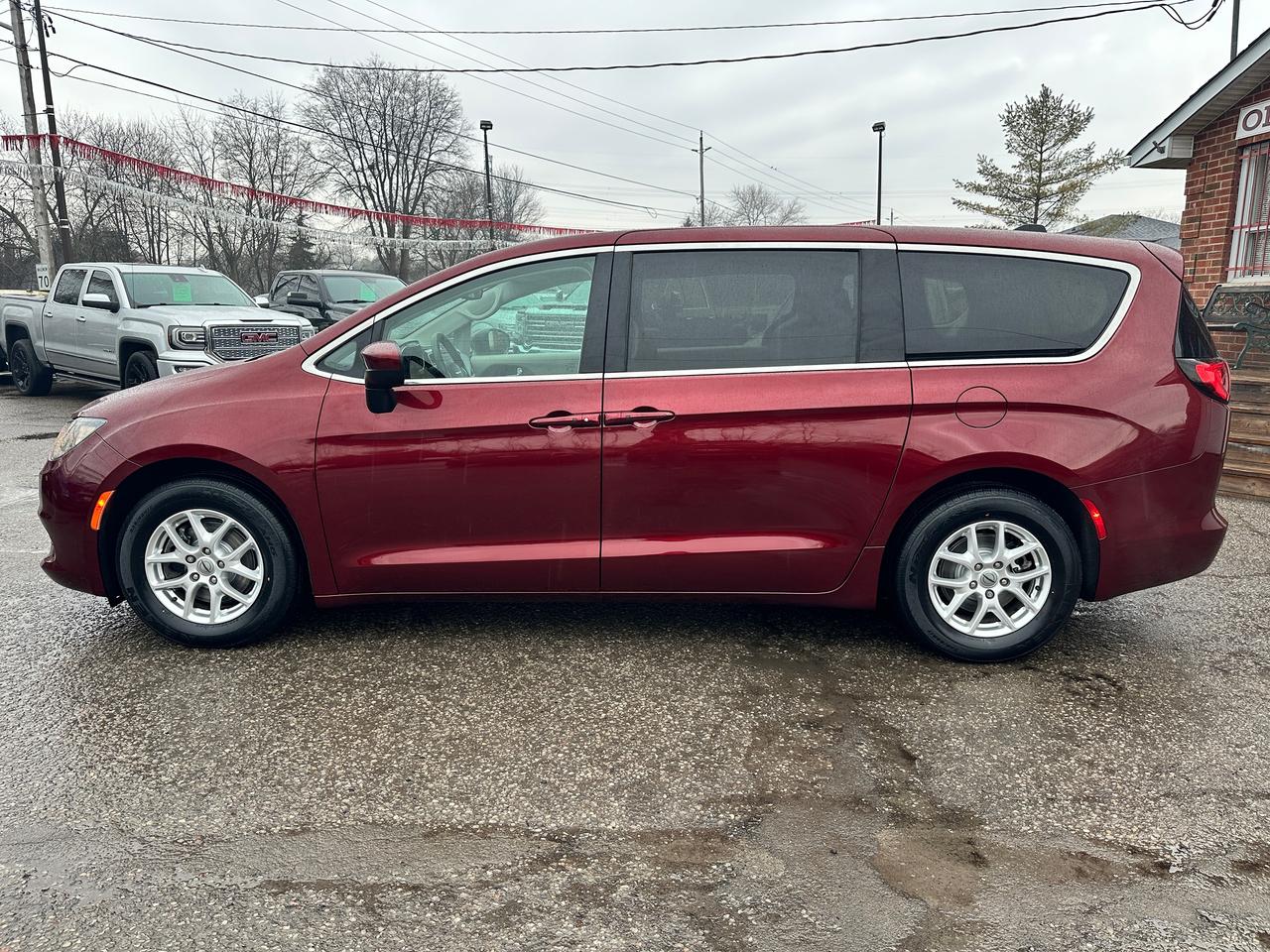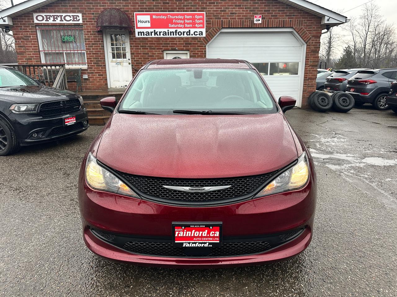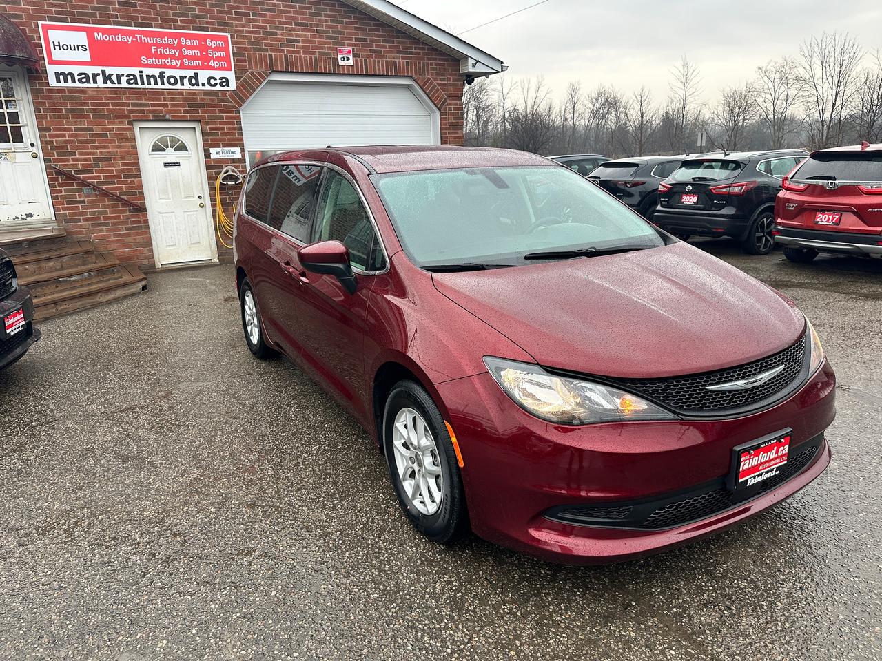 Super-Clean Local One-Owner Chrysler Grand Caravan from Ajax, ON! This SXT model looks incredible in its Burgundy Paint, with great options and styling! The exterior features keyless entry with remote start and proximity key, remote rear power liftgate, and sliding passenger doors, automatic headlights, colour-matched heated side mirrors, tinted privacy glass, a trailer hitch, a sleek rear spoiler, gorgeous factory alloy wheels with NEW All-Season Tires and Brakes, freshly installed, a powerful 3.6L V6 Engine and Automatic transmission! The interior is very clean and comfortable, with heated cloth front seats with driver's power adjustment and lumbar control, Stow'N'Go rear and middle rows, power door locks, windows and mirrors, a heated leather wrapped steering wheel with Audio and Cruise controls, push button start, an easy to read and use guage cluster, turn knob gear selection with low range, central touch screen AM/FM/XM Satellite Radio with Bluetooth, Apple CarPlay, Android Auto and Backup Camera, Dual-Zone A/C climate controls with front and rear window defrost settings, Auto-Stop/Start override button, plnety of starage areas throughout, USB/AUX/12V accessory ports, convex rear row mirror and more!