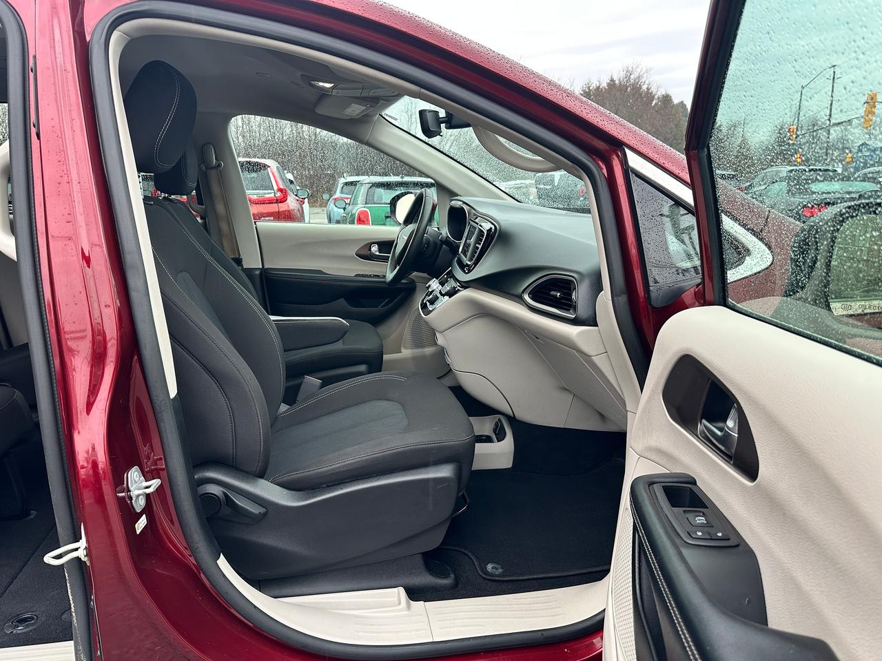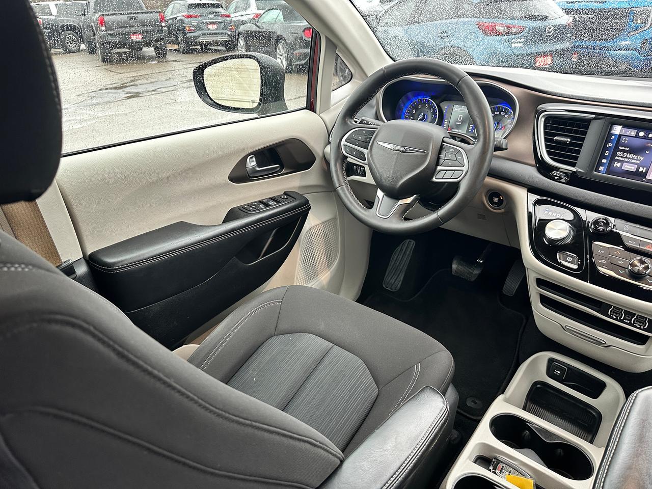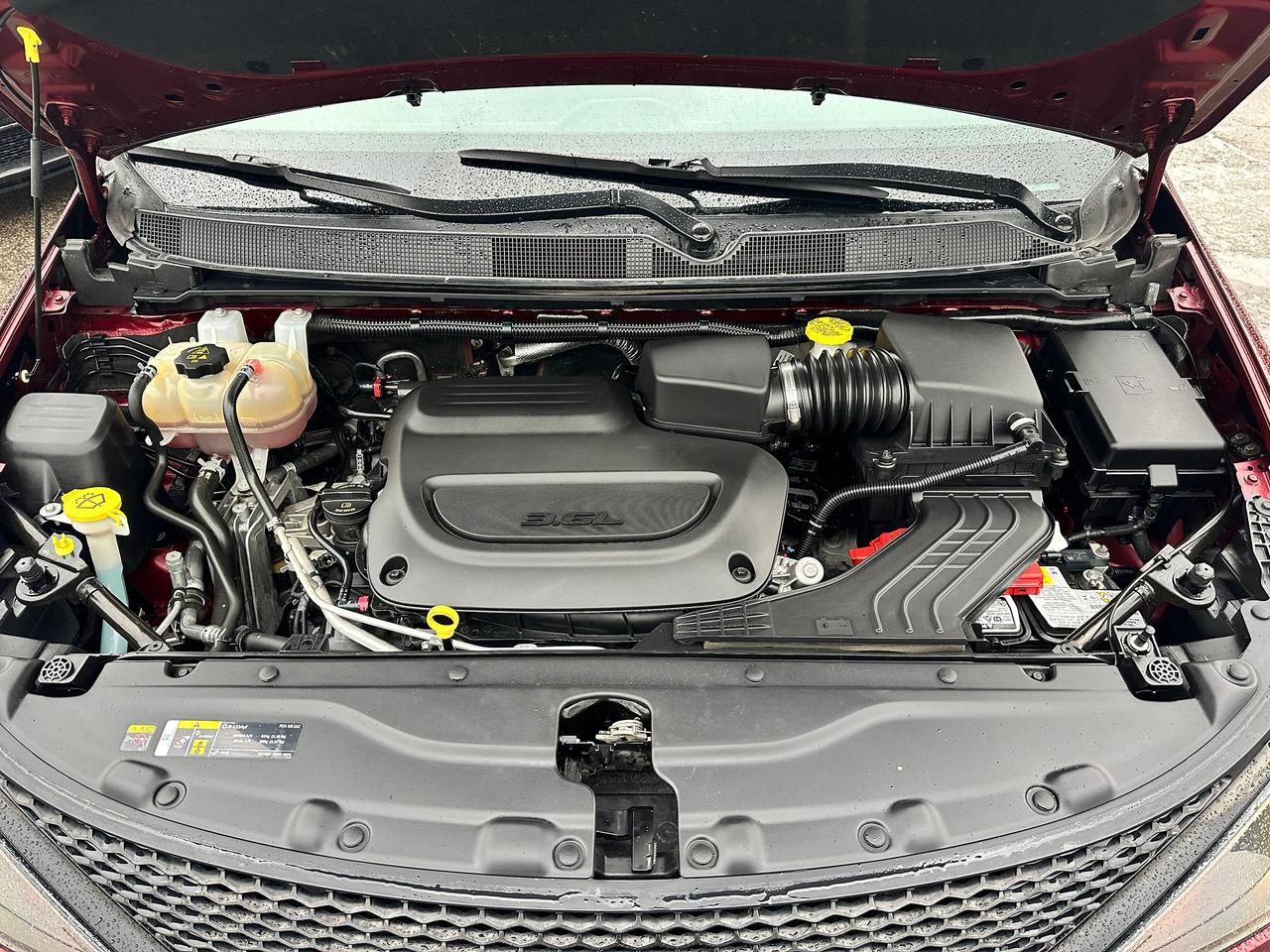 Super-Clean Local One-Owner Chrysler Grand Caravan from Ajax, ON! This SXT model looks incredible in its Burgundy Paint, with great options and styling! The exterior features keyless entry with remote start and proximity key, remote rear power liftgate, and sliding passenger doors, automatic headlights, colour-matched heated side mirrors, tinted privacy glass, a trailer hitch, a sleek rear spoiler, gorgeous factory alloy wheels with NEW All-Season Tires and Brakes, freshly installed, a powerful 3.6L V6 Engine and Automatic transmission! The interior is very clean and comfortable, with heated cloth front seats with driver's power adjustment and lumbar control, Stow'N'Go rear and middle rows, power door locks, windows and mirrors, a heated leather wrapped steering wheel with Audio and Cruise controls, push button start, an easy to read and use guage cluster, turn knob gear selection with low range, central touch screen AM/FM/XM Satellite Radio with Bluetooth, Apple CarPlay, Android Auto and Backup Camera, Dual-Zone A/C climate controls with front and rear window defrost settings, Auto-Stop/Start override button, plnety of starage areas throughout, USB/AUX/12V accessory ports, convex rear row mirror and more!
