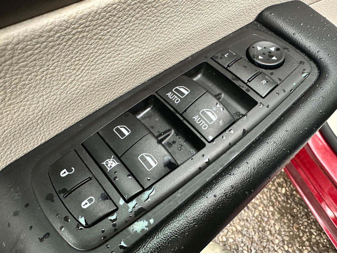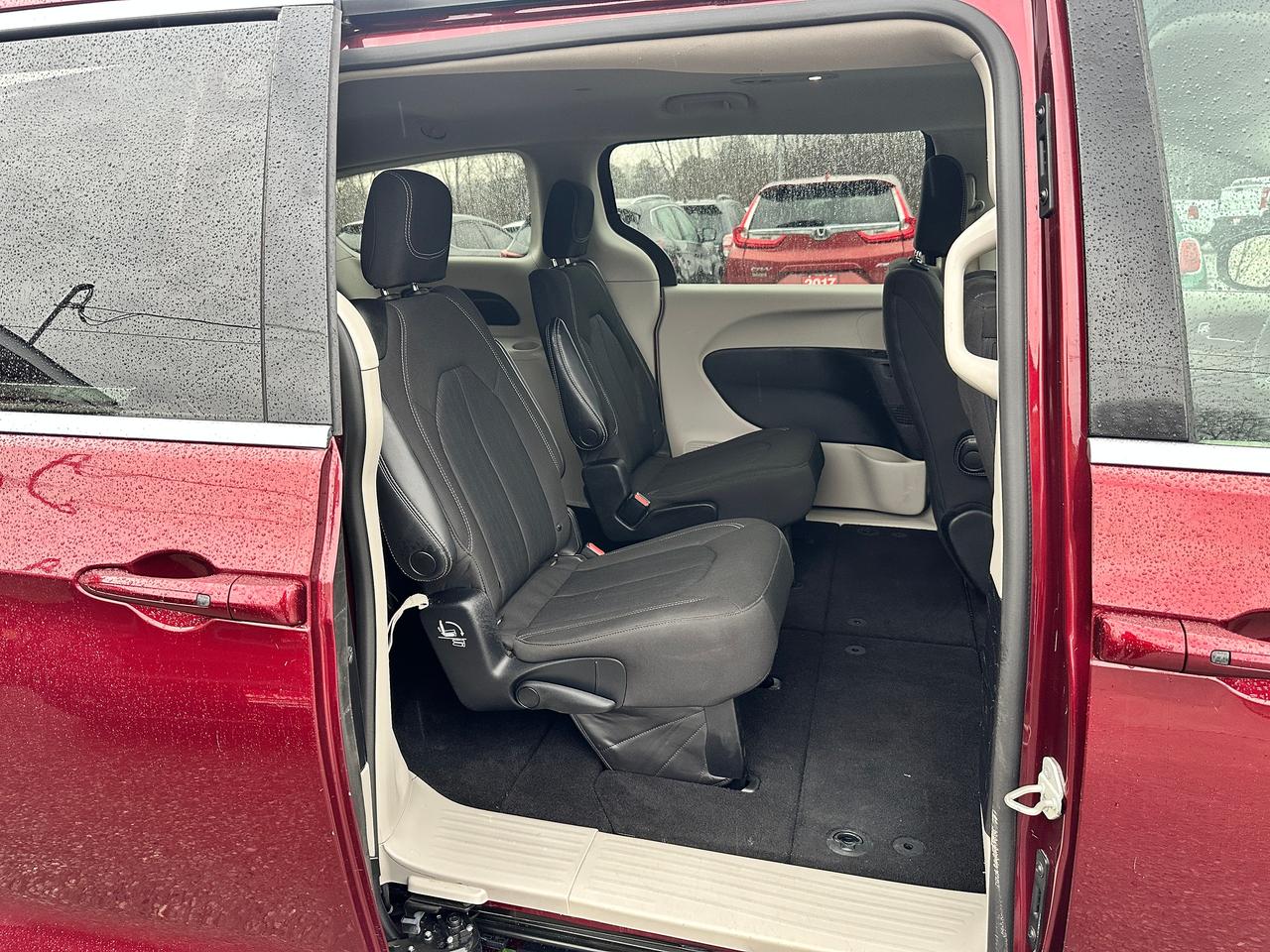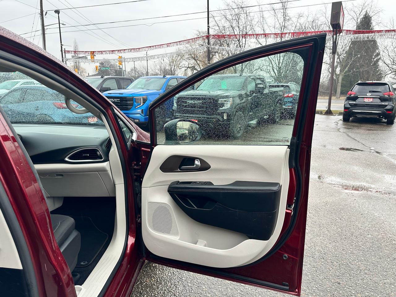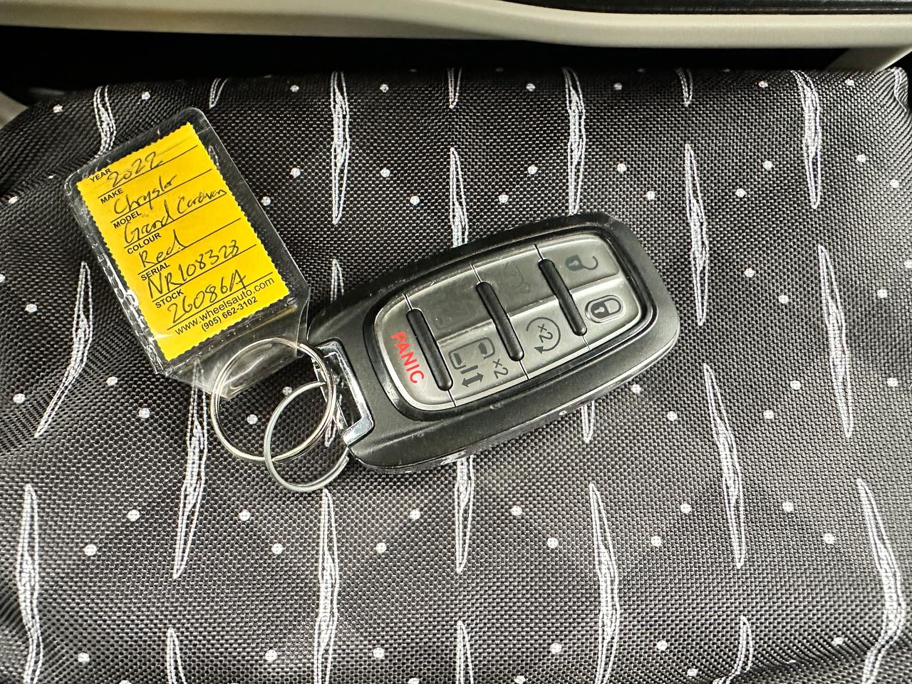 Super-Clean Local One-Owner Chrysler Grand Caravan from Ajax, ON! This SXT model looks incredible in its Burgundy Paint, with great options and styling! The exterior features keyless entry with remote start and proximity key, remote rear power liftgate, and sliding passenger doors, automatic headlights, colour-matched heated side mirrors, tinted privacy glass, a trailer hitch, a sleek rear spoiler, gorgeous factory alloy wheels with NEW All-Season Tires and Brakes, freshly installed, a powerful 3.6L V6 Engine and Automatic transmission! The interior is very clean and comfortable, with heated cloth front seats with driver's power adjustment and lumbar control, Stow'N'Go rear and middle rows, power door locks, windows and mirrors, a heated leather wrapped steering wheel with Audio and Cruise controls, push button start, an easy to read and use guage cluster, turn knob gear selection with low range, central touch screen AM/FM/XM Satellite Radio with Bluetooth, Apple CarPlay, Android Auto and Backup Camera, Dual-Zone A/C climate controls with front and rear window defrost settings, Auto-Stop/Start override button, plnety of starage areas throughout, USB/AUX/12V accessory ports, convex rear row mirror and more!
