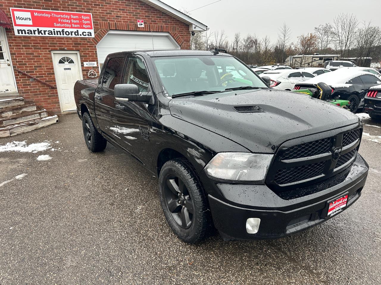 Super-Clean, One-Owner RAM 1500 from North York, ON! This Classic SLT 4x4 Crew Cab looks sharp in its timeless Black/Black colour scheme, with great convenience options inside and out! The exterior features keyless entry with remote start, automatic headlights, foglights, power folding heated side mirrors with integrated turn signals, tinted rear privacy glass and a power sliding rear window, a trailer hitch, parking sensors, a hard folding tonneau cover, gorgeous Black factory alloy wheels, a powerful 3.6L V6 Engine and an Automatic transmission driving the 4x4 system! The interior is clean and comfortable with seating for 6 through its heated front seats with driver's power adjustment and lumbar controls, fold-up centre console, and comfortable and spacious rear seating, all-weather floor mats front and rear, power door locks, mirrors and windows, a heated leather wrapped steering wheel with Audio and Cruise controls, an easy to read and use gauge cluster, gear selection knob and electronic 4x4 selection buttons, a large central touch screen AM/FM/XM Satellite Radio with Bluetooth, Apple CarPlay, Android Auto, Climate Creen and Backup Camera, Dual-Zone A/C climate controls with front and rear window defrost settings, Tow/Haul mode, USB/AUX/12V accessory ports, Universal Garage Door openers, and more!