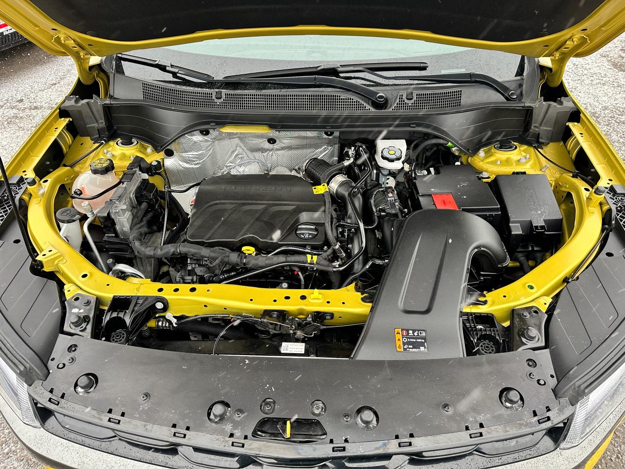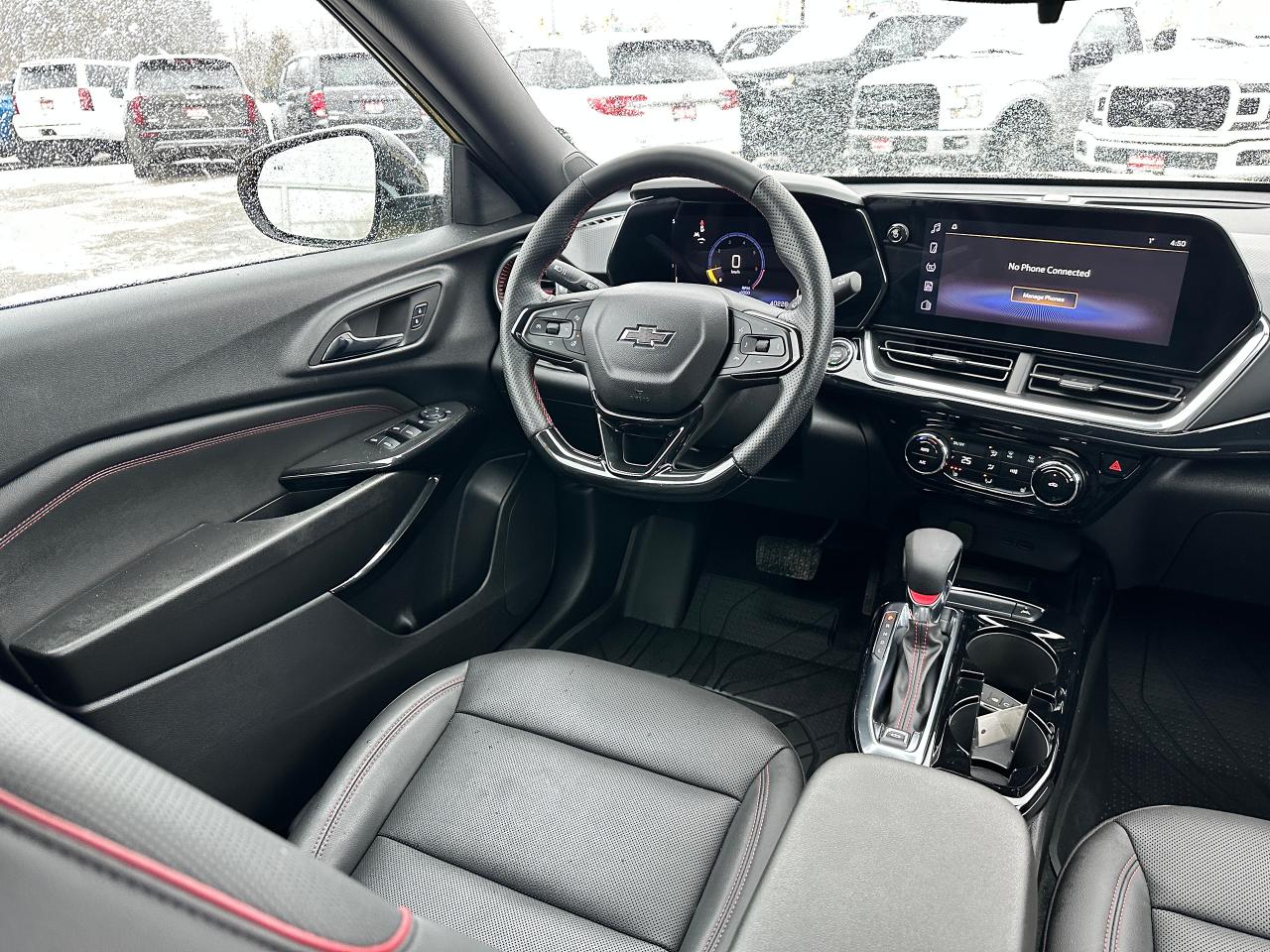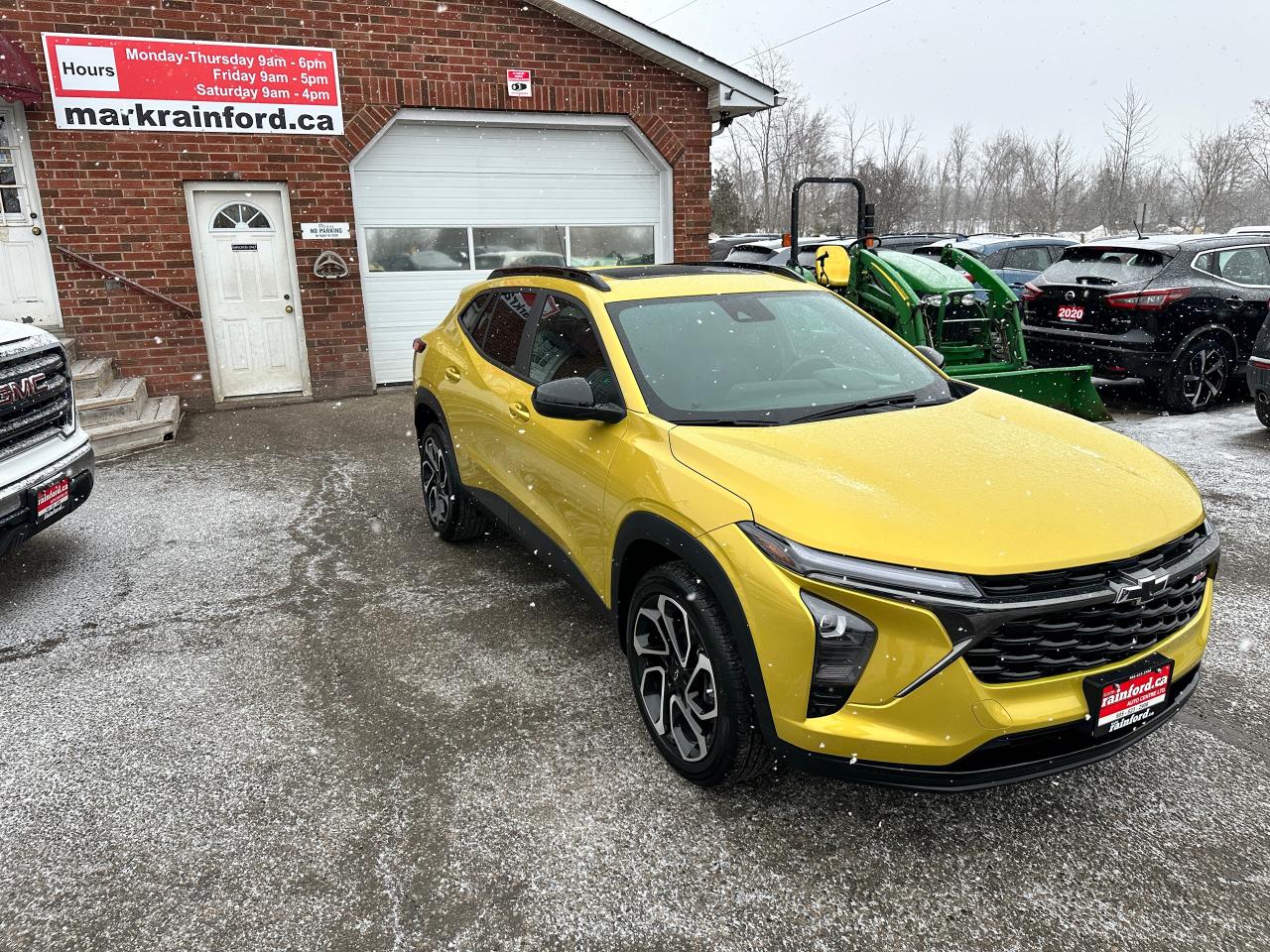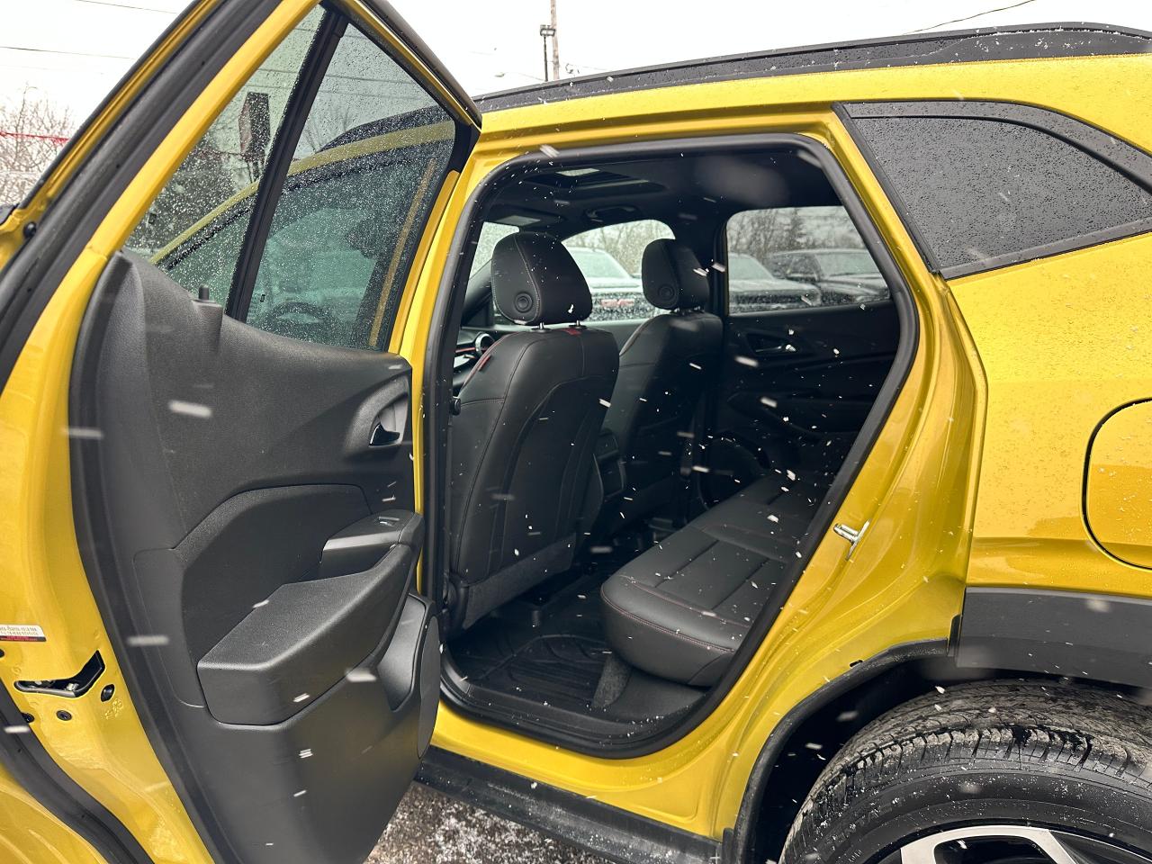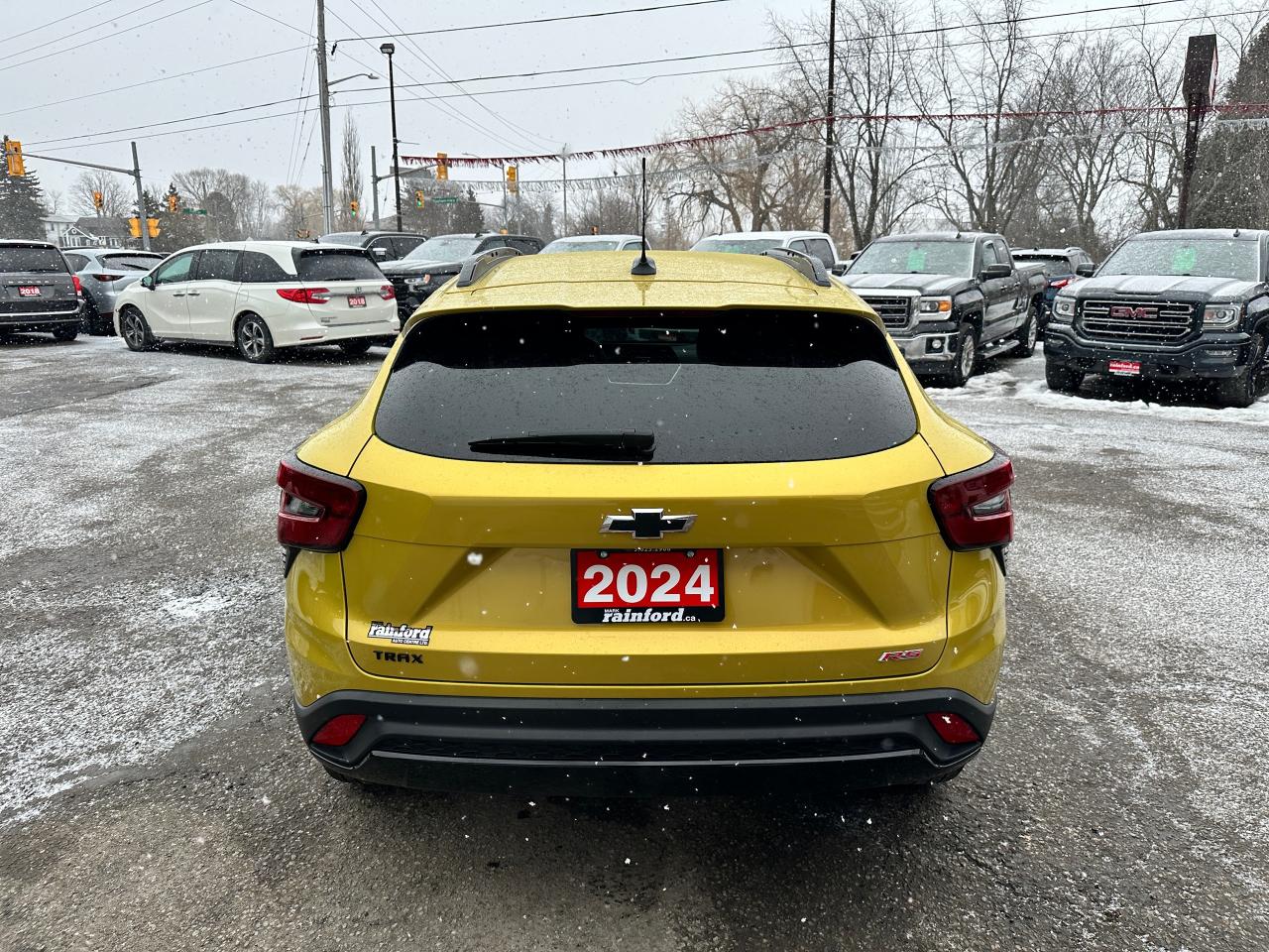WOW! Ultra-Clean LOW KM Chevrolet Trax from Belleville, ON! This 2RS FWD model looks stunning in its shimmering Yellow paint and Factory Alloy wheels, with great options inside and out! The exterior features keyless entry with remote start and proximity key, a large factory power sunroof, automatic headlights/highbeams, black side mirrors and roof rack rails, forward collision warning, adaptive cruise and emergency braking, rear cross traffic alert, blind spot and lane keeping assists, tinted privacy glass, sleek rear spoiler and sharp overall exterior styling, gorgeous machine finished factory alloy wheels, a peppy fuel efficient 1.2L 3-Cylinder Turbocharged Engine and Automatic transmission! The interior is very clean and comfortable with heated leather front seats, all-weather floor mats, power door locks, windows and mirrors, comfortable rear seating and a spacious cargo area with a privacy shade, a heated leather wrapped steering wheel with Audio and Cruise controls, red accenting and stitching throughout the interior, a large easy to read guage display, push button start, a large central touch screen AM/FM/XM Satellite Radio with Bluetooth, Apple CarPlay, Android Auto, WiFi Settings, and Backup Camera, A/C climate controls with front and rear window defrost settings, USB/12V/USB-C accessory ports and more!