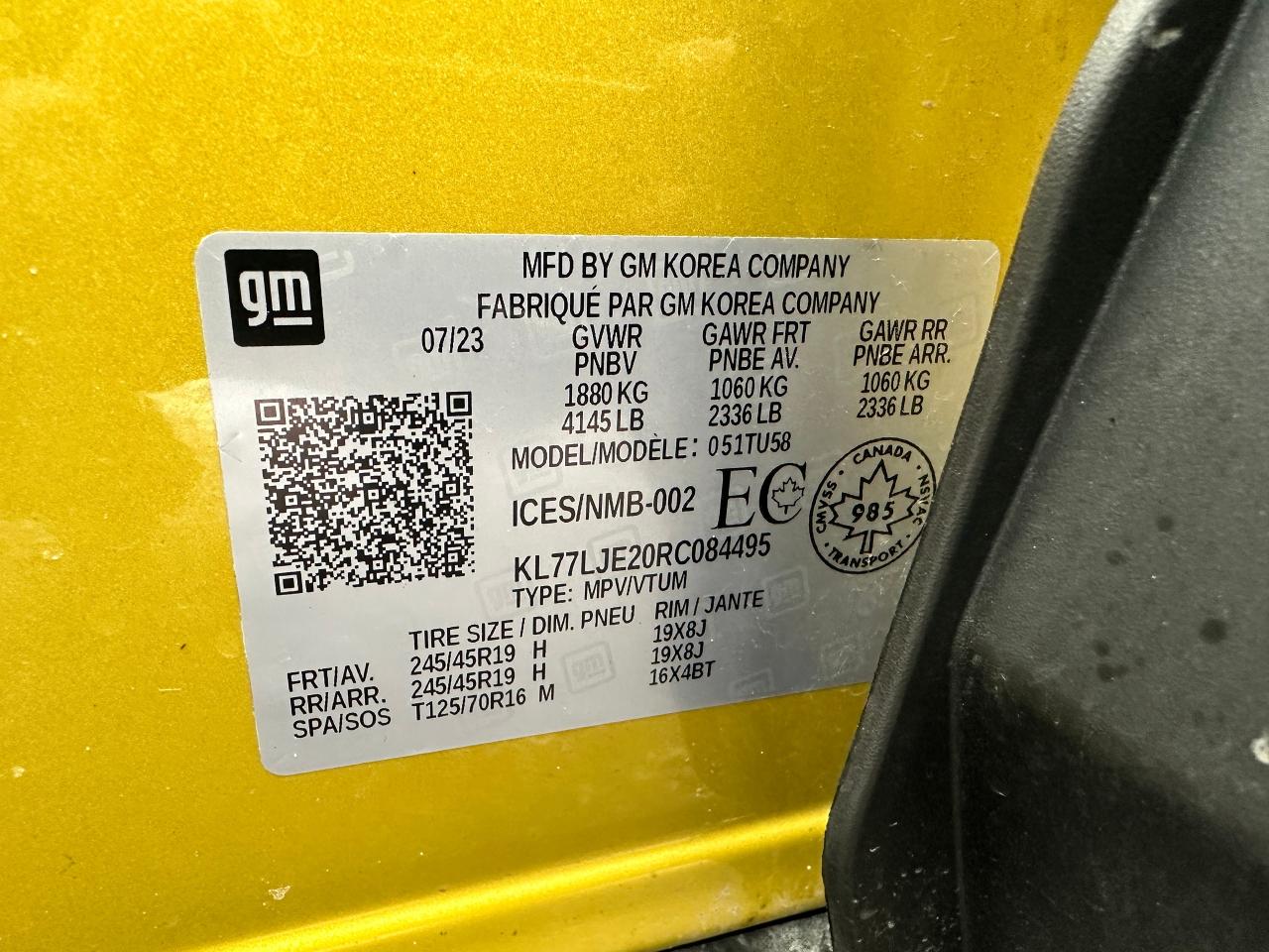 - VIN: KL77LJE20RC084495